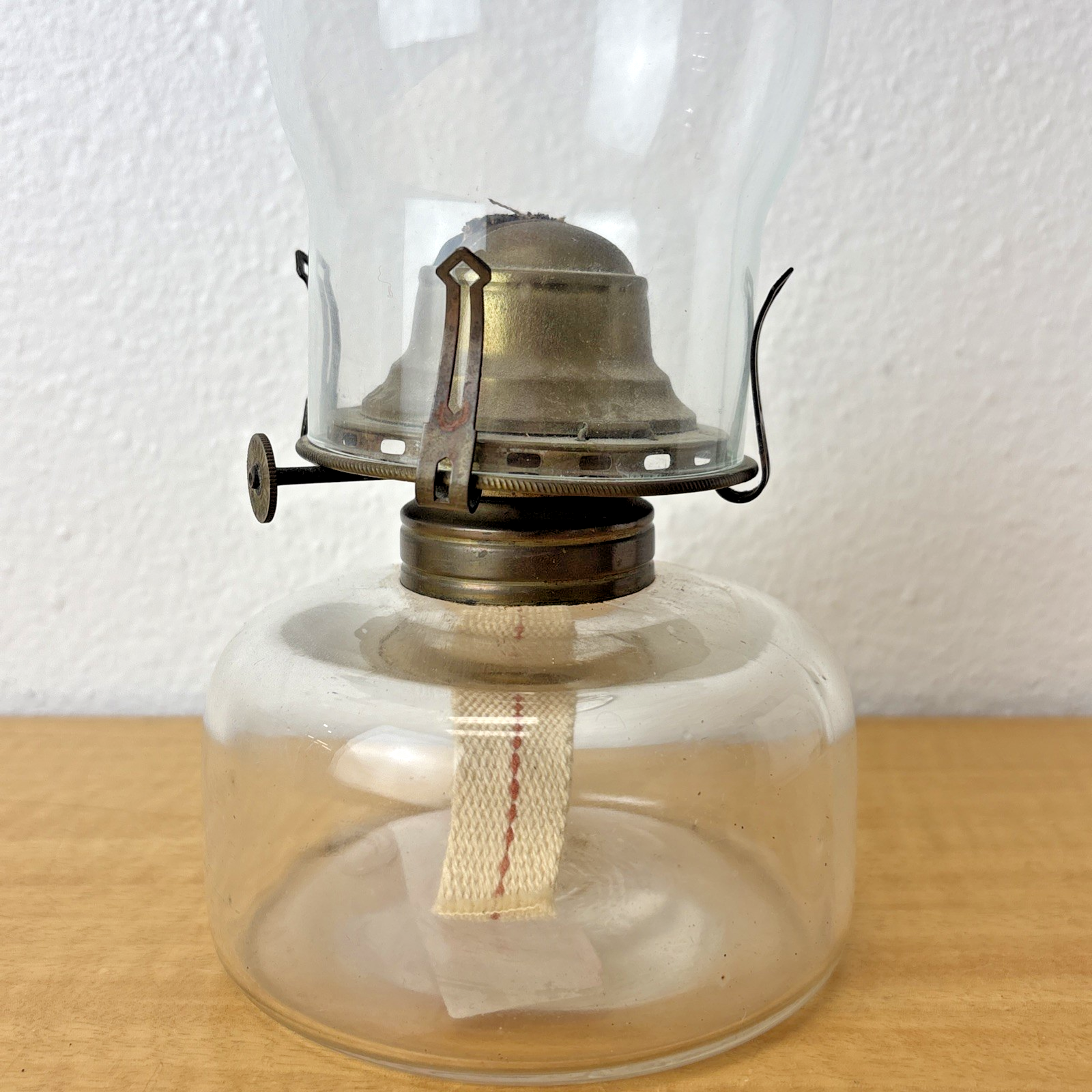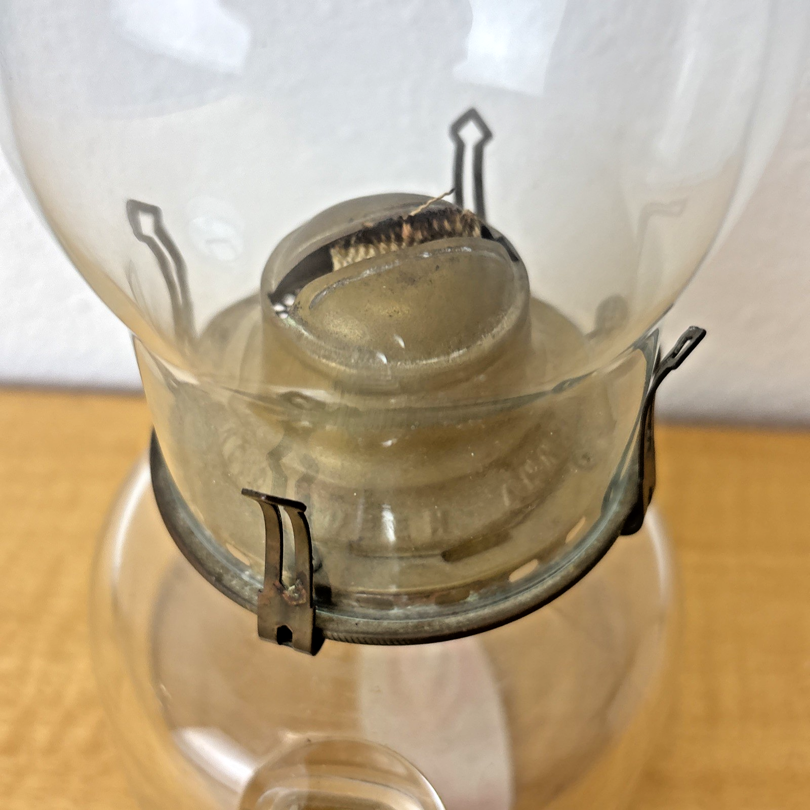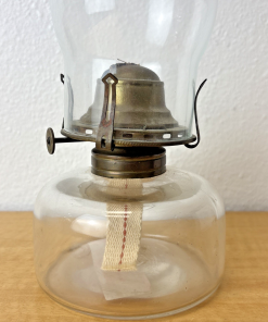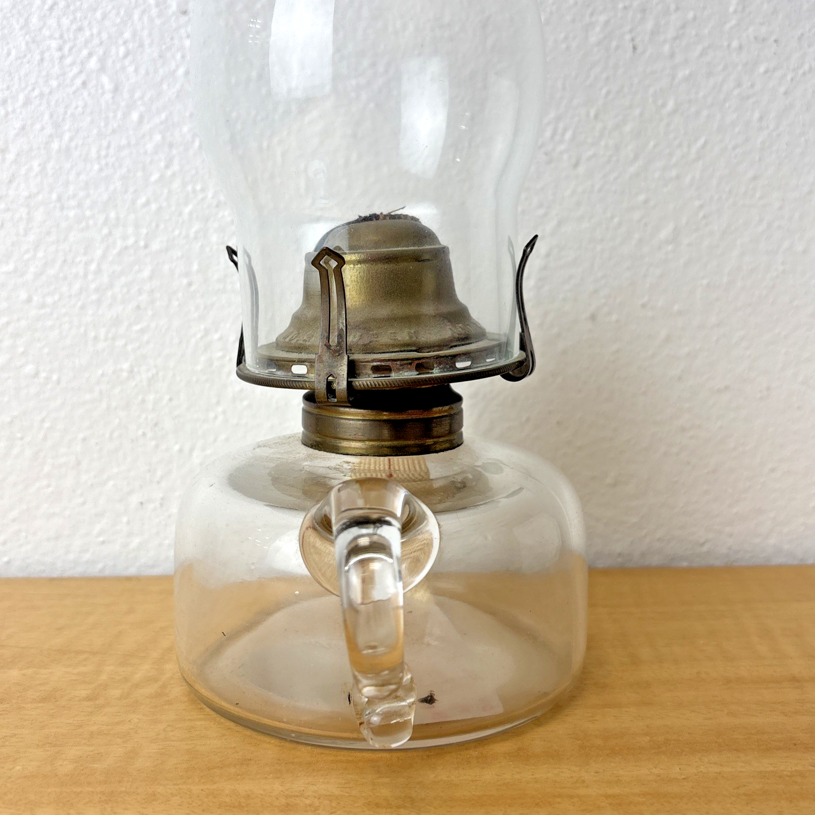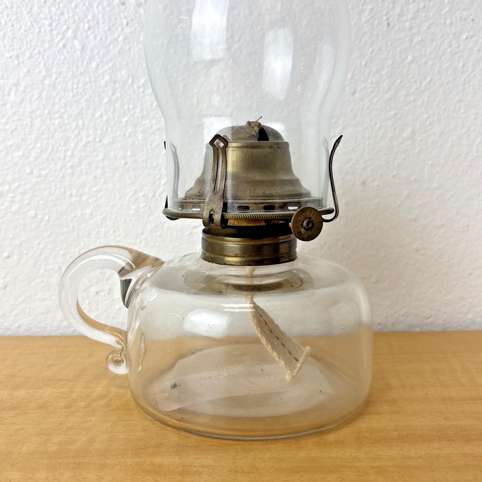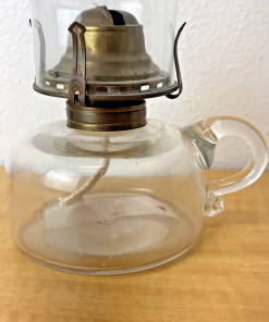 Antique Queen Anne No. 2 Glass Finger Hole Oil Lamp w/ Handle