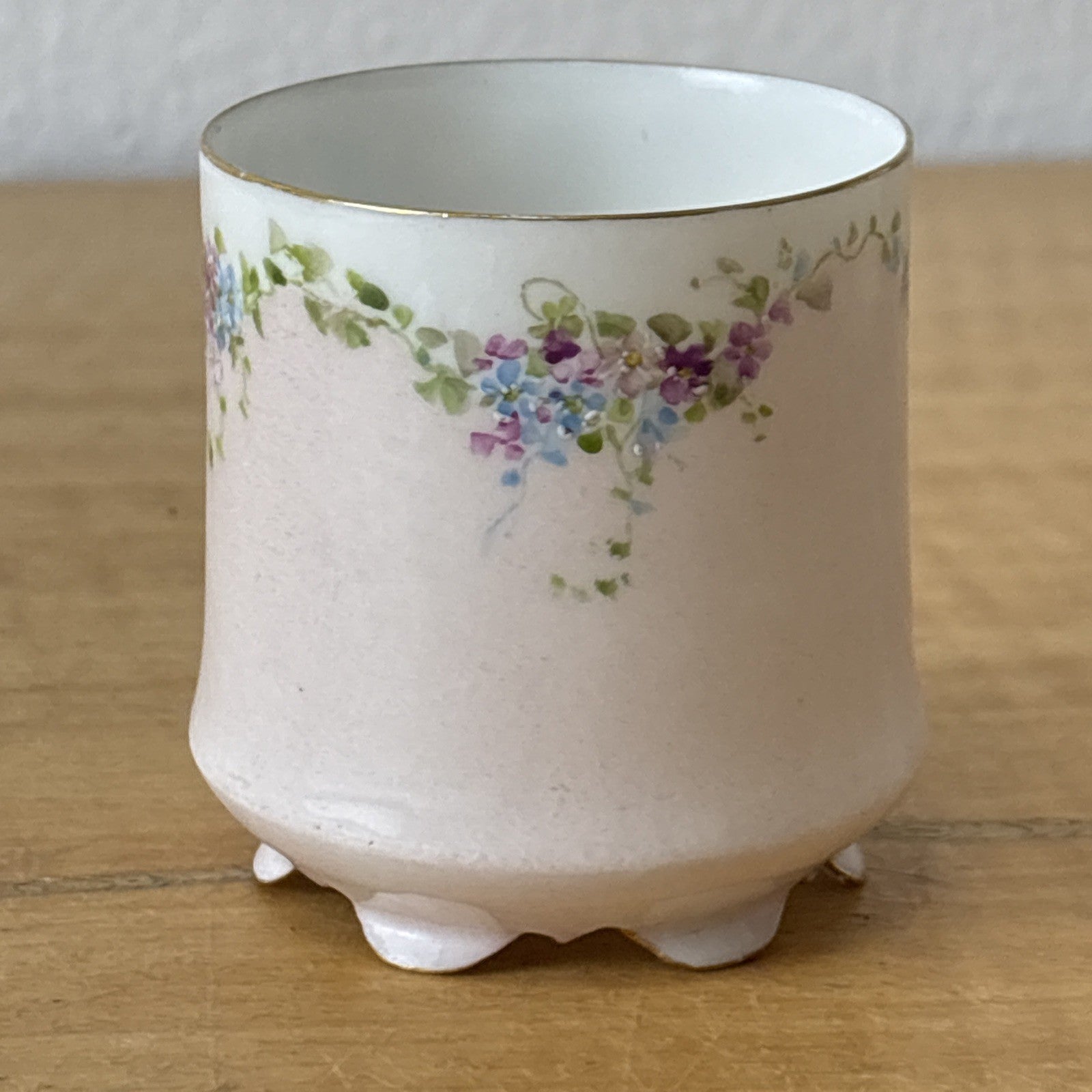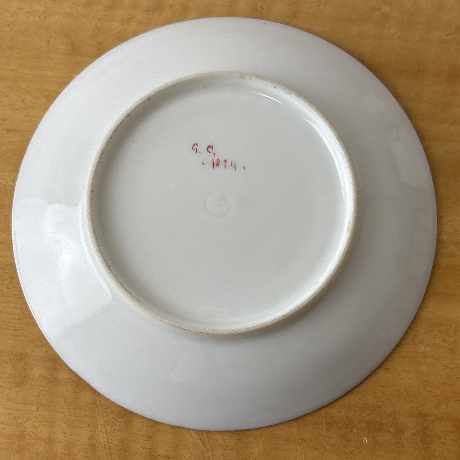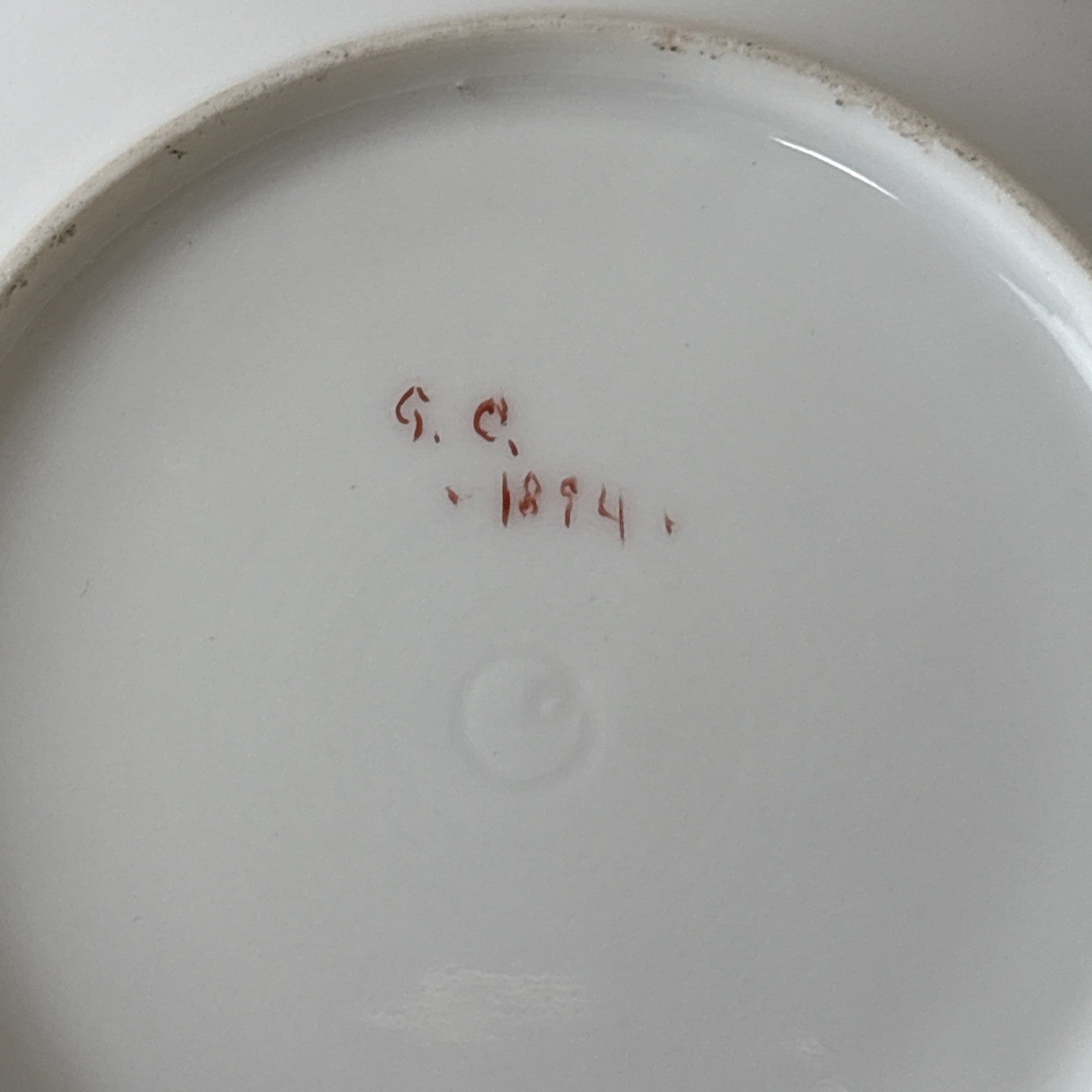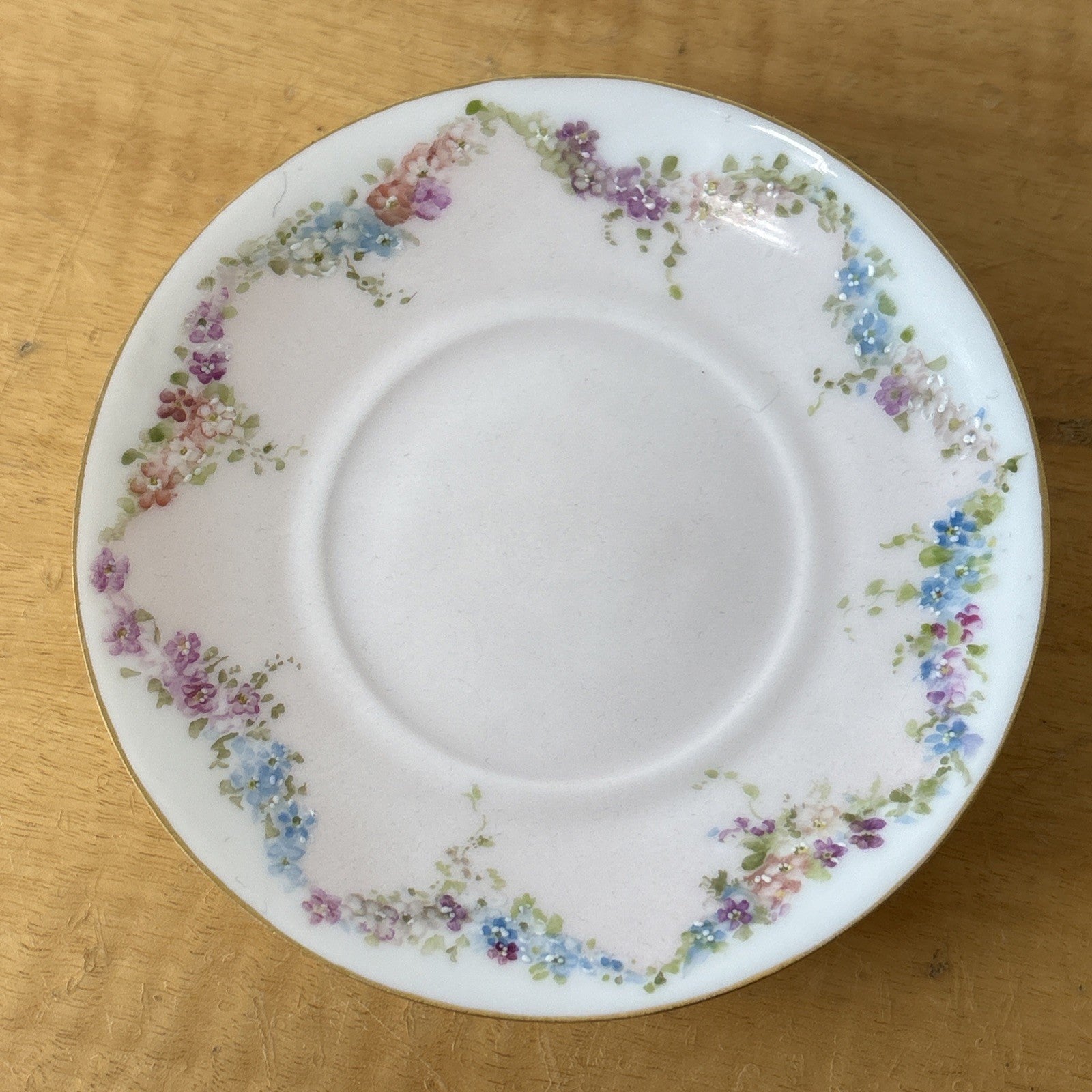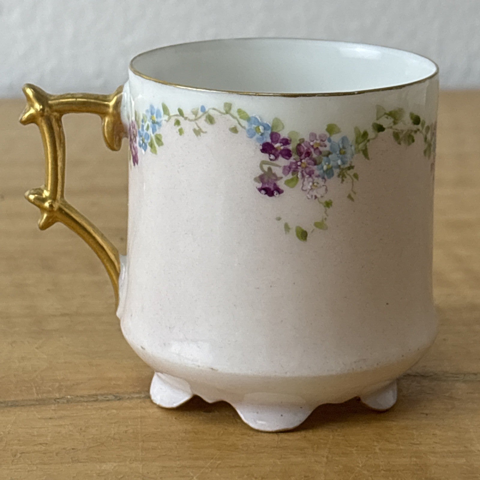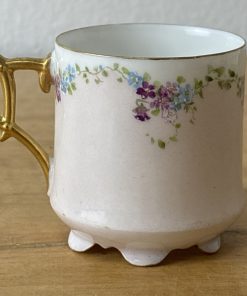 Antique Teacup and Saucer Signed G. C. 1894 Floral Blue, Pink & Purple