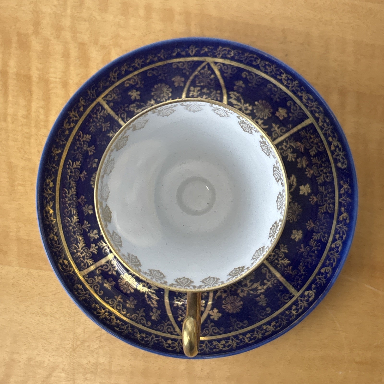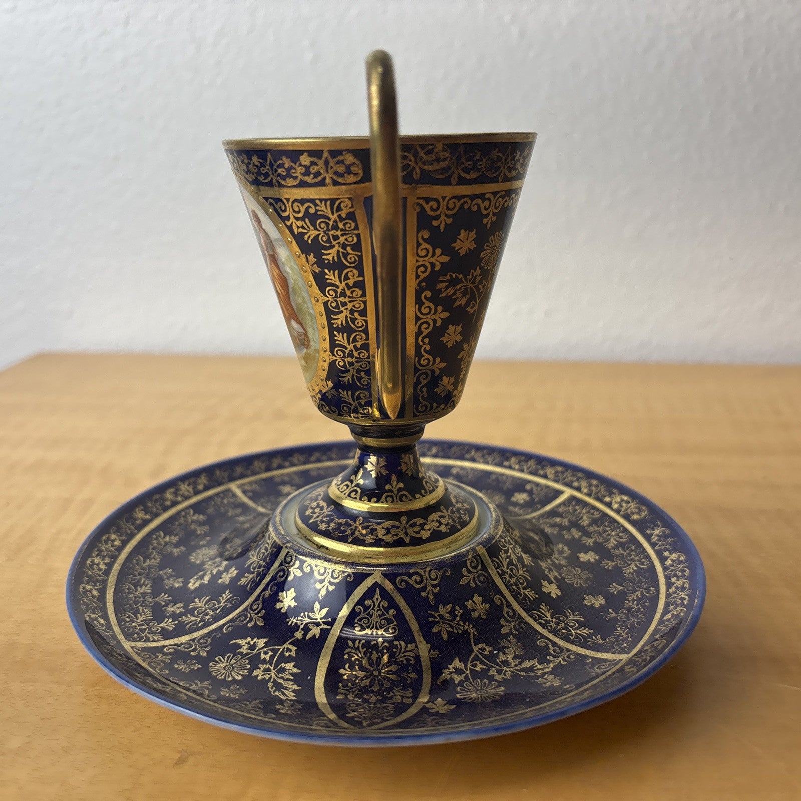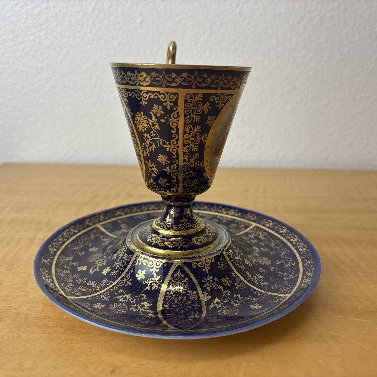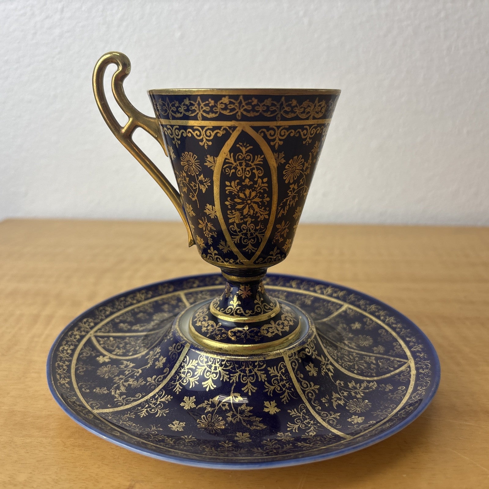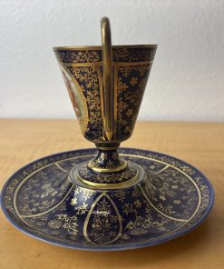 Antique Victoria Carlsbad Tea Cup and Saucer Blue and Gold Teacup Royal Vienna