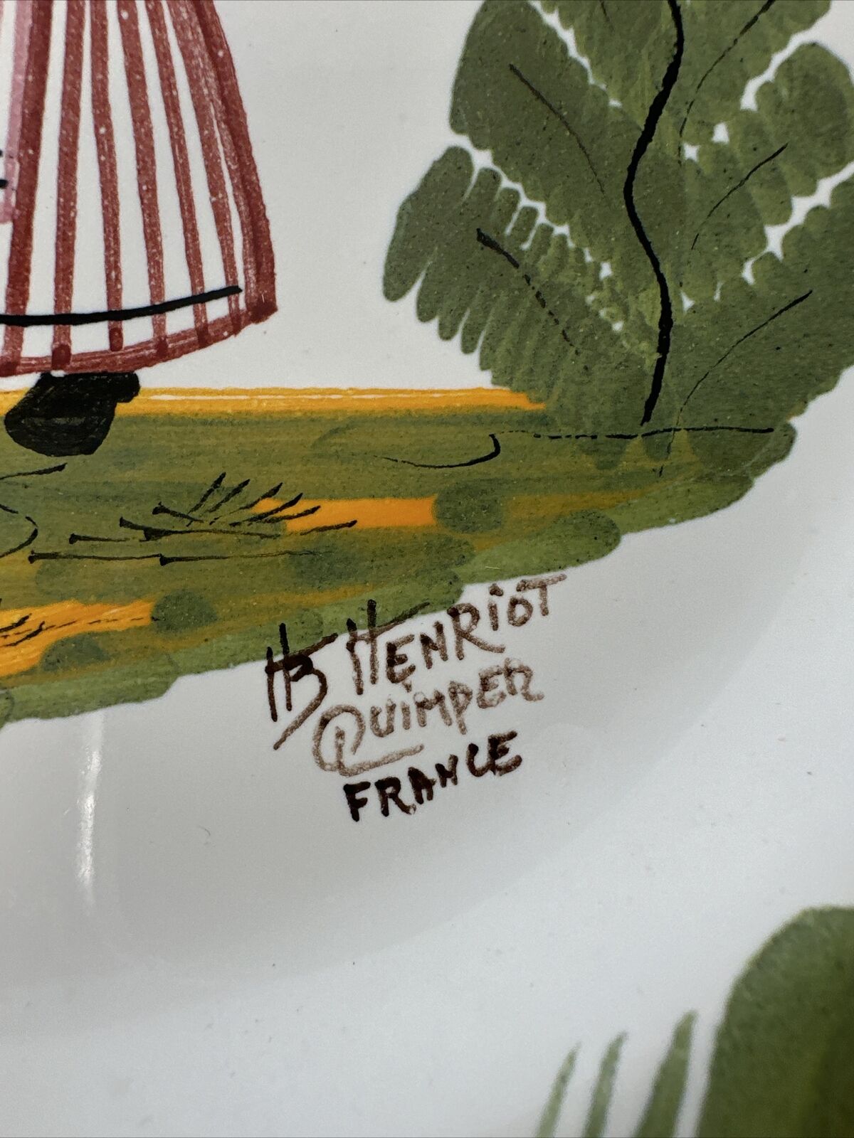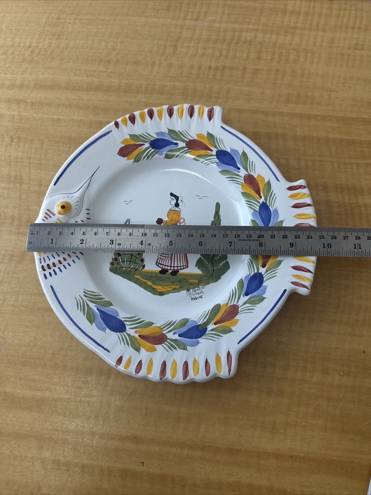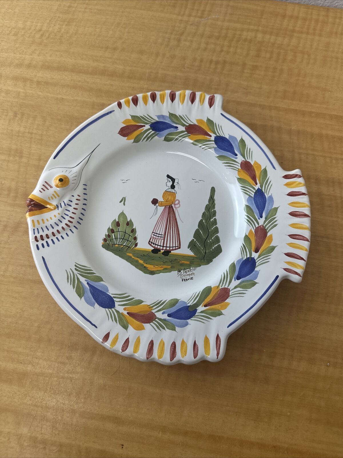 ANTIQUE Vintage HB HENRIOT QUIMPER Faience Pottery FISH Shaped PLATTER Plate 10”