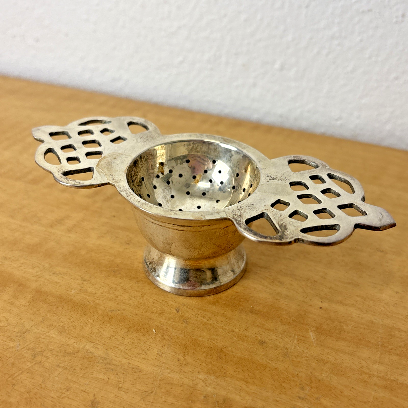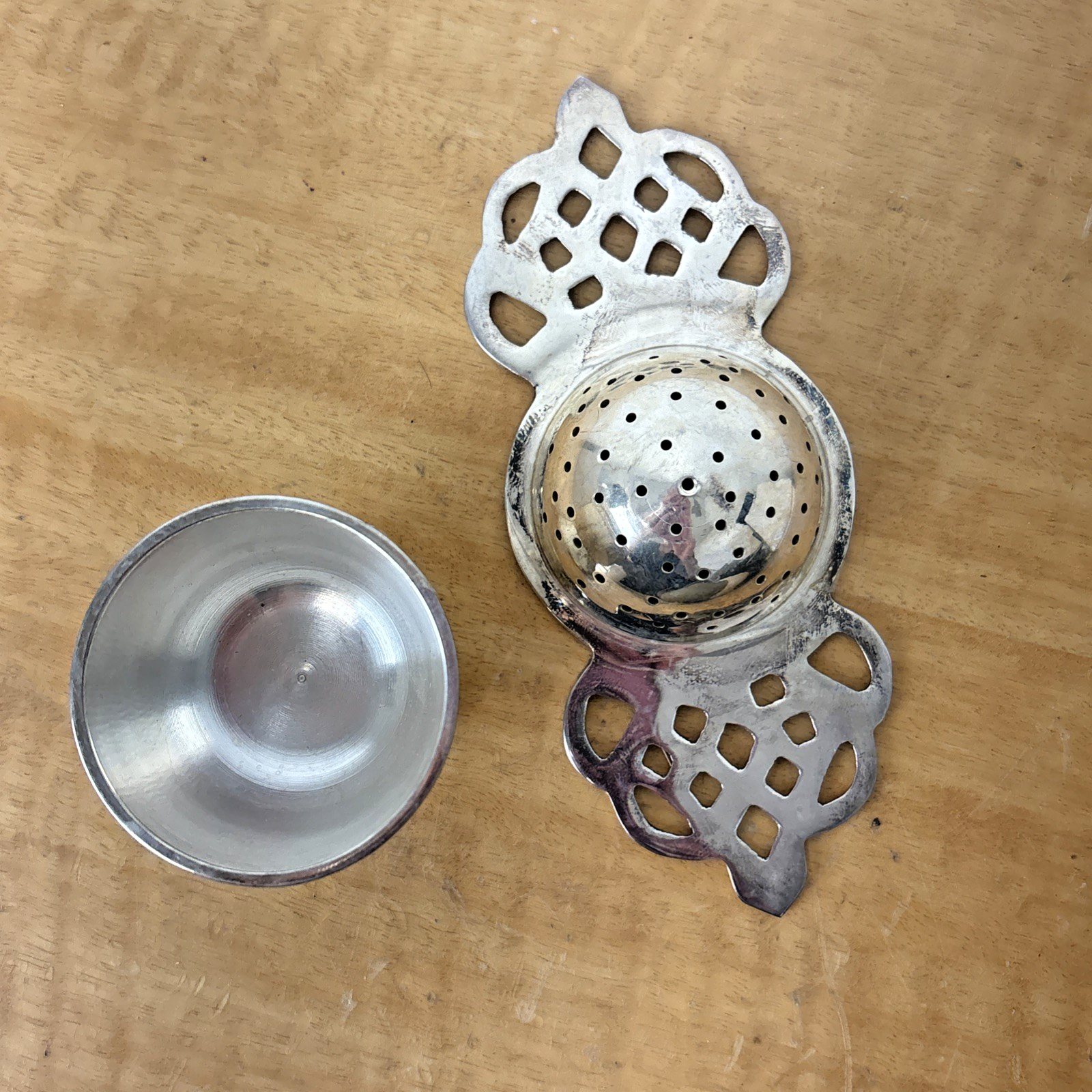 Antique Vintage Tea Strainer Silverplate Drip Tray for Loose Tea