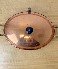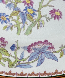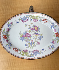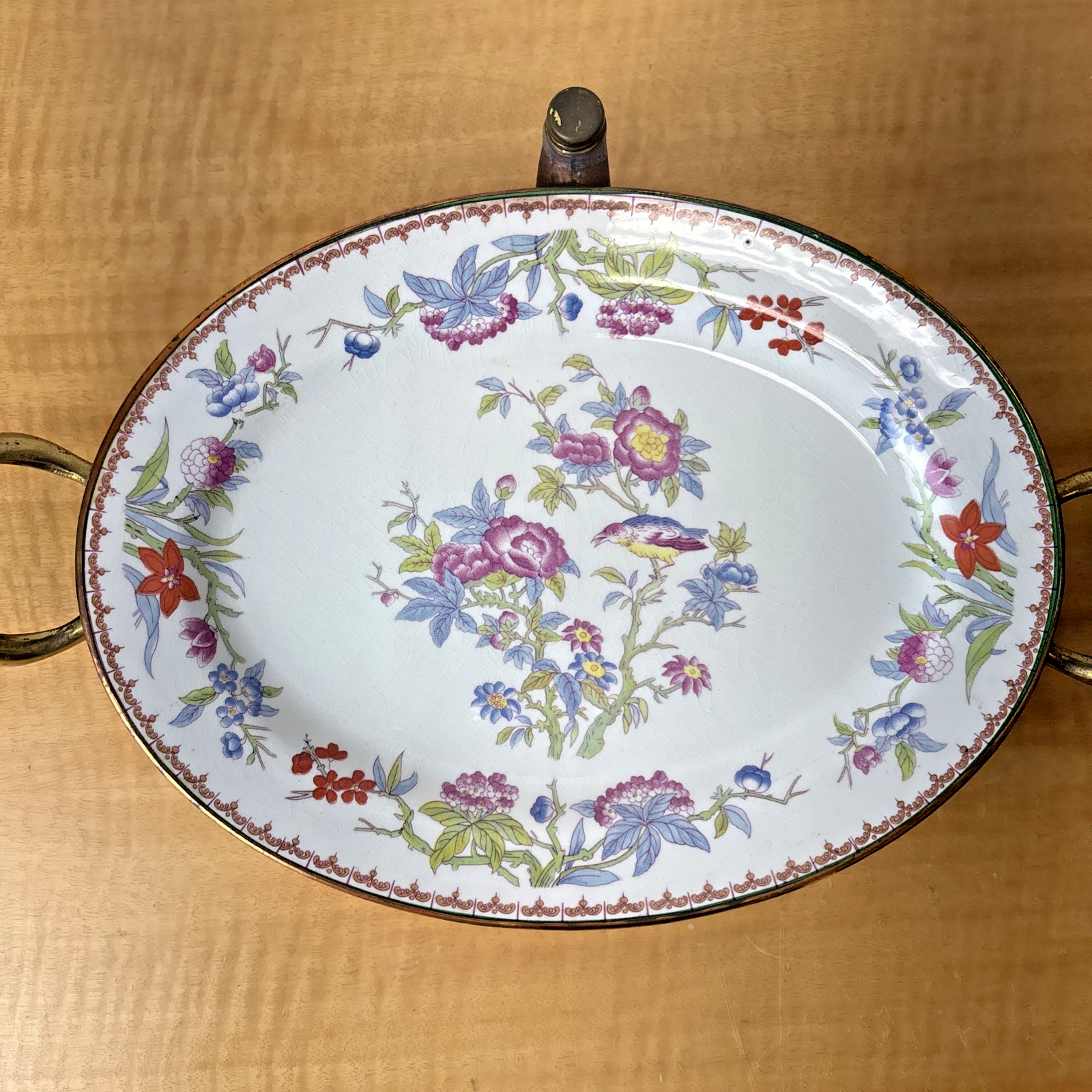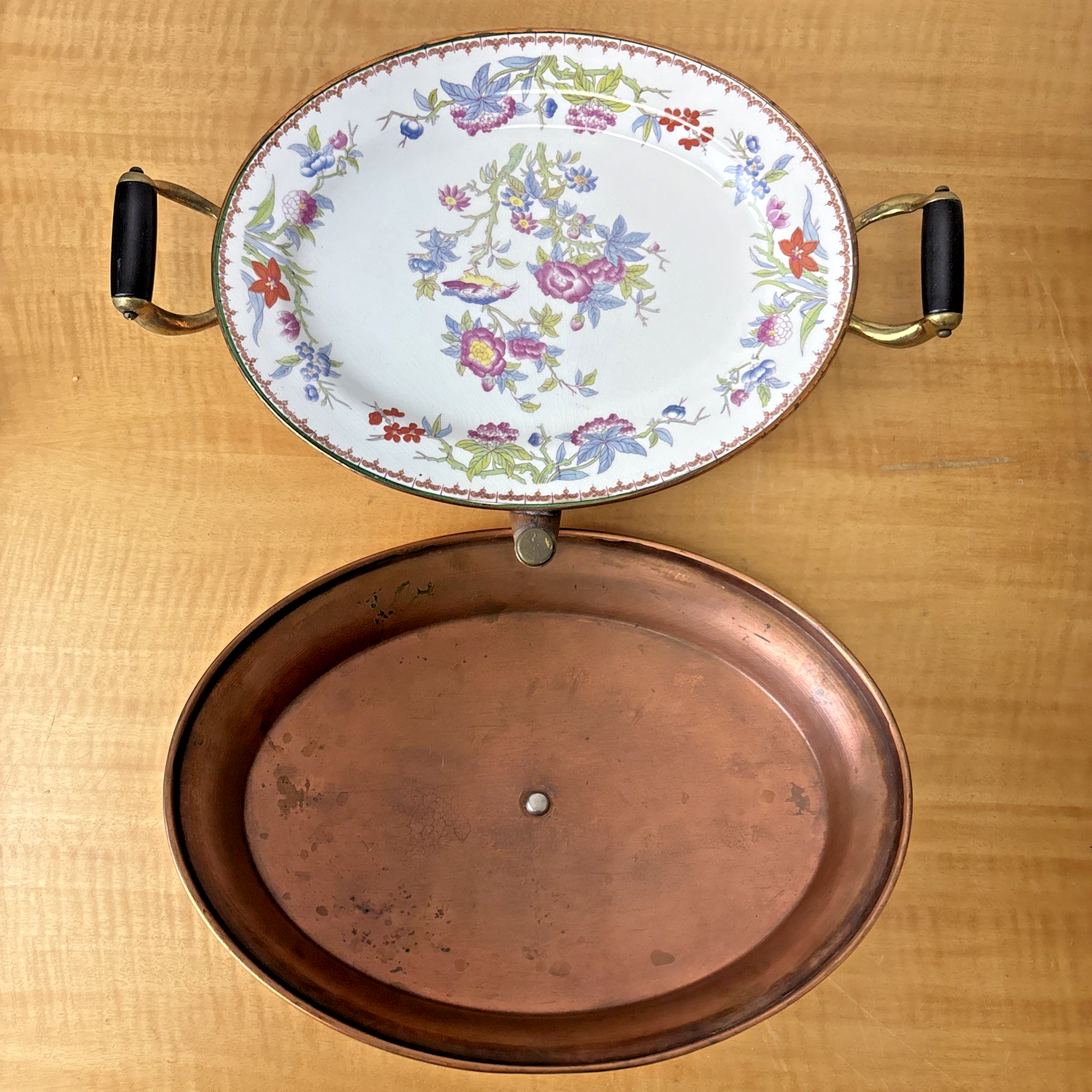 Antique Warming Plate Copper Brass Decorated Porcelain Floral