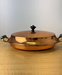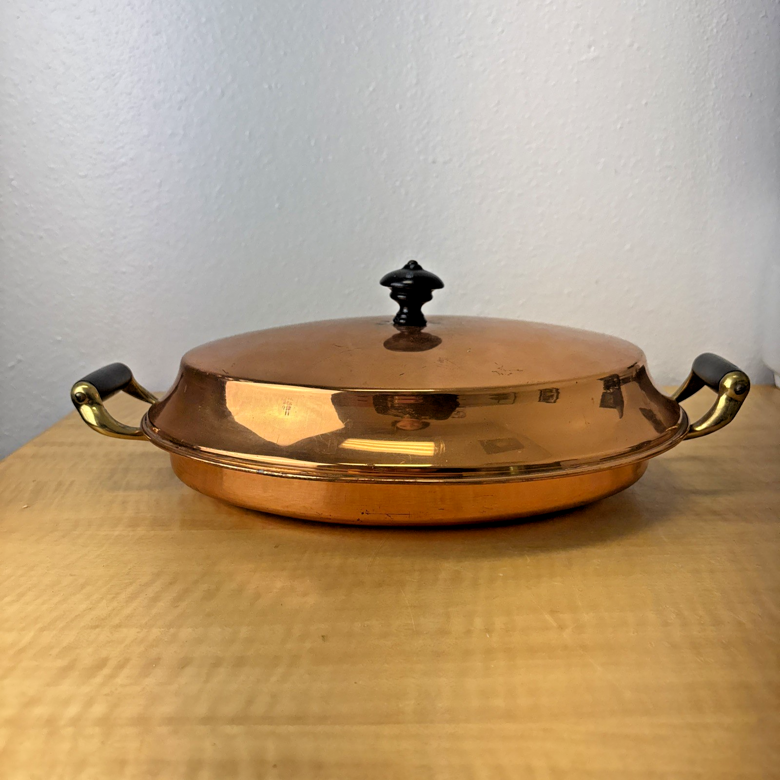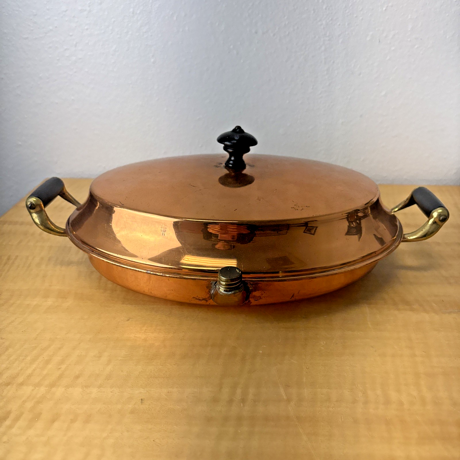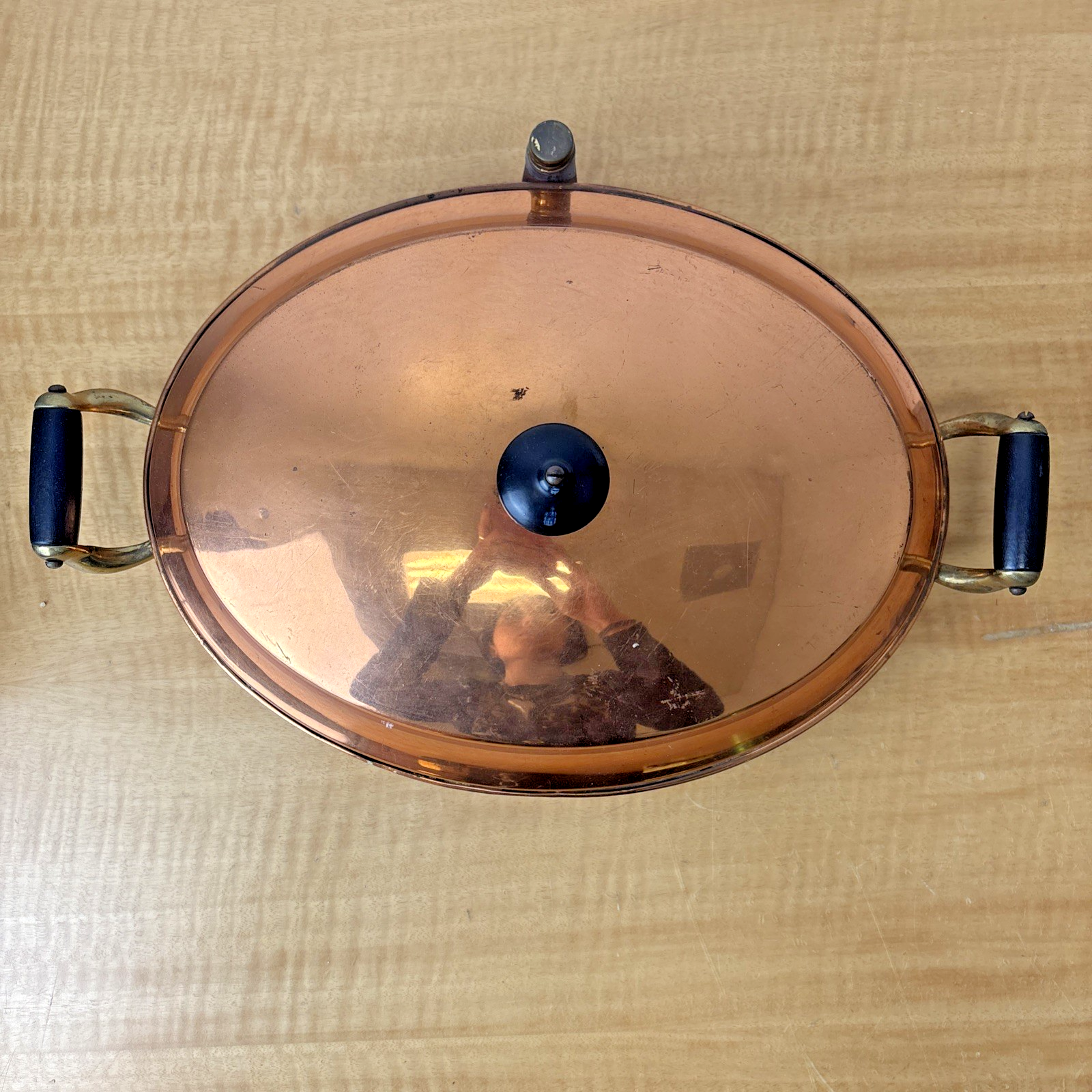 Antique Warming Plate Copper Brass Decorated Porcelain Floral