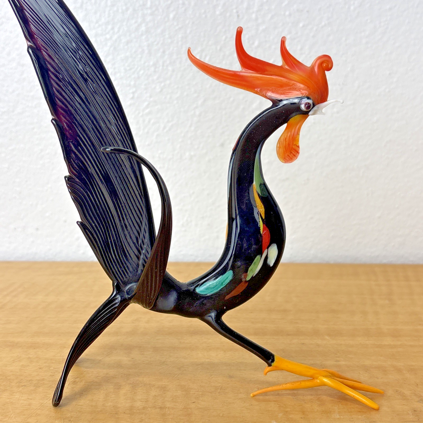 Art Nouveau Rooster Art Glass Sculpture Figure