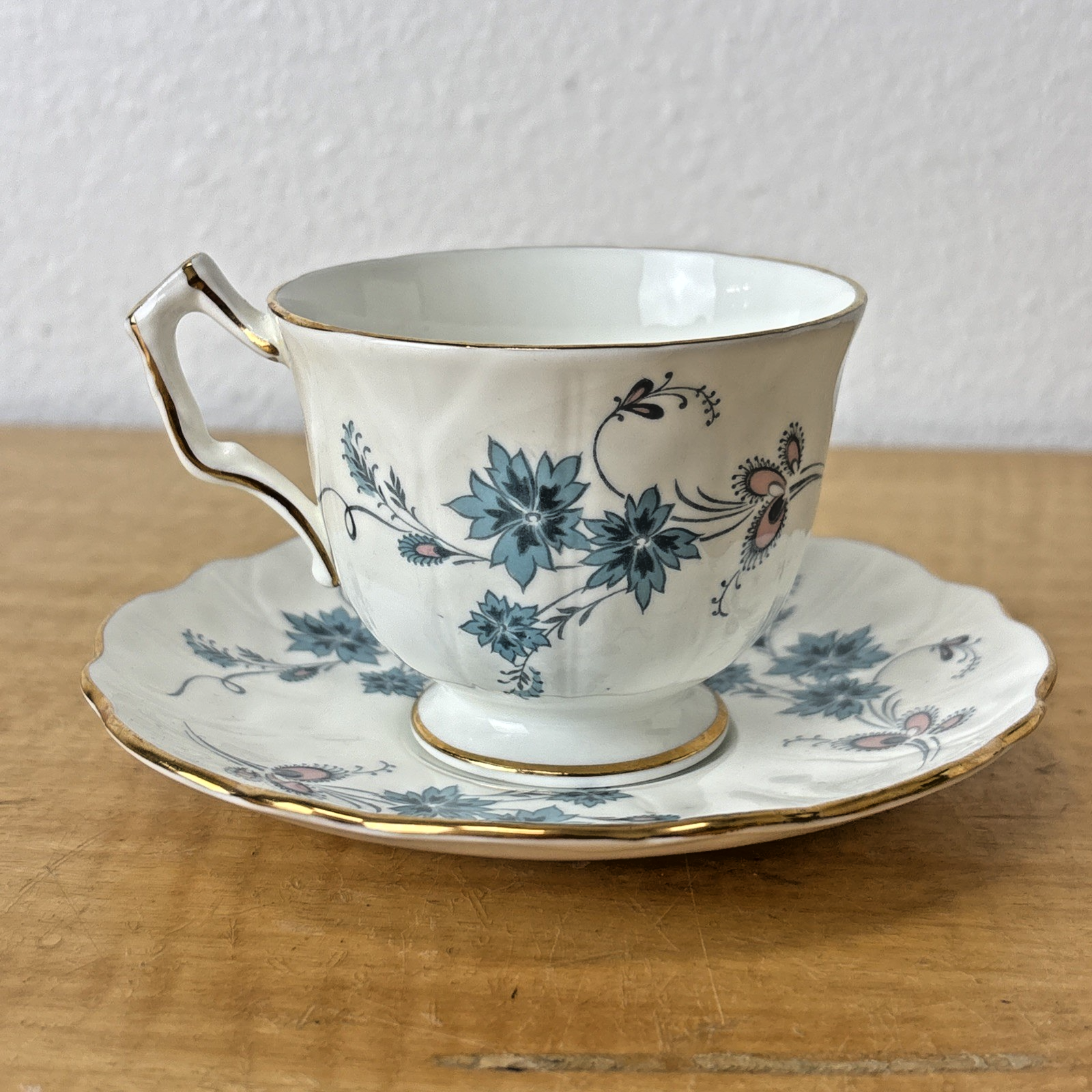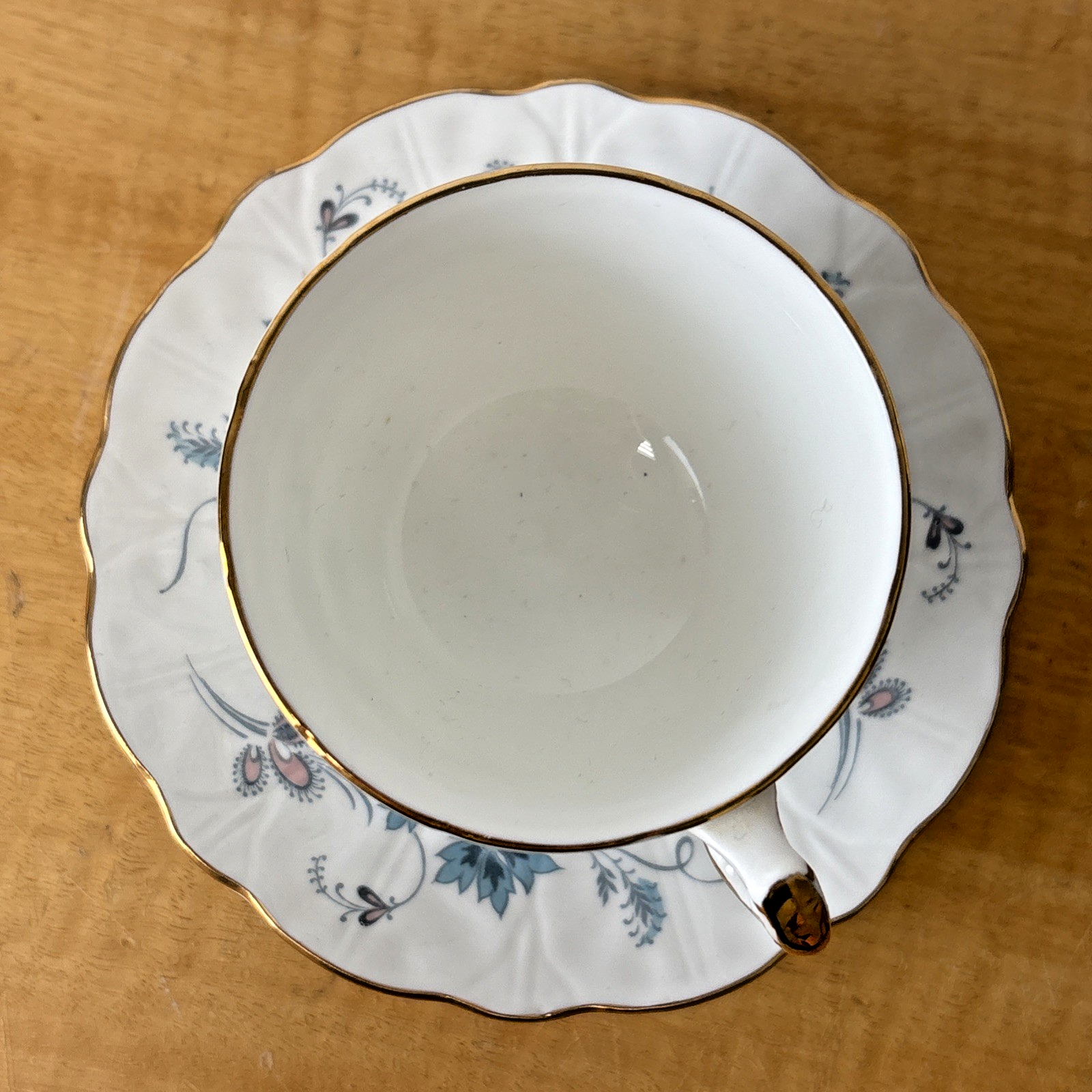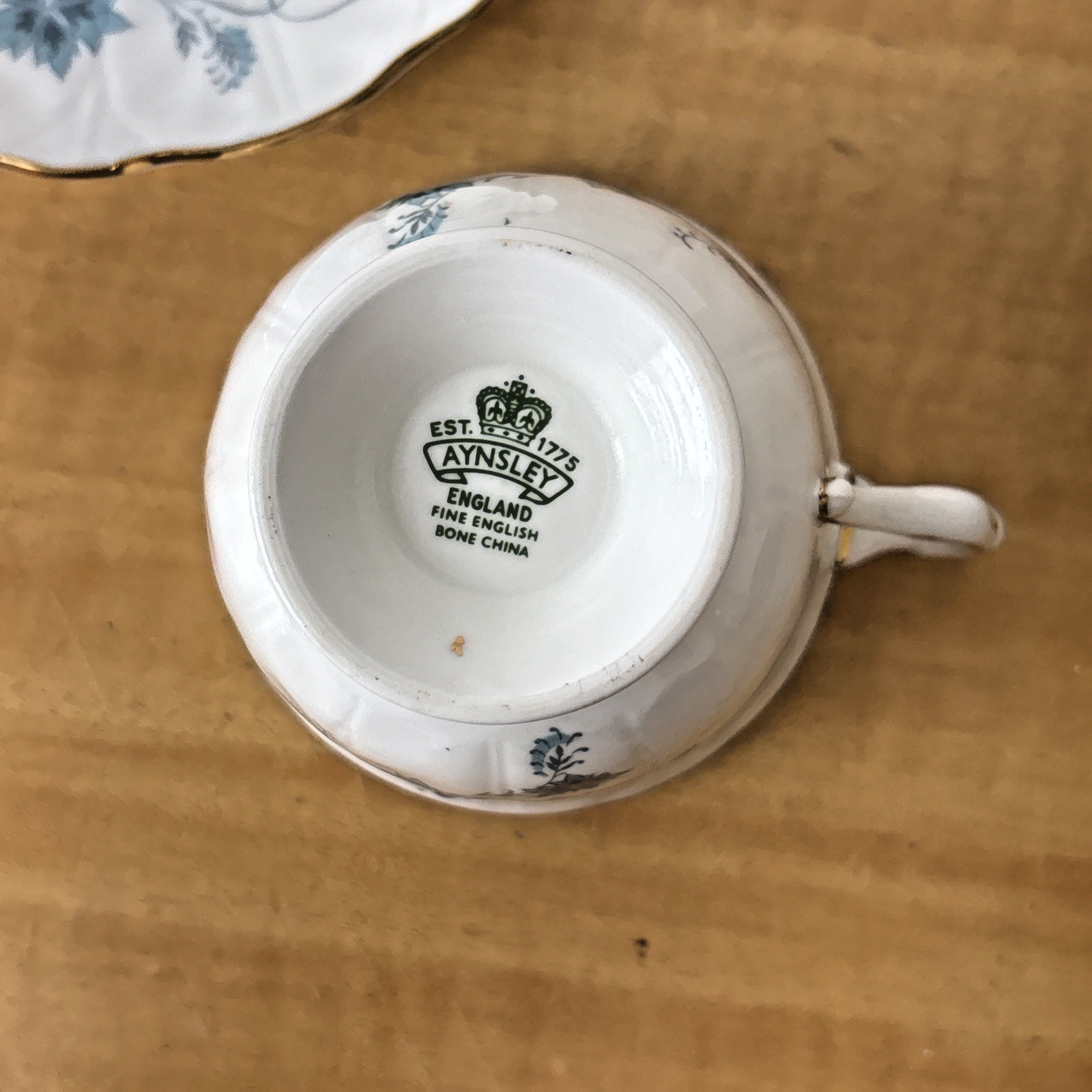 Aynsley Blue & Pink Floral Teacup & Saucer English Bone China