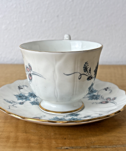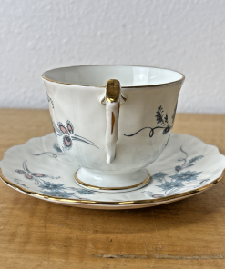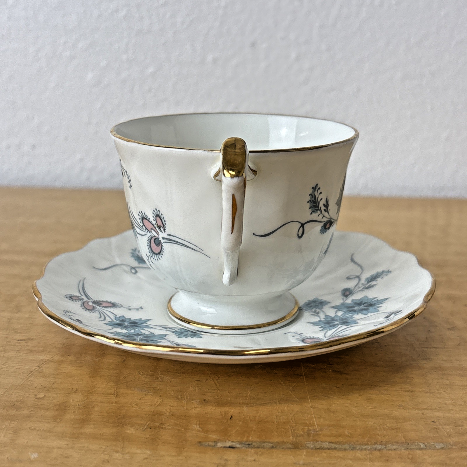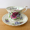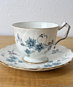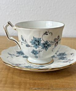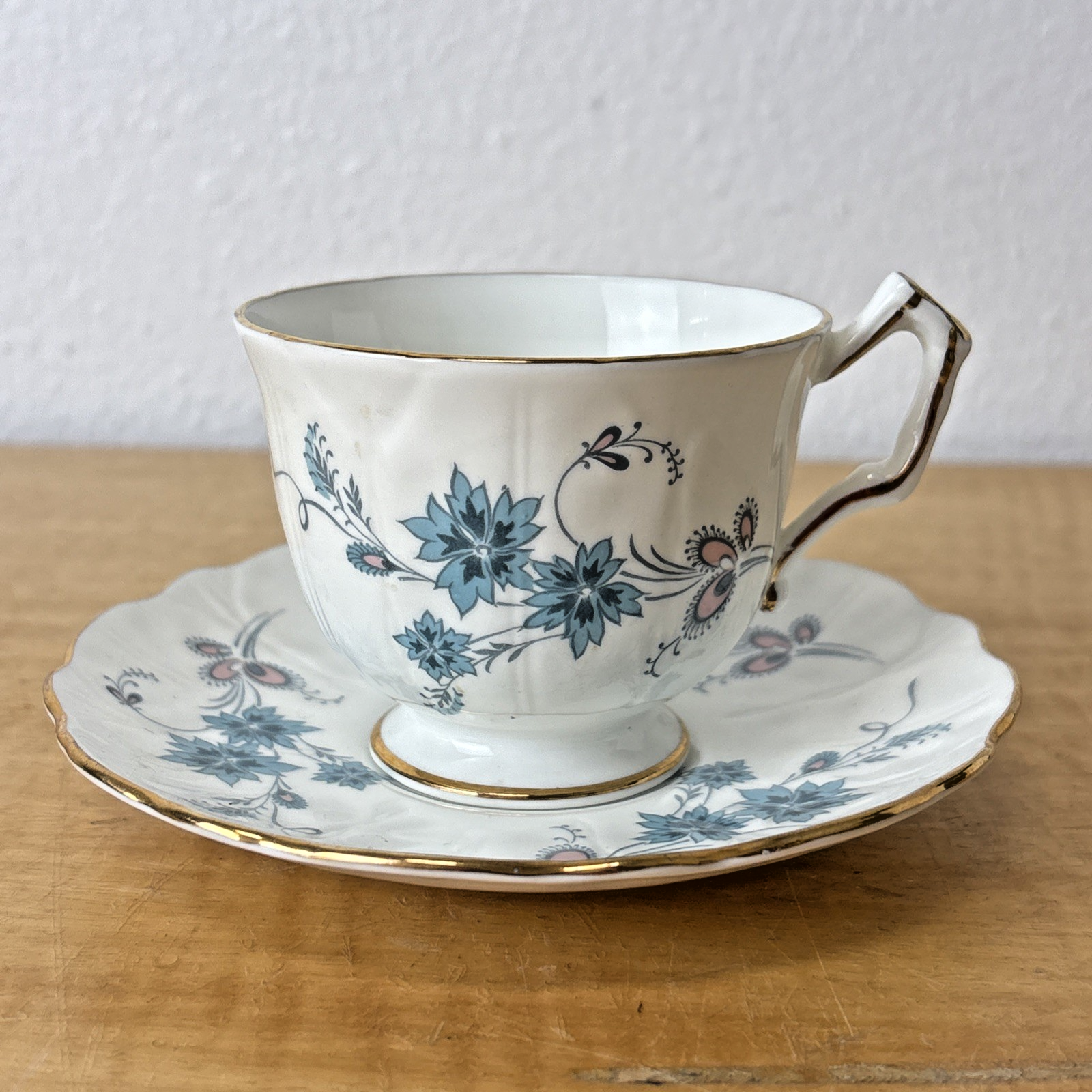 Aynsley Blue & Pink Floral Teacup & Saucer English Bone China
