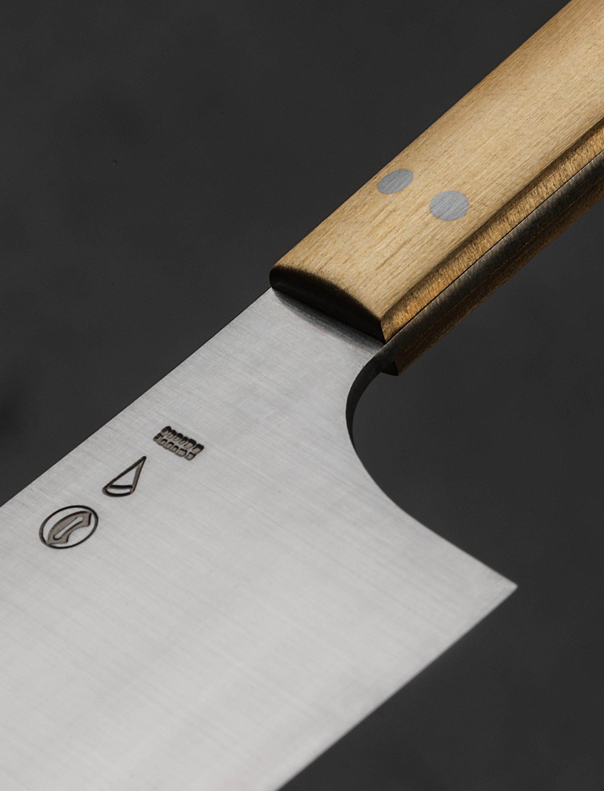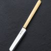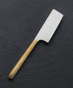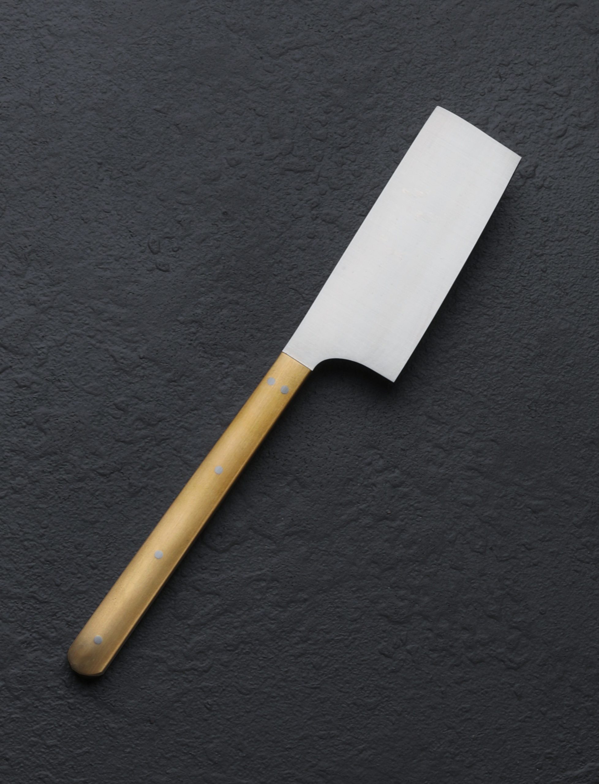 Designed by Osamu Saruyama and created by Azmaya, the Brass & Steel Cheese Knife is a finely crafted cheese tool with a natural and nicely weighted feel. The solid brass riveted handle helps the knife weigh in at just over 2 ounces, quite respectable for a thin, sharp 7″ knife. Cheese needs this.