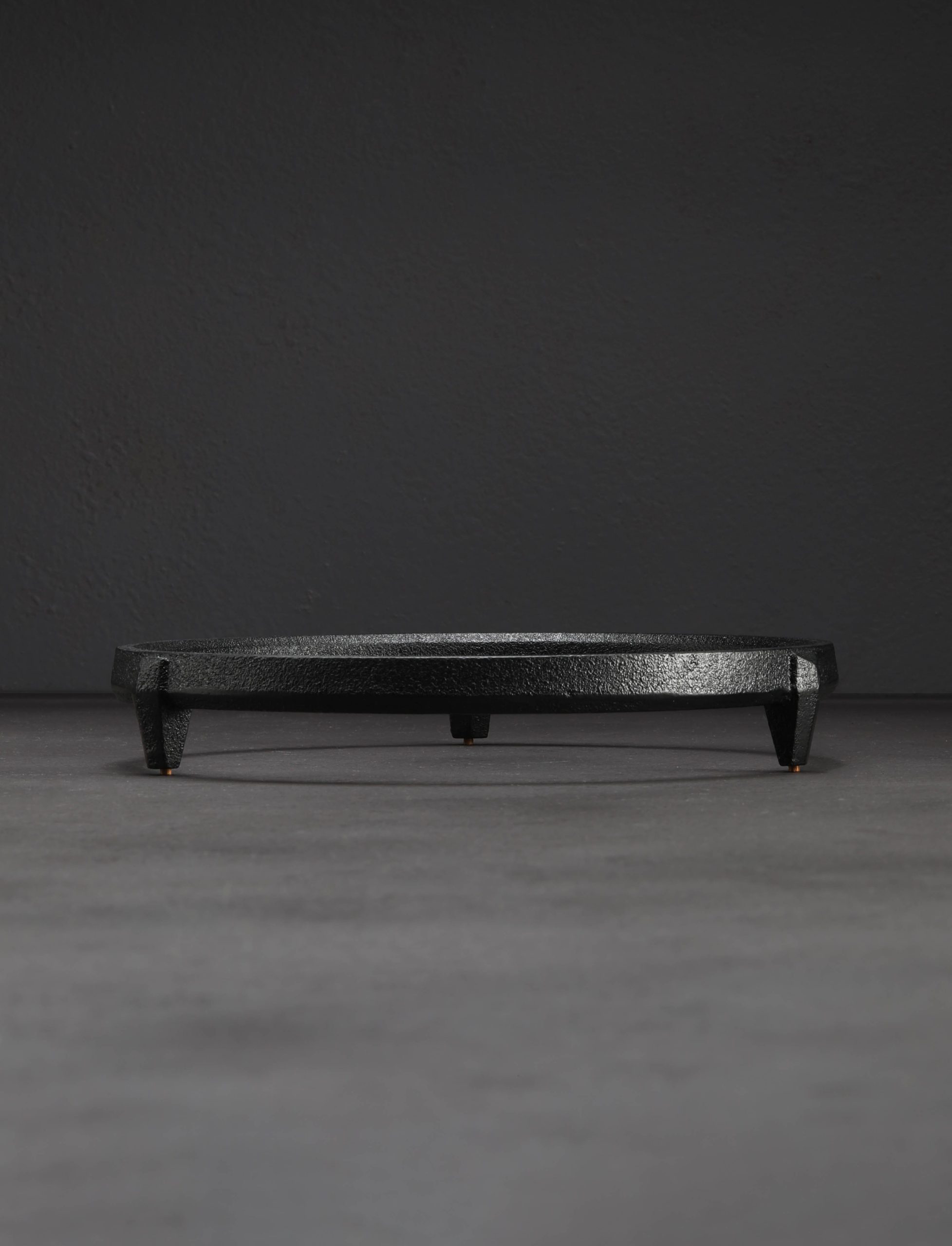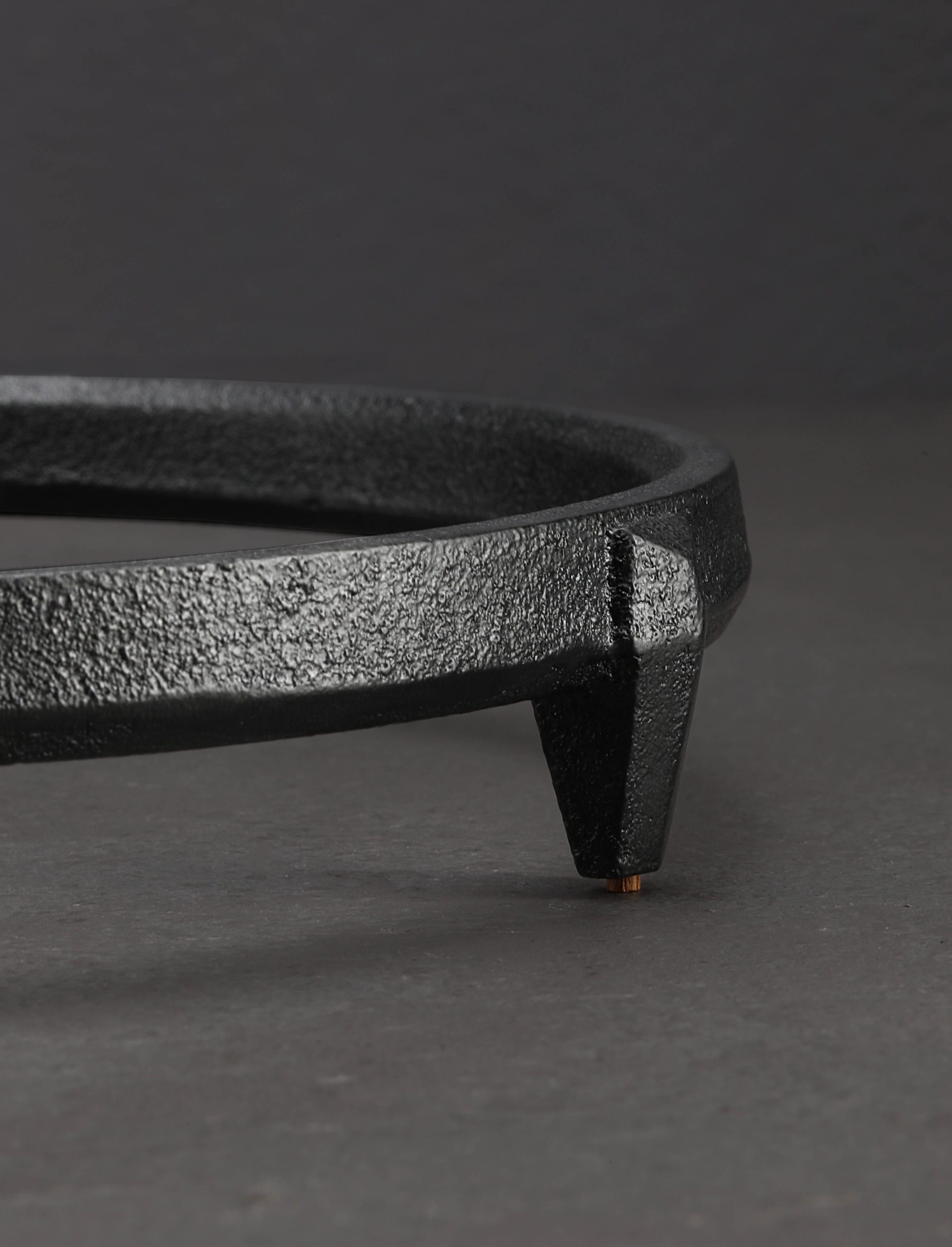 Designed by Osamu Saruyama and crafted using traditional methods by Azmaya’s craftspeople in Japan, this simple, elegant cast iron trivet stands above the table’s surface with three legs extending down from its round base. For a tea kettle just off the stove or skillet from the oven, the large diameter supports whatever the meal demands. Small teak wood inserts on the bottom of each leg help avoid scratches on the surface of the table.