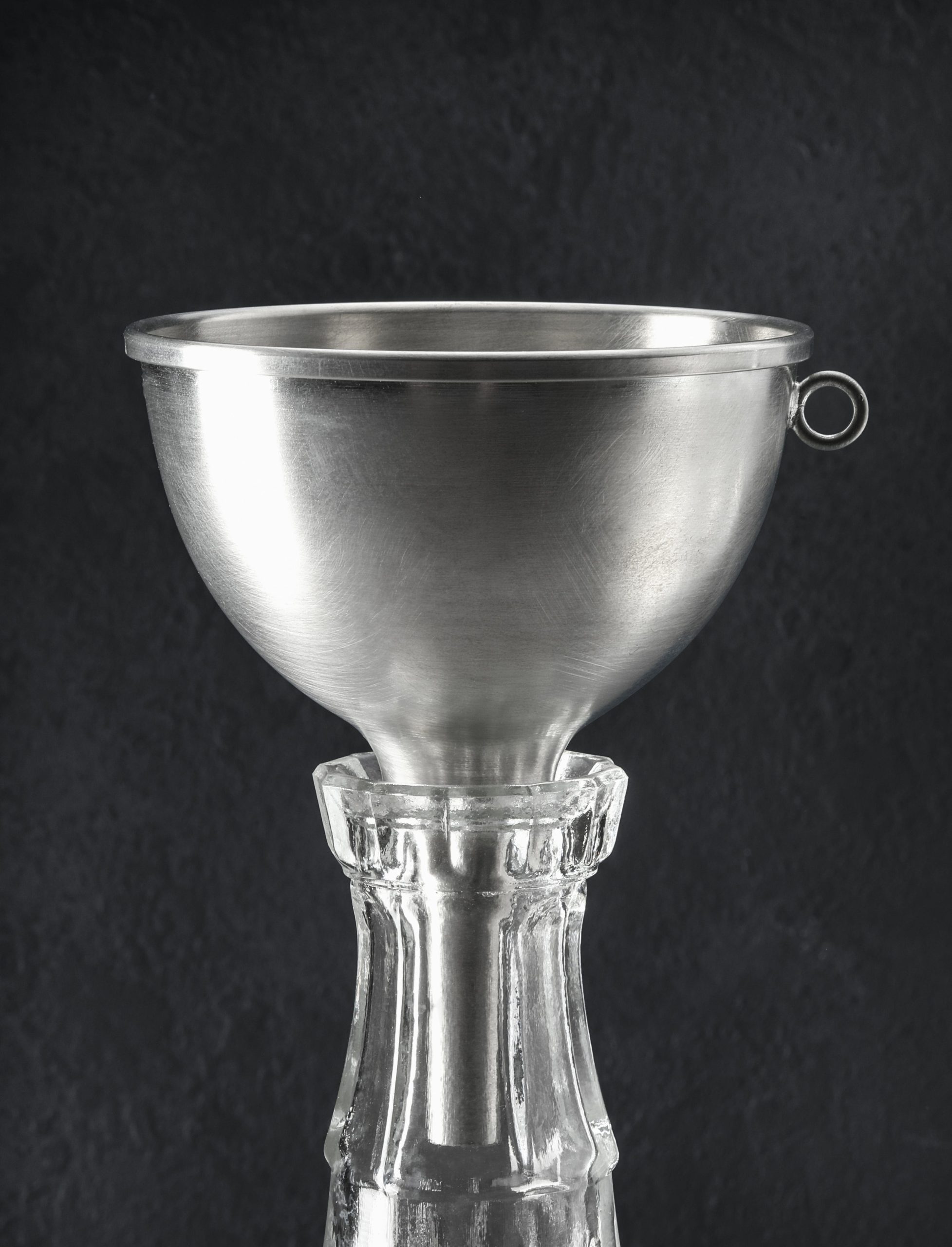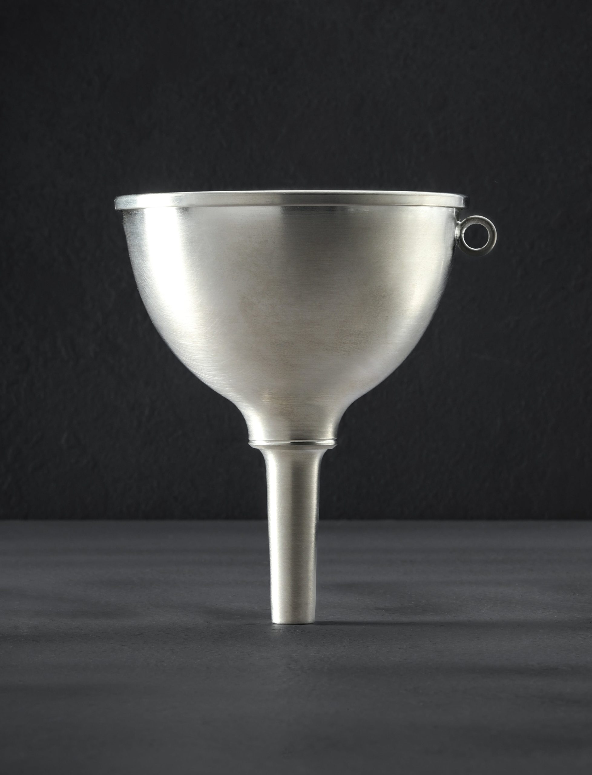 What reduces kitchen mess and is a bar, cooking, and canning tool all in one? The answer is the beautifully crafted, lightweight, and versatile Copper & Tin Funnel designed by Osamu Saruyama and crafted in Arakawa, Tokyo by Sakami Kogei. With this funnel you can easily, accurately, and cleanly pour any liquid whether that be olive oil, sauce, your liquor of choice, or even spices and grains into jars for storage. Featuring a long and narrow neck that expands from approximately 12mm / 0.5″ across at the bottom to roughly 1” where it sits on the receiving vessel, these are able to fit into smaller objects while providing ample space for an even flow.