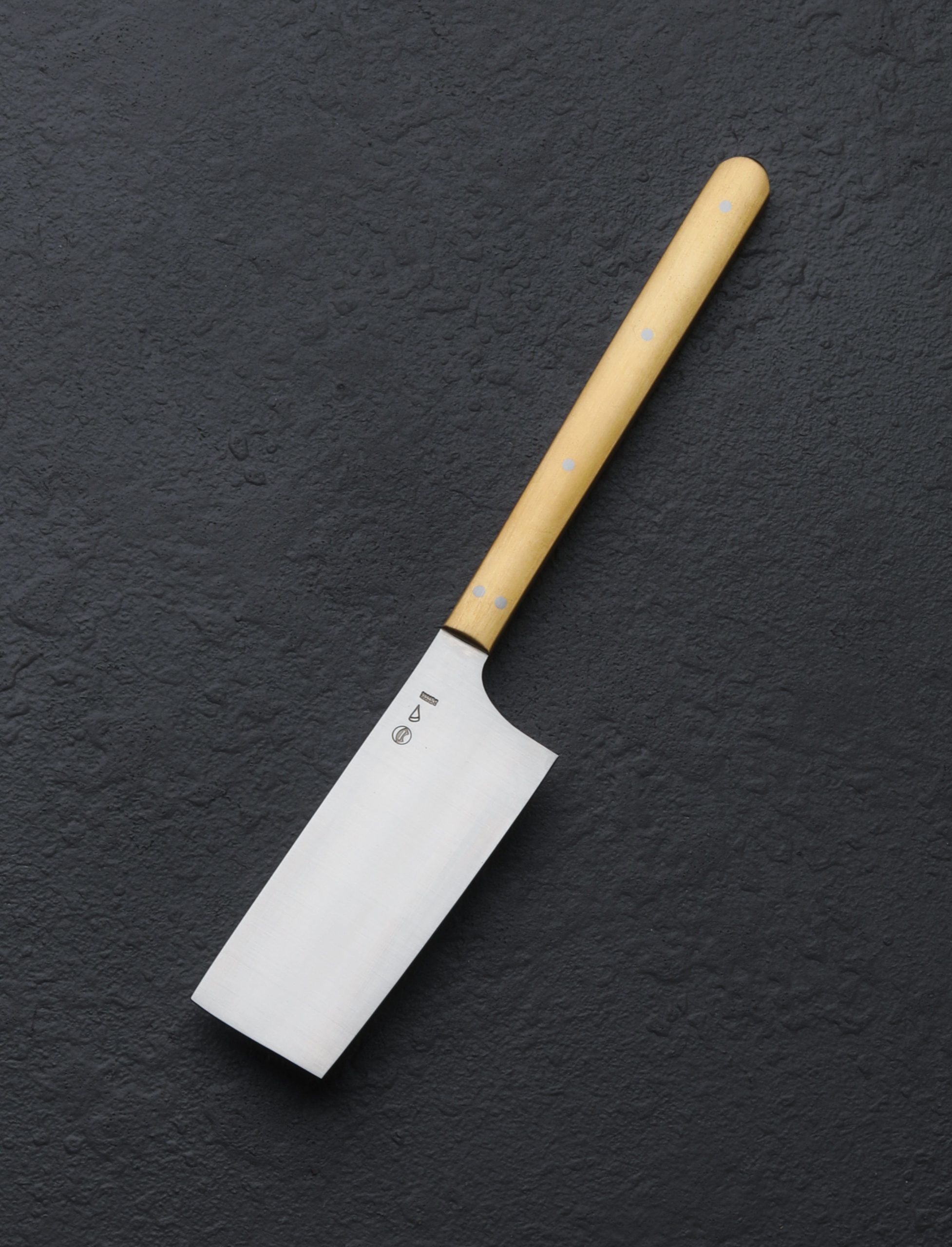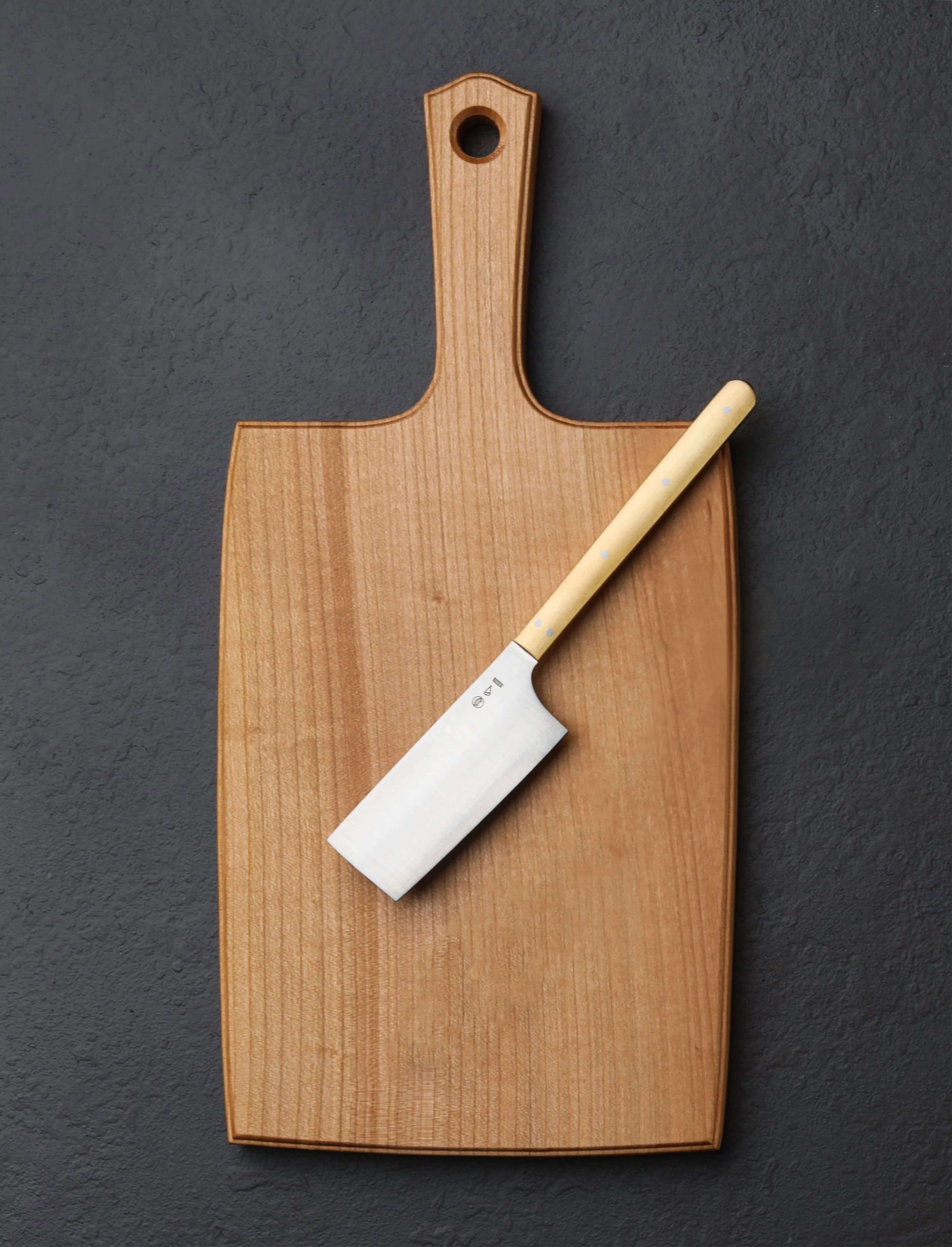 For a relaxed dining experience with friends, or a quick solo afternoon snack of cheese, nuts, and fruit, this gift set combines the long-time favorite Azmaya Brass & Steel Cheese Knife and Wild Cherry Board. Cut and serve with the traditionally handcrafted board carved in Japan and the elegant brushed brass and polished stainless steel knife with tall, sharp blade ideal for medium and hard cheeses.