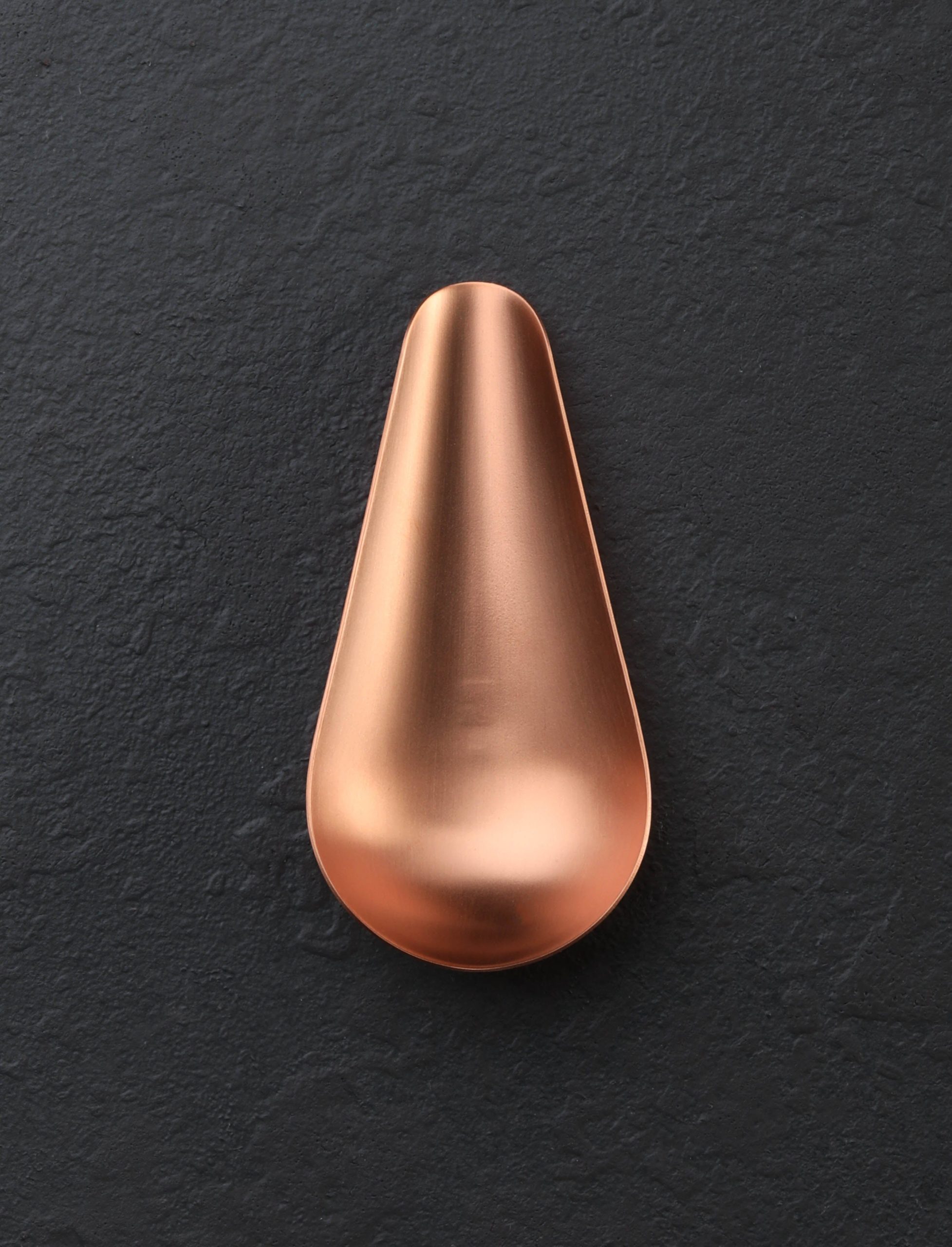 Known as Chasaji, Japanese tea scoops are used to measure and transfer loose-leaf teas into the teapot. Designed by Kaoru Watanabe and brought to life in collaboration with Azmaya, these copper scoops with an option of tinned finish add a satisfying and graceful touch to the preparation of tea. The timeless pear-shaped form of calculated proportions will provide enjoyment and ease during your daily routine.