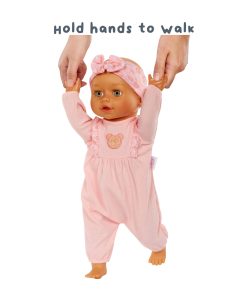 Ready, set, go! BABY born Learn to Walk Baby Doll is on the move! Bringing even more fun to everyday adventures, this adorable BABY born Learn to Walk Baby Doll Olivia comes with 6 realistic features to enhance your child’s imaginative play: crawling, first steps, giggles, sleepy sounds, arm and leg movements and soothing cuddles.