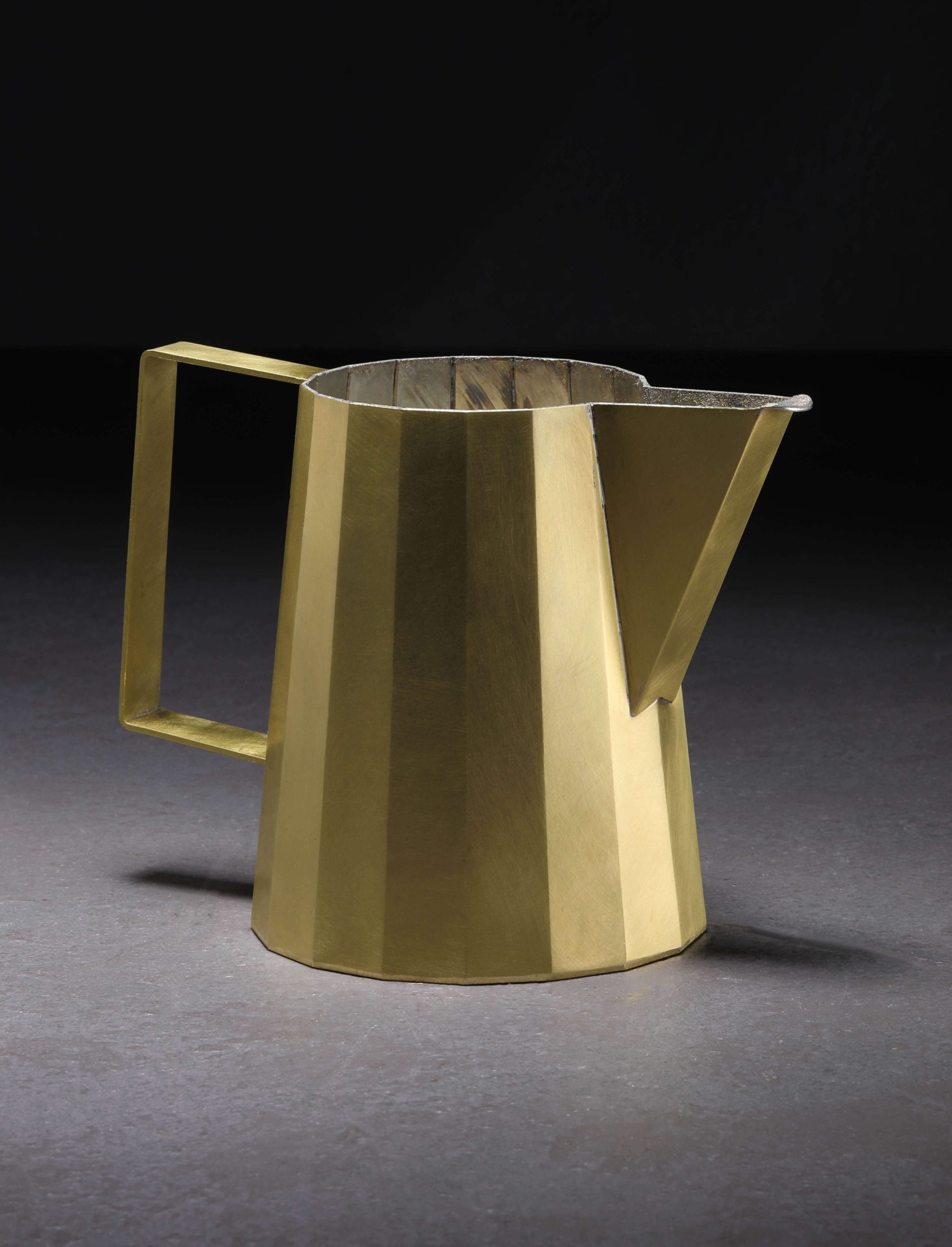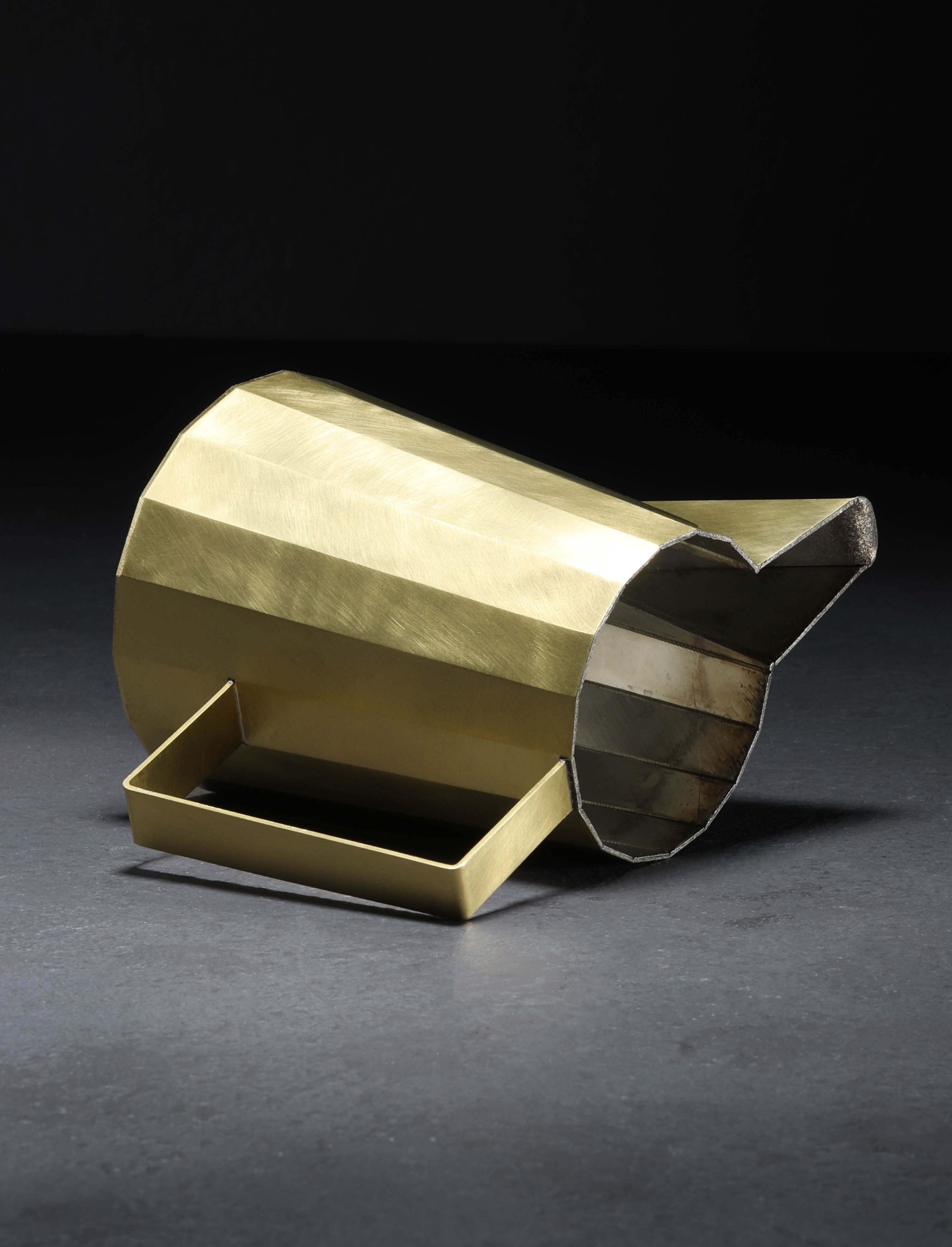 For the first time in three years we are honored to have received a small number of the Barista’s Brass Milk Jug from Sydney designer and metal artist Kenny Son. Classic yet modern, its form is at once unique, sophisticated, and approachable. Kenny aims to create works that interact with both the user and their environment in ways that trigger emotions when harmony between object and user is attained. To steam and pour milk for espresso-based drinks, Kenny’s design provides a capacity of approximately 384 milliliters of liquid, or just over 12 ounces, perfect for the home bar. Built one at a time by hand from solid brass with a tinned copper interior applied using traditional methods, the 16-sided shape incorporates a handle and square spout, fitting in beautifully with Kenny’s collection of vessels and other culinary objects that combine form and function in exhilarating ways.