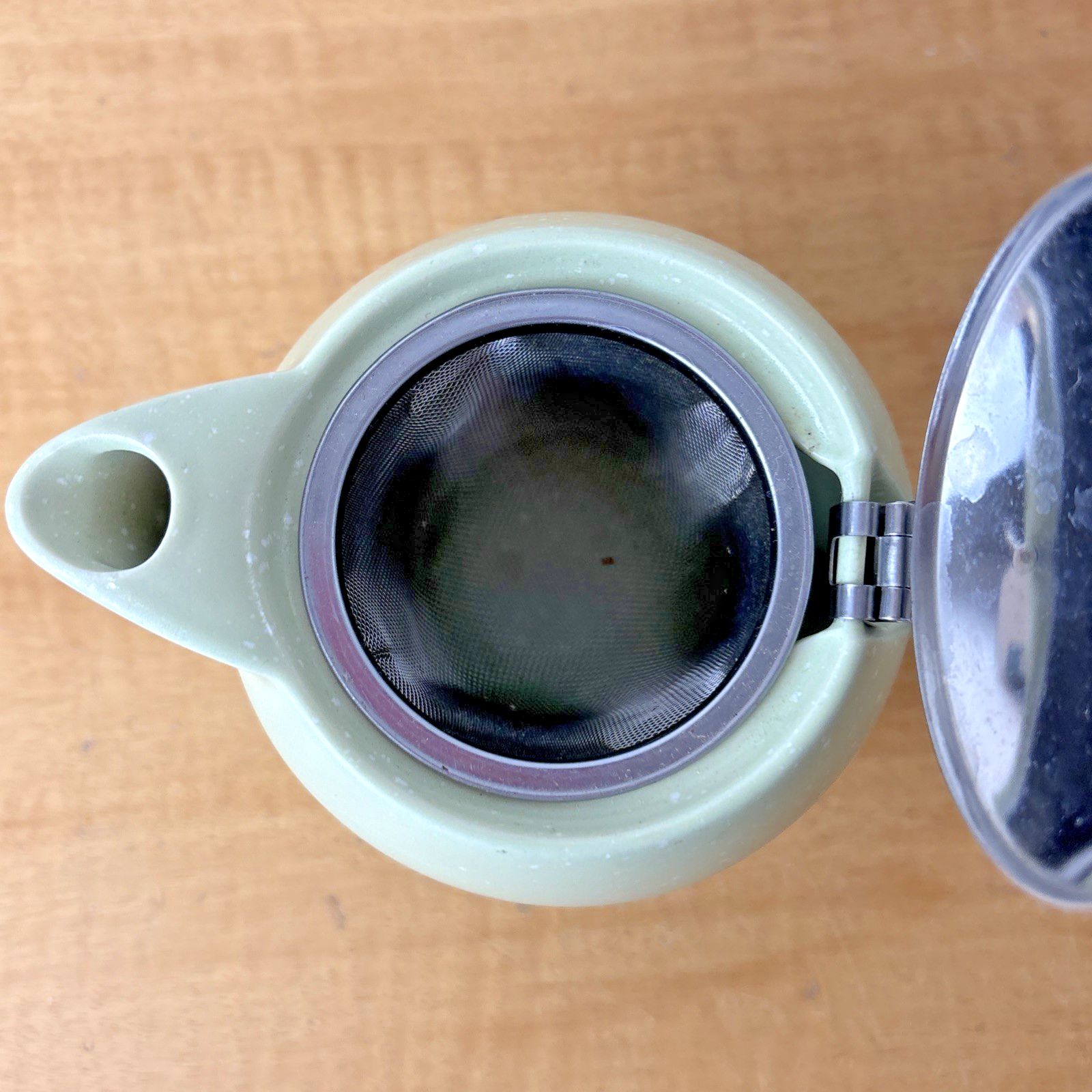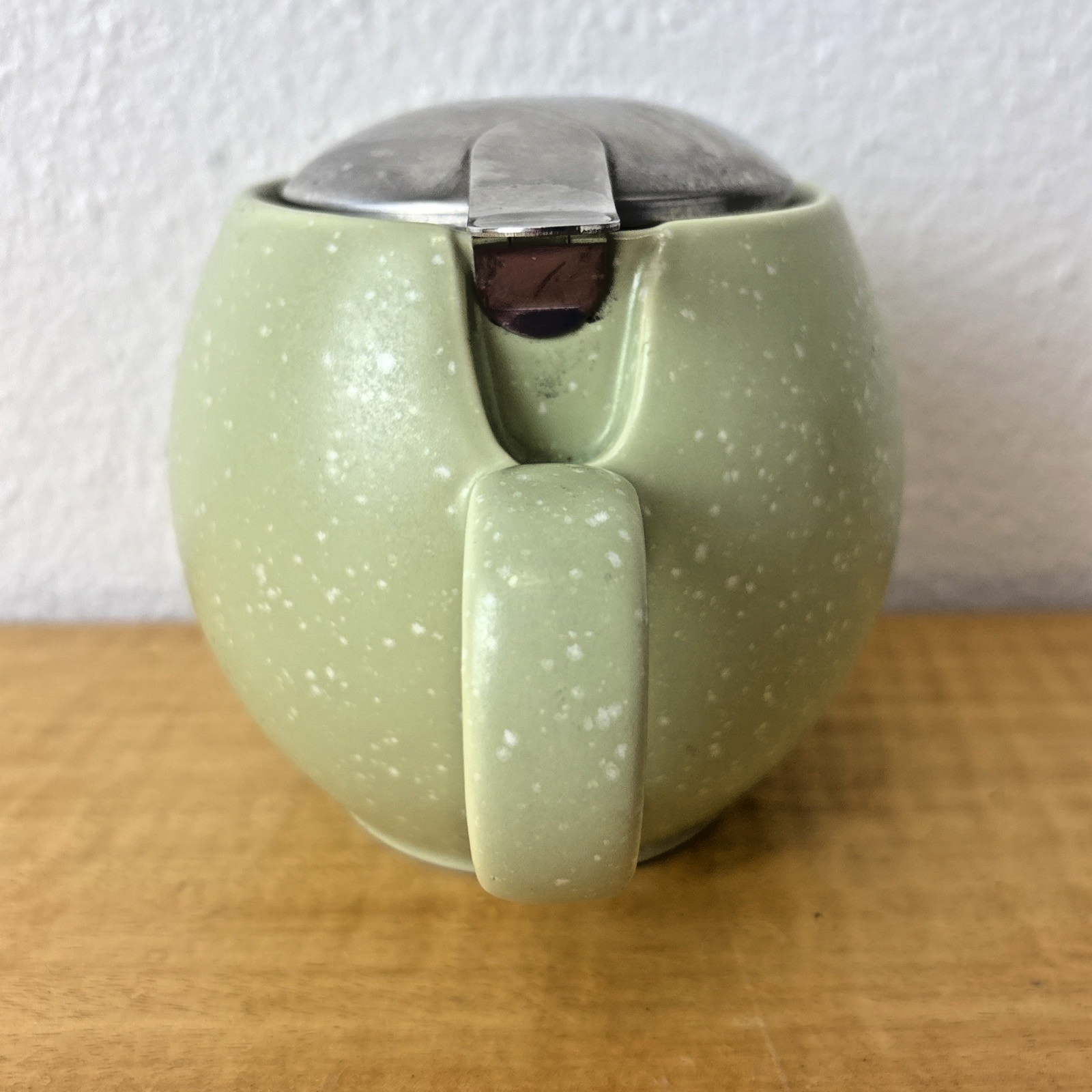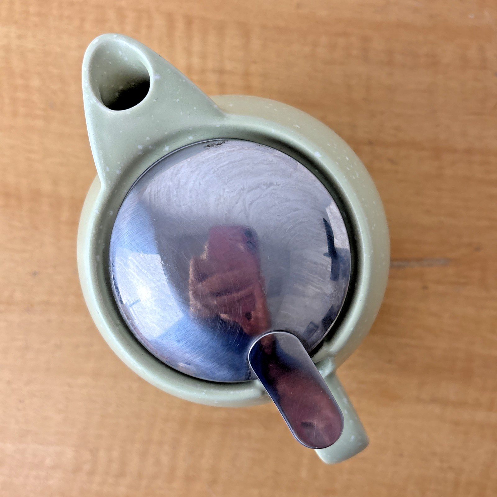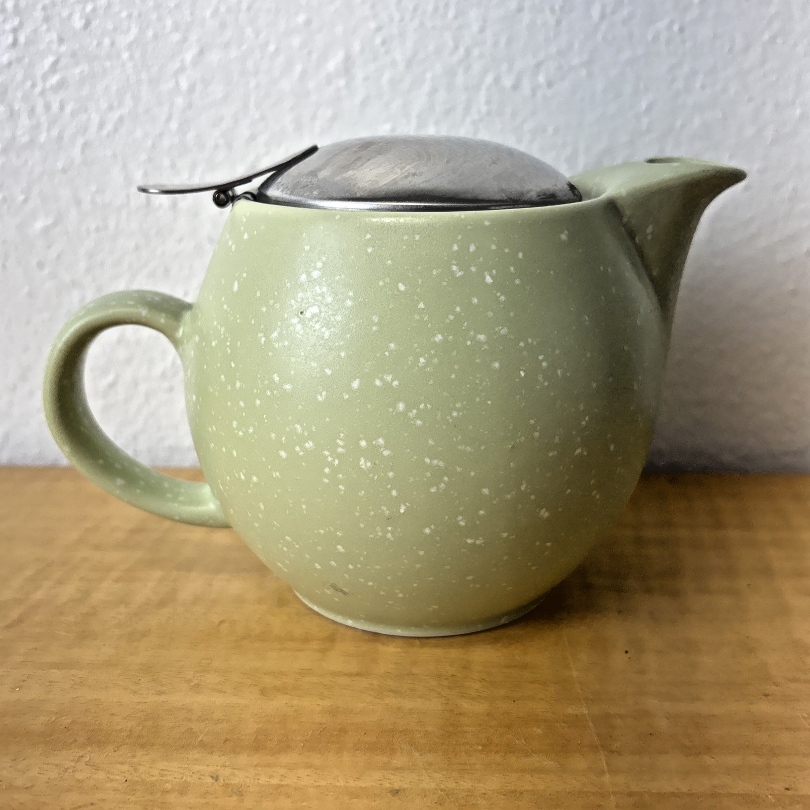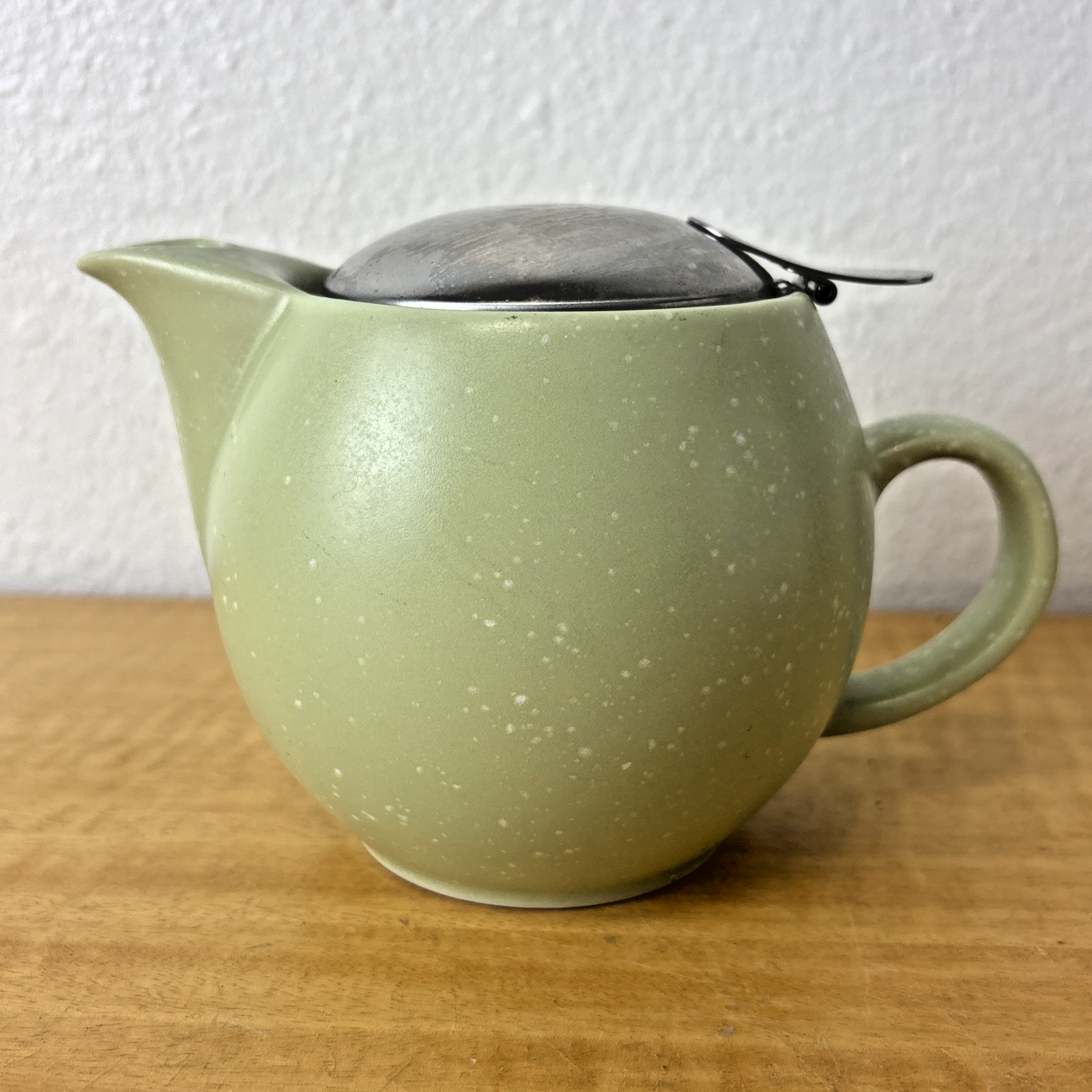BEE HOUSE JAPAN ROUND SPECKLED GREEN 1 CUP CERAMIC TEAPOT WITH STRAINER