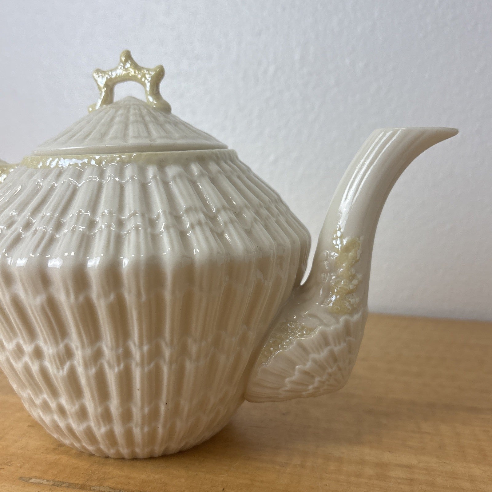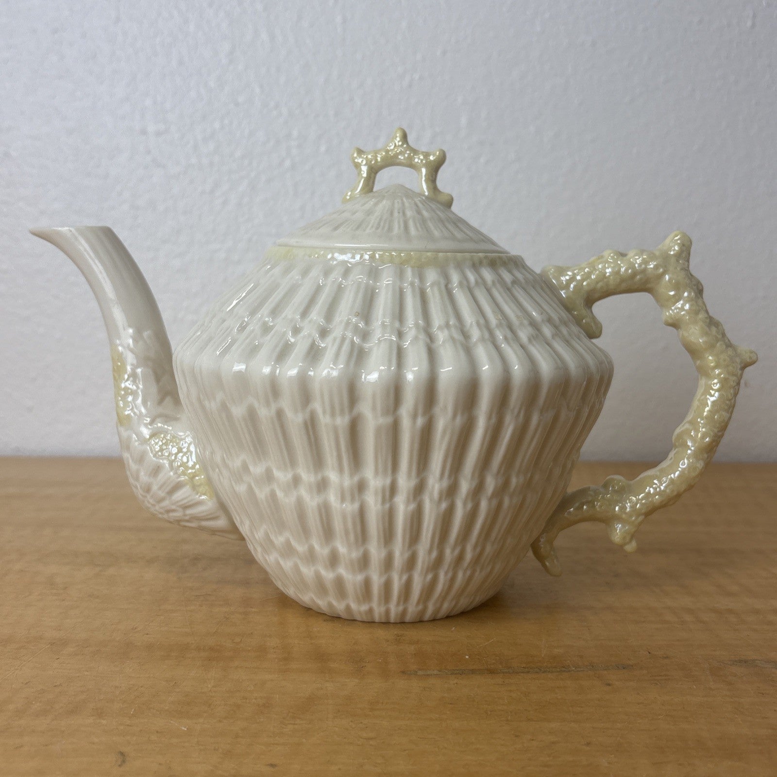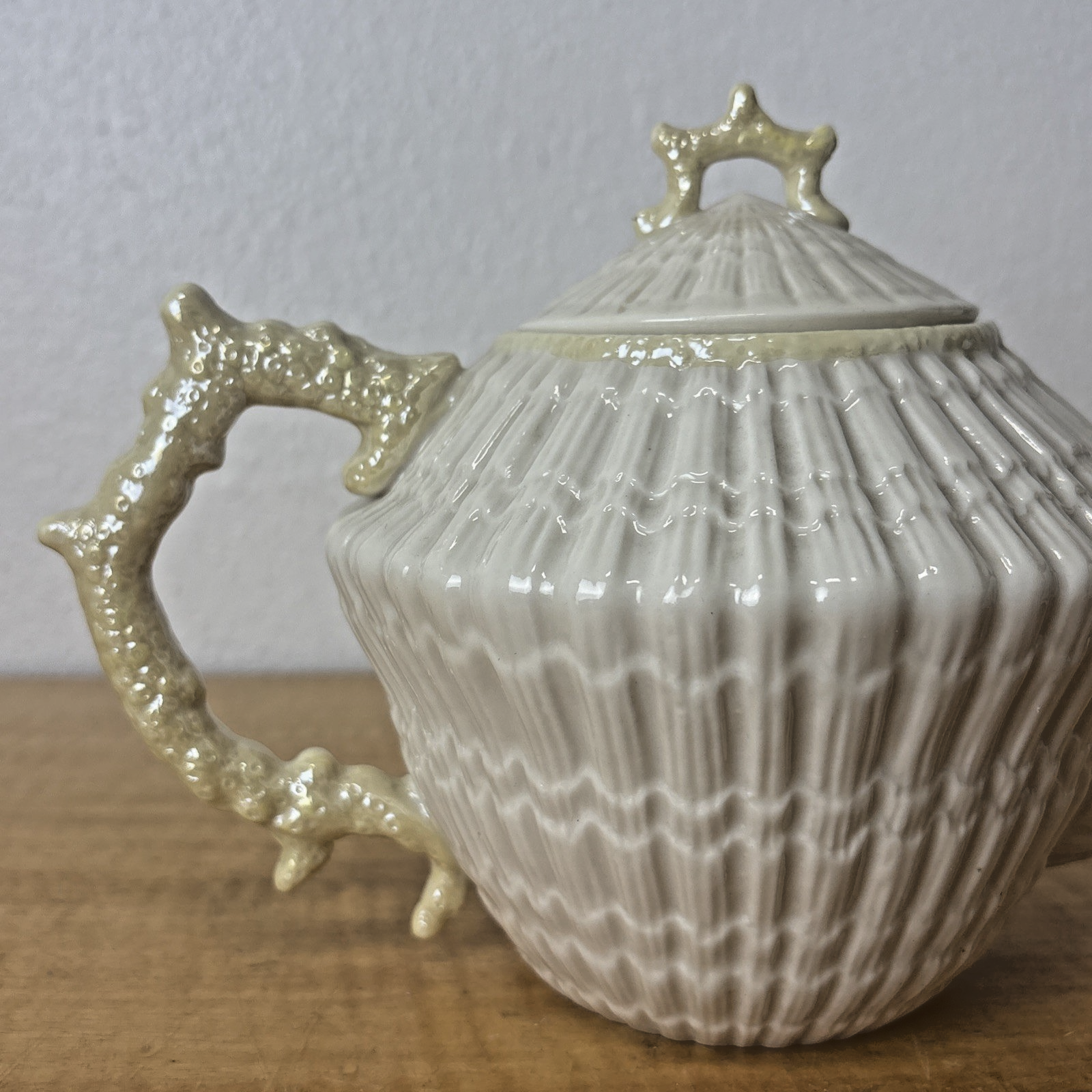 Belleek Irish Pottery Limpet Pattern Green Mark Teapot w/ Lid