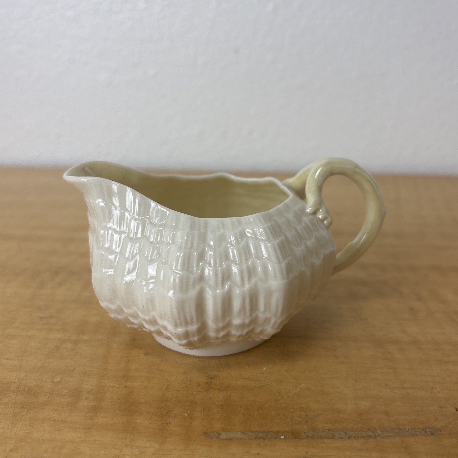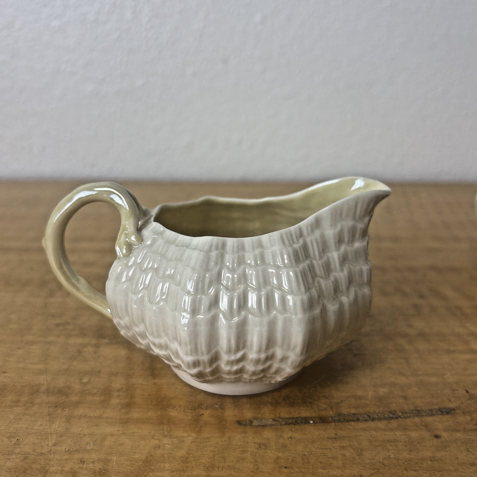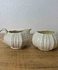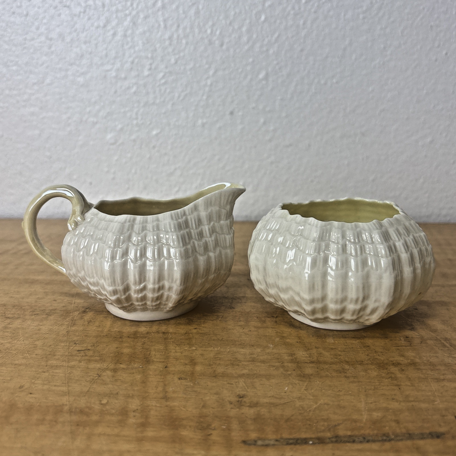 Belleek Tridacna Yellow Creamer Sugar Bowl Green Mark Set Vintage Irish