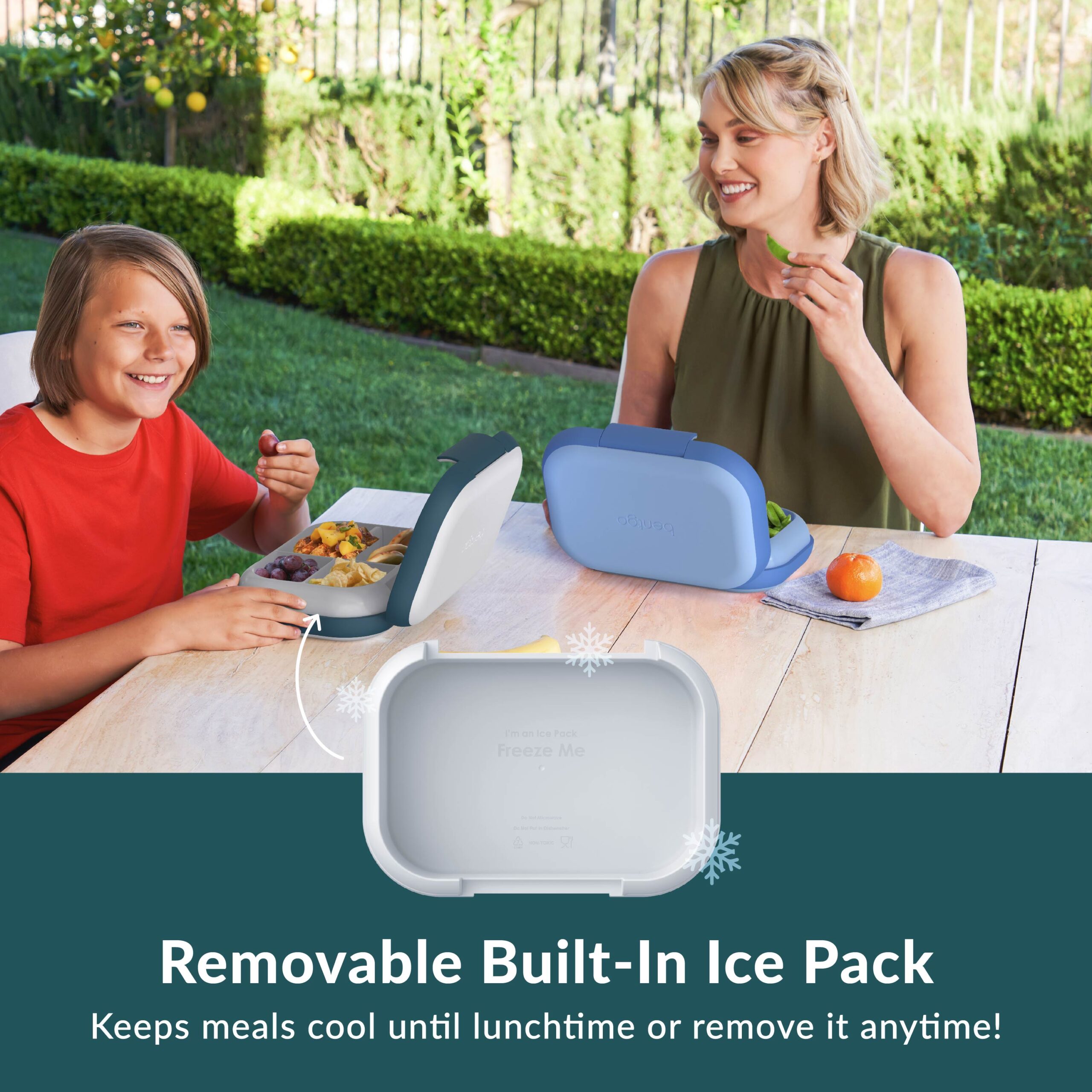 - A removable ice pack keeps food fresh and cool longer – or use it without the ice pack.