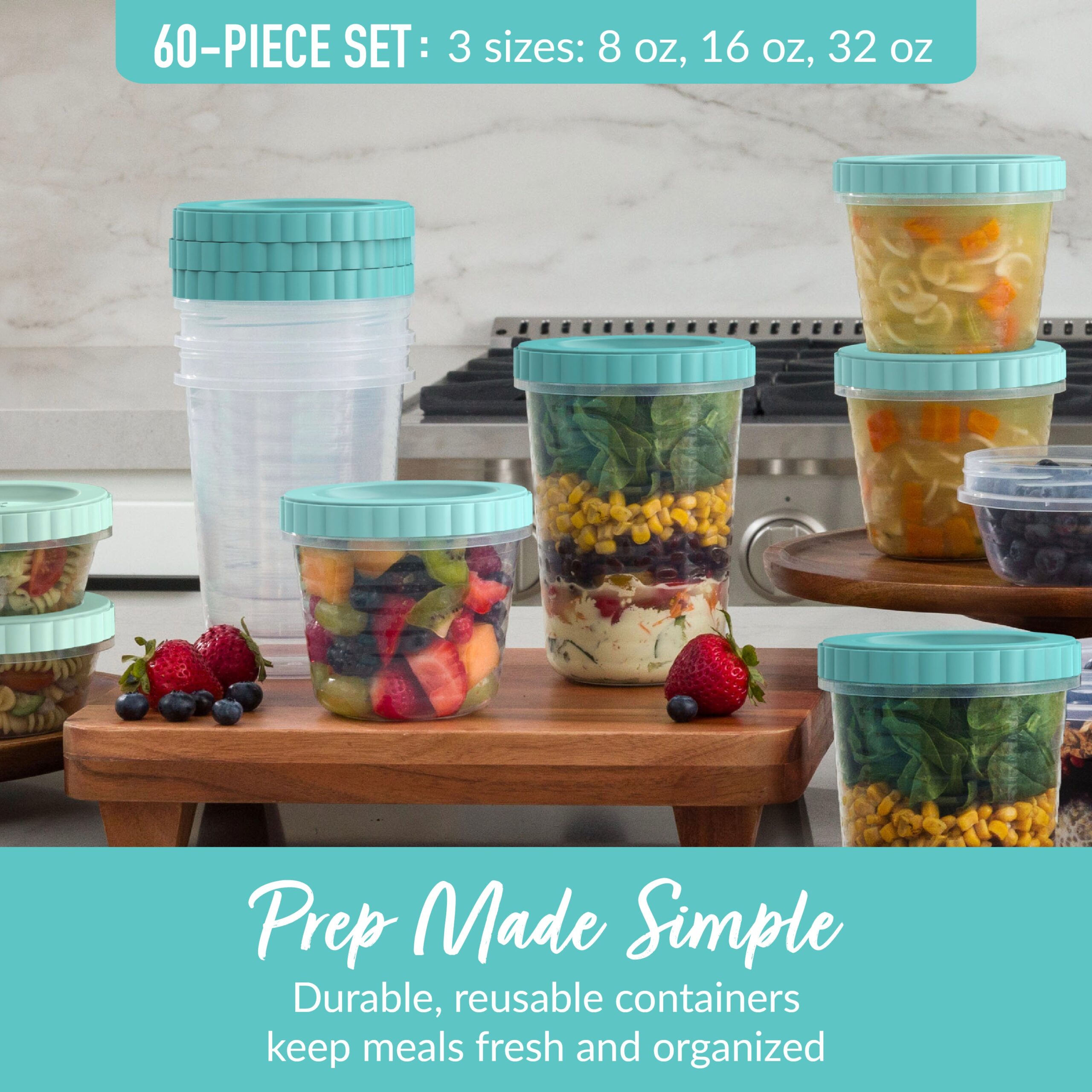 - Complete 60-Piece Set: This set includes 30 durable containers with 30 twist-top lids in 3 sizes (8 fl oz, 16 fl oz, 32 fl oz). They are perfect for snacks, lunches, leftovers, and family meals, so you can prep ahead and stay organized all week.