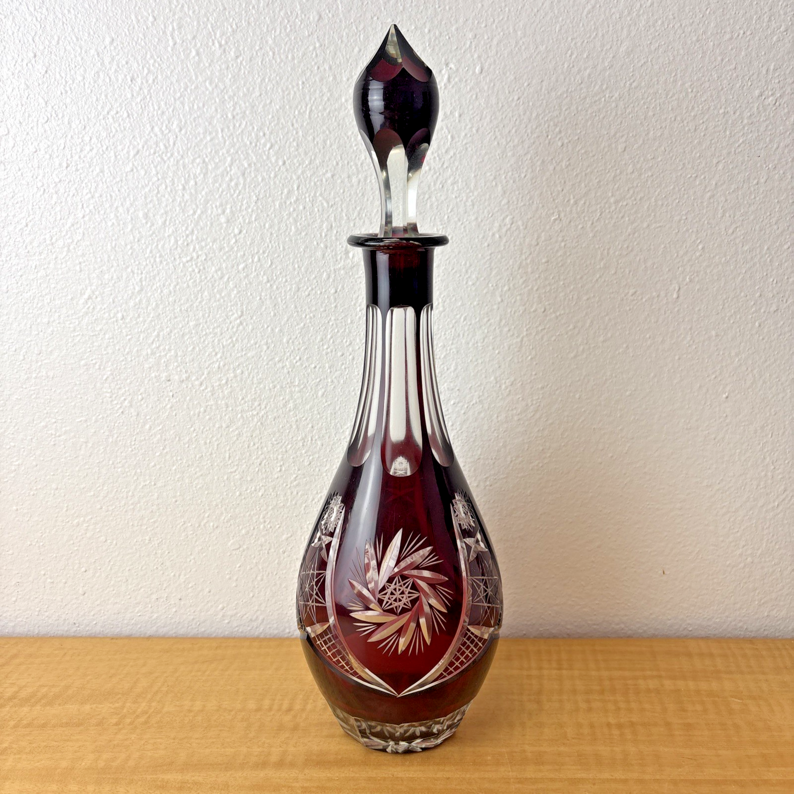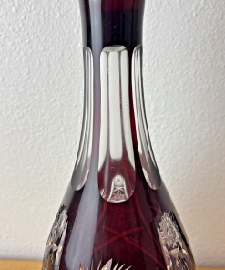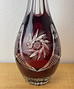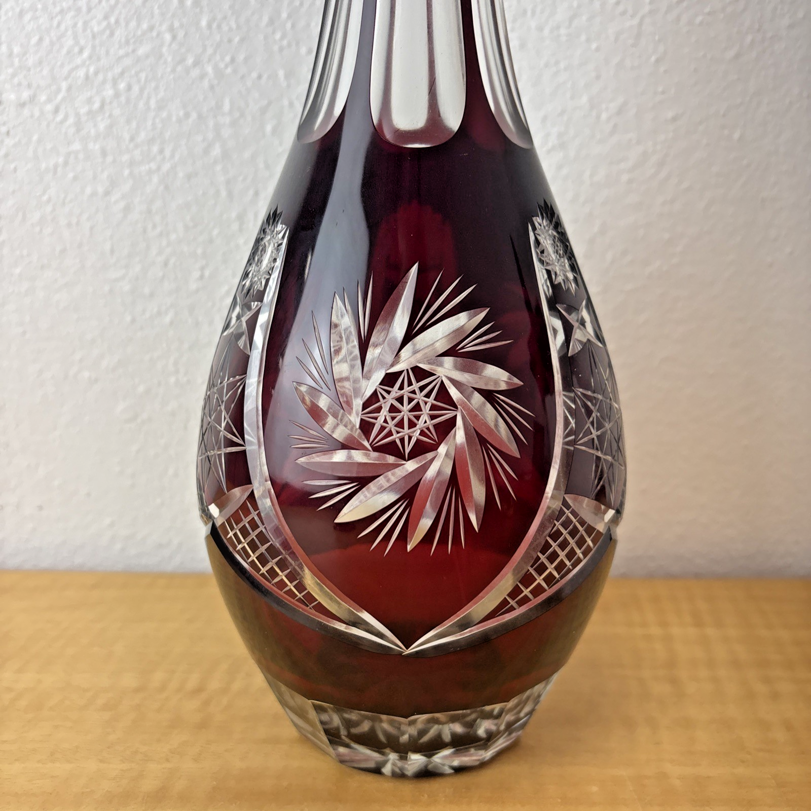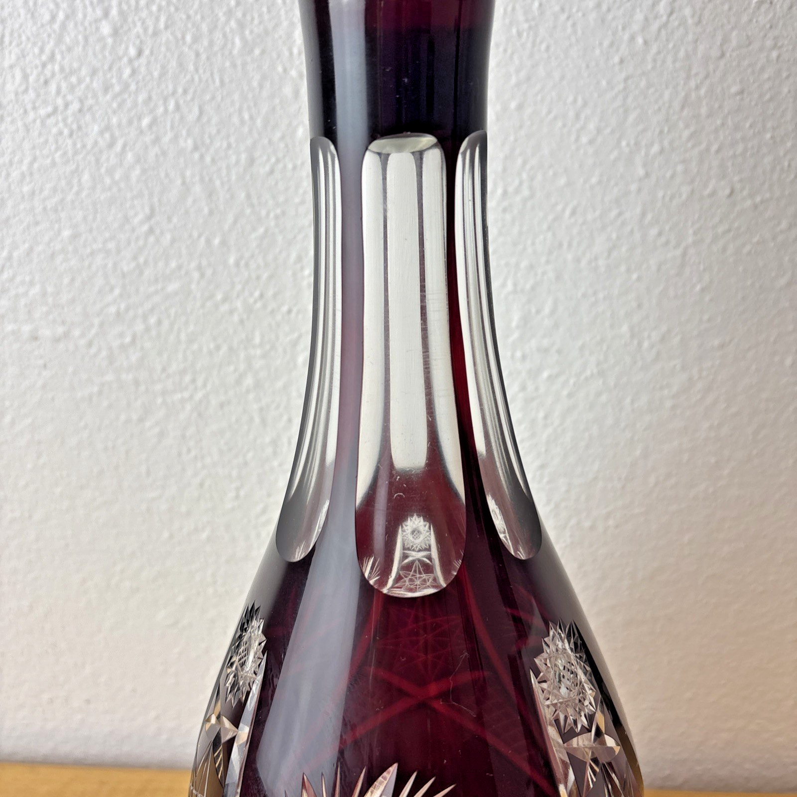 Biedermeir Style Bohemia Ruby Red Crystal Bottle Cut and Grinded Decanter