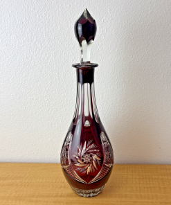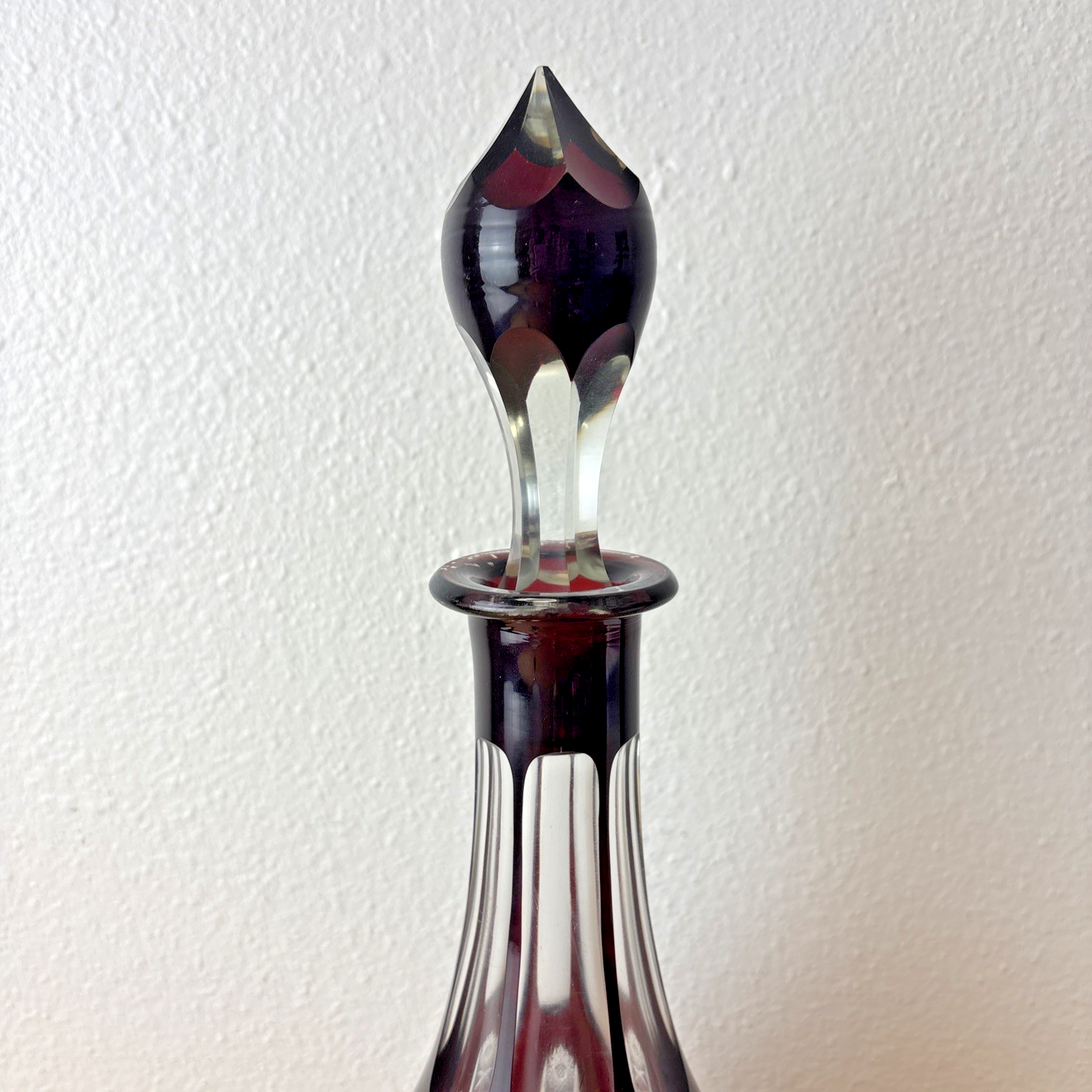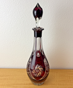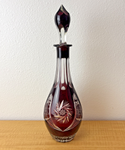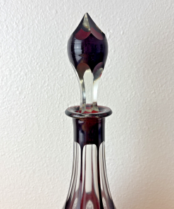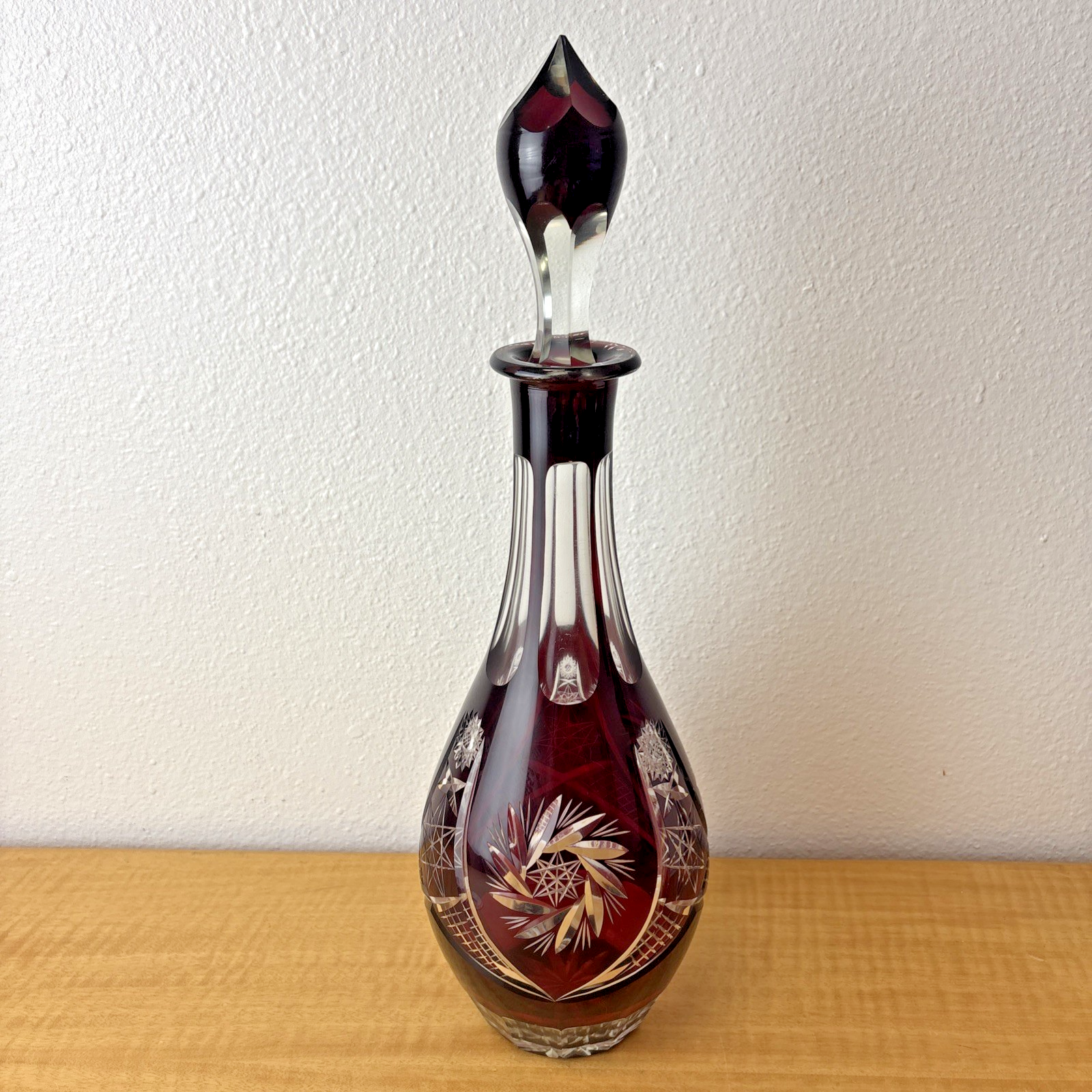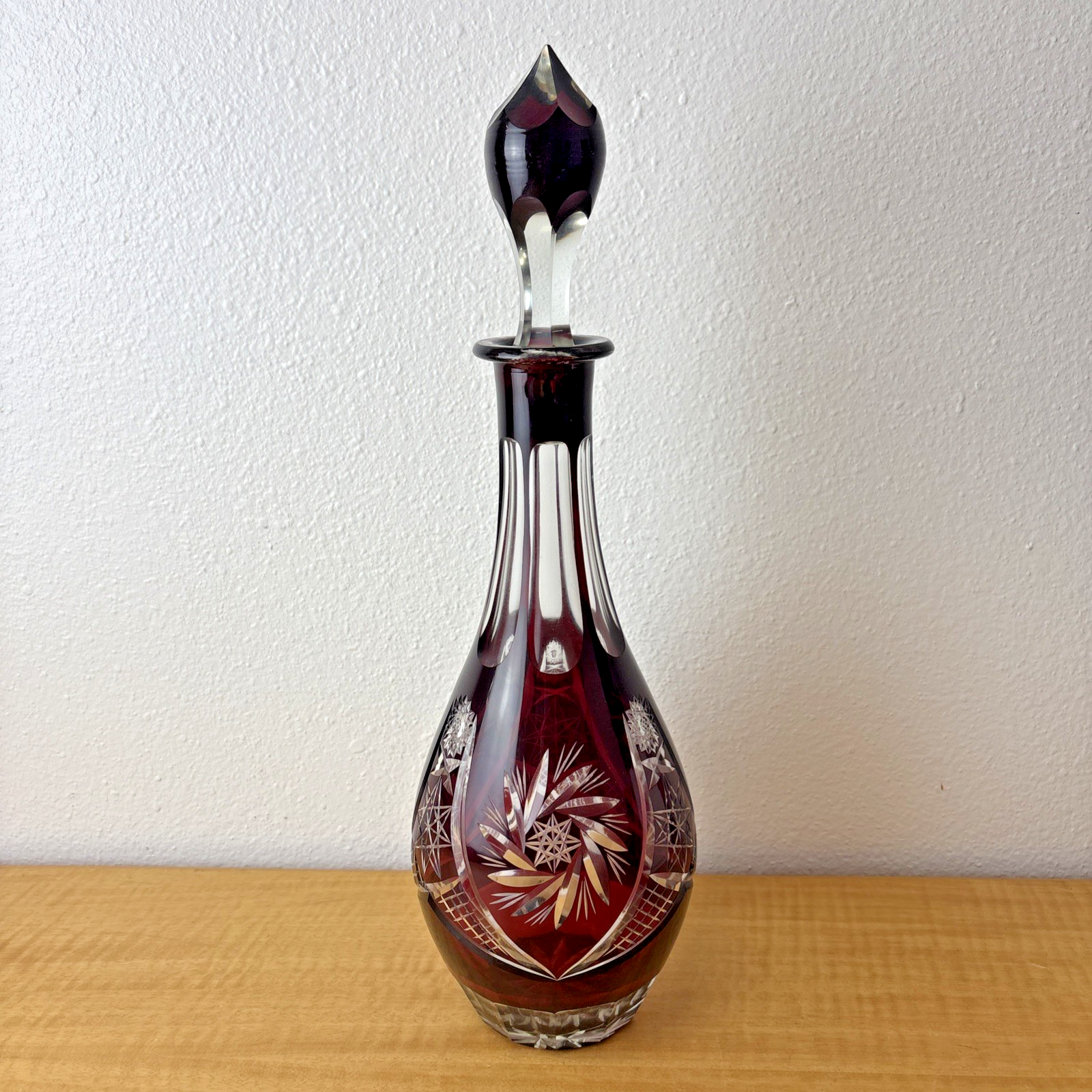 Biedermeir Style Bohemia Ruby Red Crystal Bottle Cut and Grinded Decanter