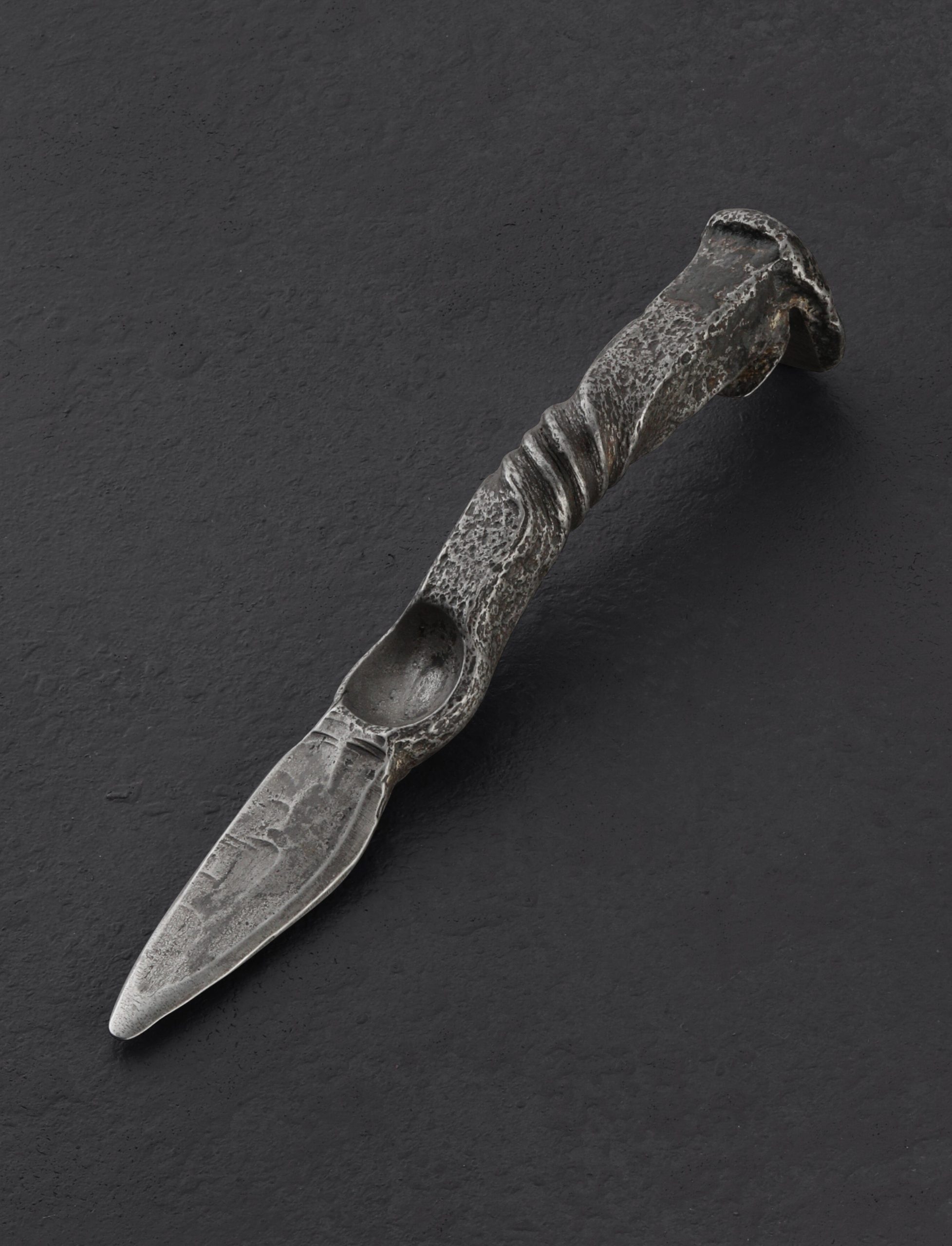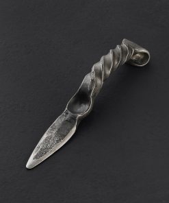 Hand forged from a reclaimed railroad spike, this oyster knife with integrated bottle opener on underside of the handle is your go-to tool for shucking, outdoor shellfish shenanigans, and bottle popping. Measuring approximately 7.75″ long with a 2.75″ blade, oyster opening has never been this easy, or fun. A never-ending variety of shapes and textures makes each handmade shucker a unique creation. While conforming to your hand like a precision instrument, the aesthetics will turn heads with its raw, natural look. This oyster tool is an outstanding example of craftsmanship, functionality, and art.