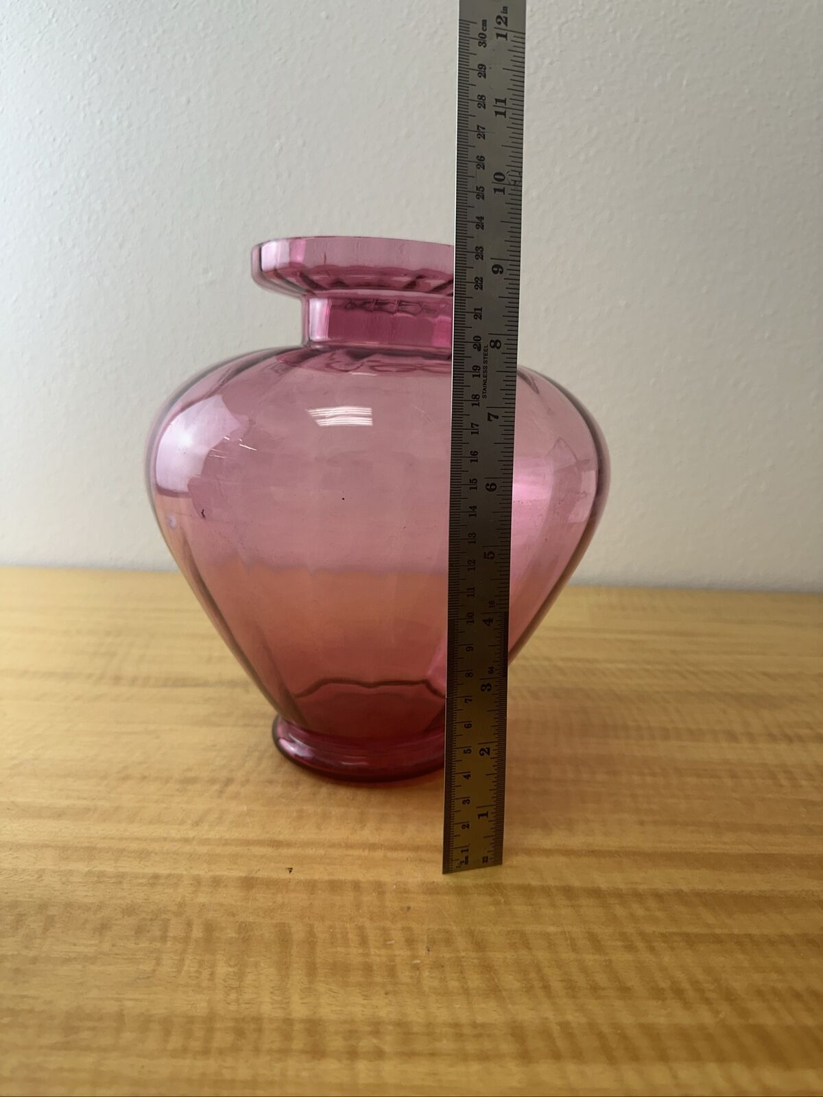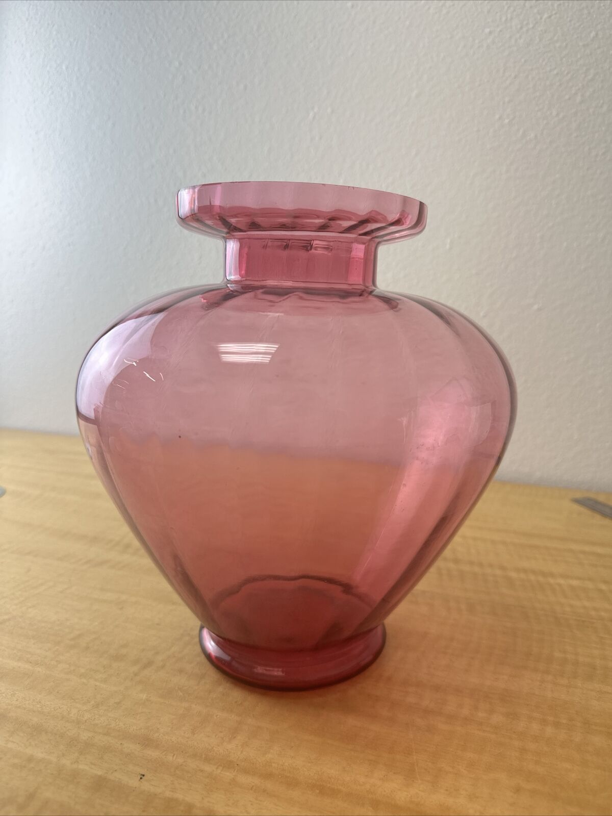 Big Pilgrim Cranberry Vase With Original Sticker 9.5” Tall