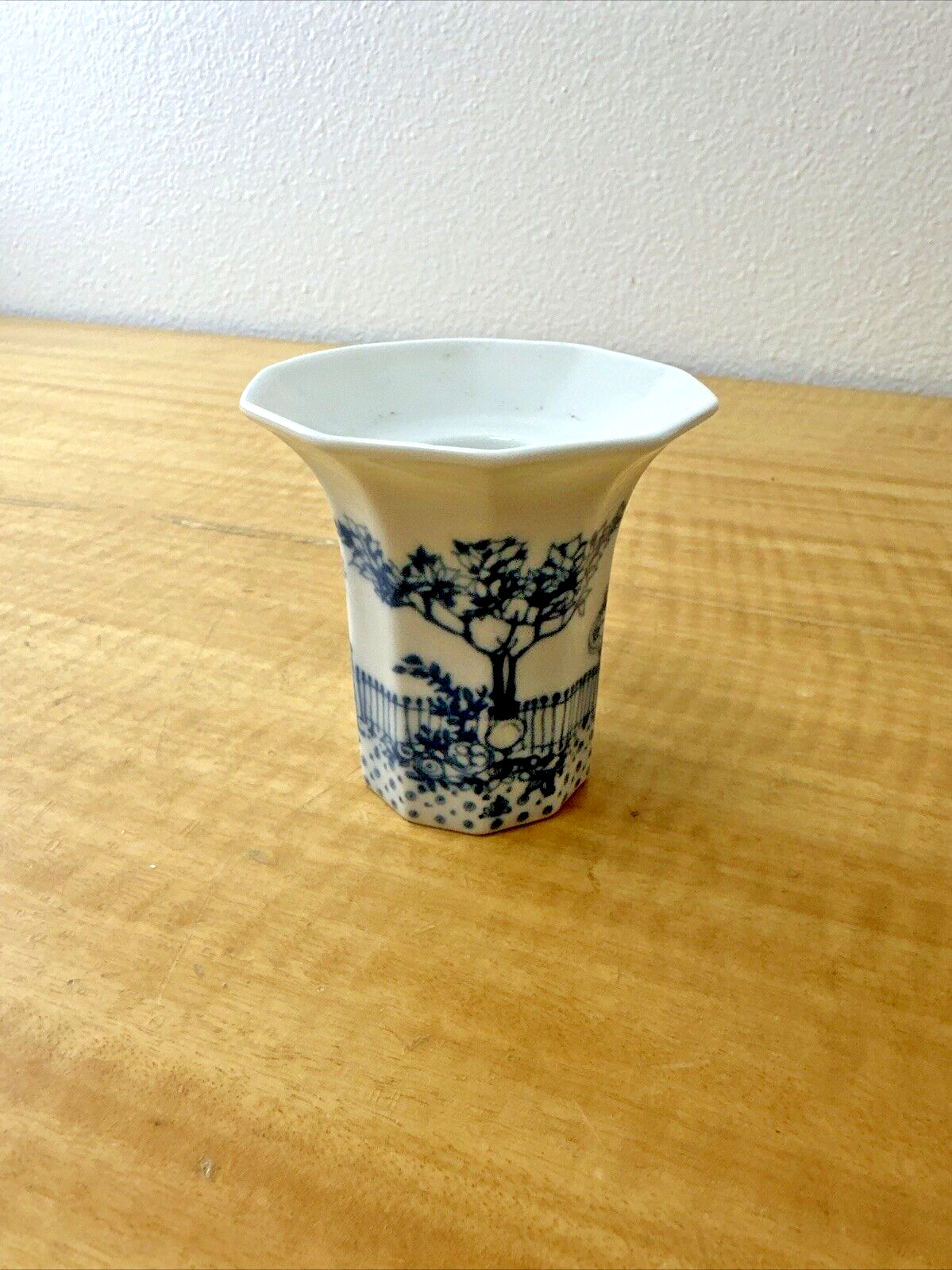Bjorn Wiinblad Rosenthal Candlestick Candle Holder Trees White & Blue 3”