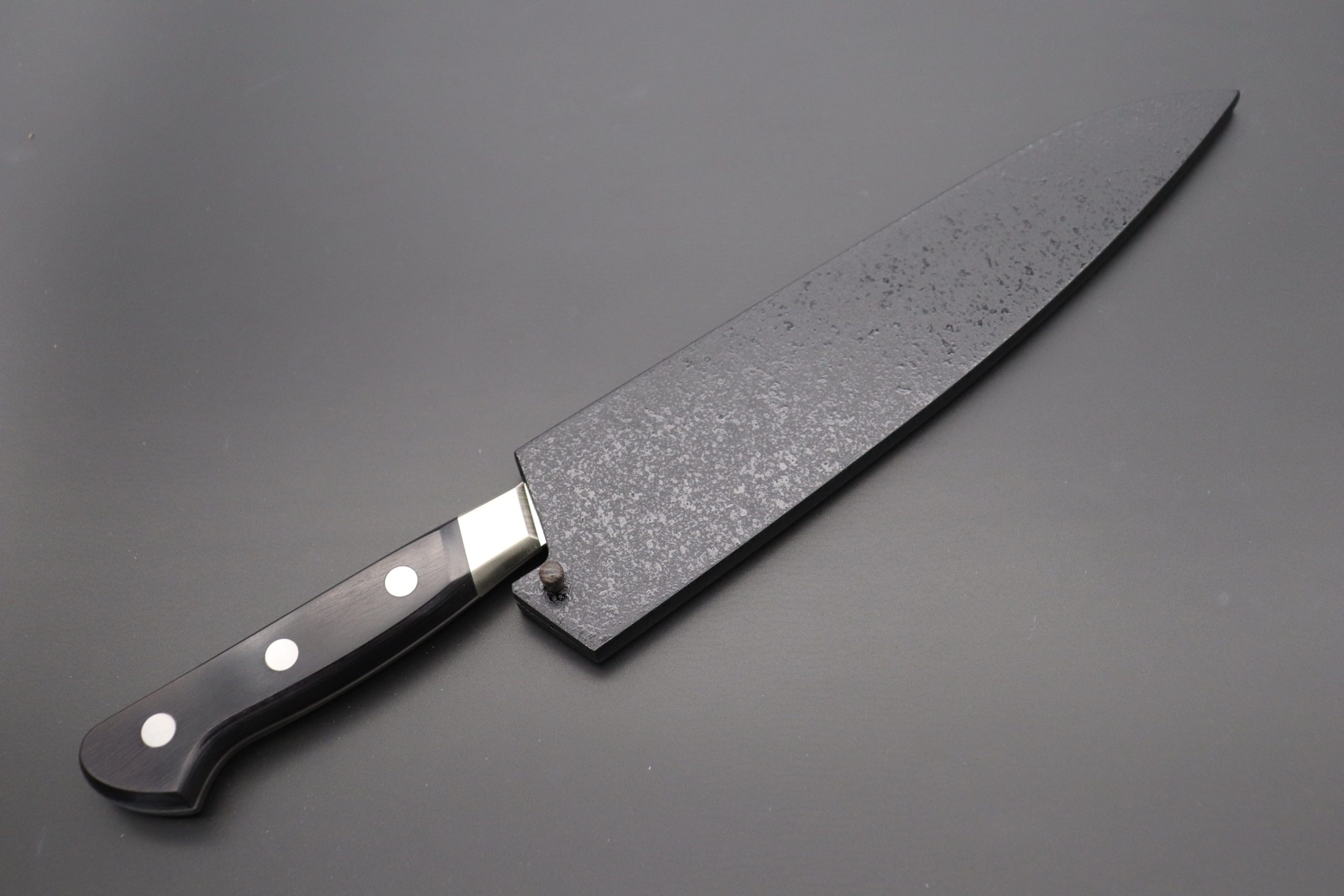 The Misono UX10 Series knives are one of the highest-quality professional stainless steel kitchen knives on the market and they feature a stylish, well balanced, slanted Nickel Silver bolster. This particular handcrafted Magnolia Wooden Saya has been specially customized to seamlessly fit the and . It offers the best-possible fit for the UX10 Gyuto 240mm and it is therefore the Saya we recommend for the knife.