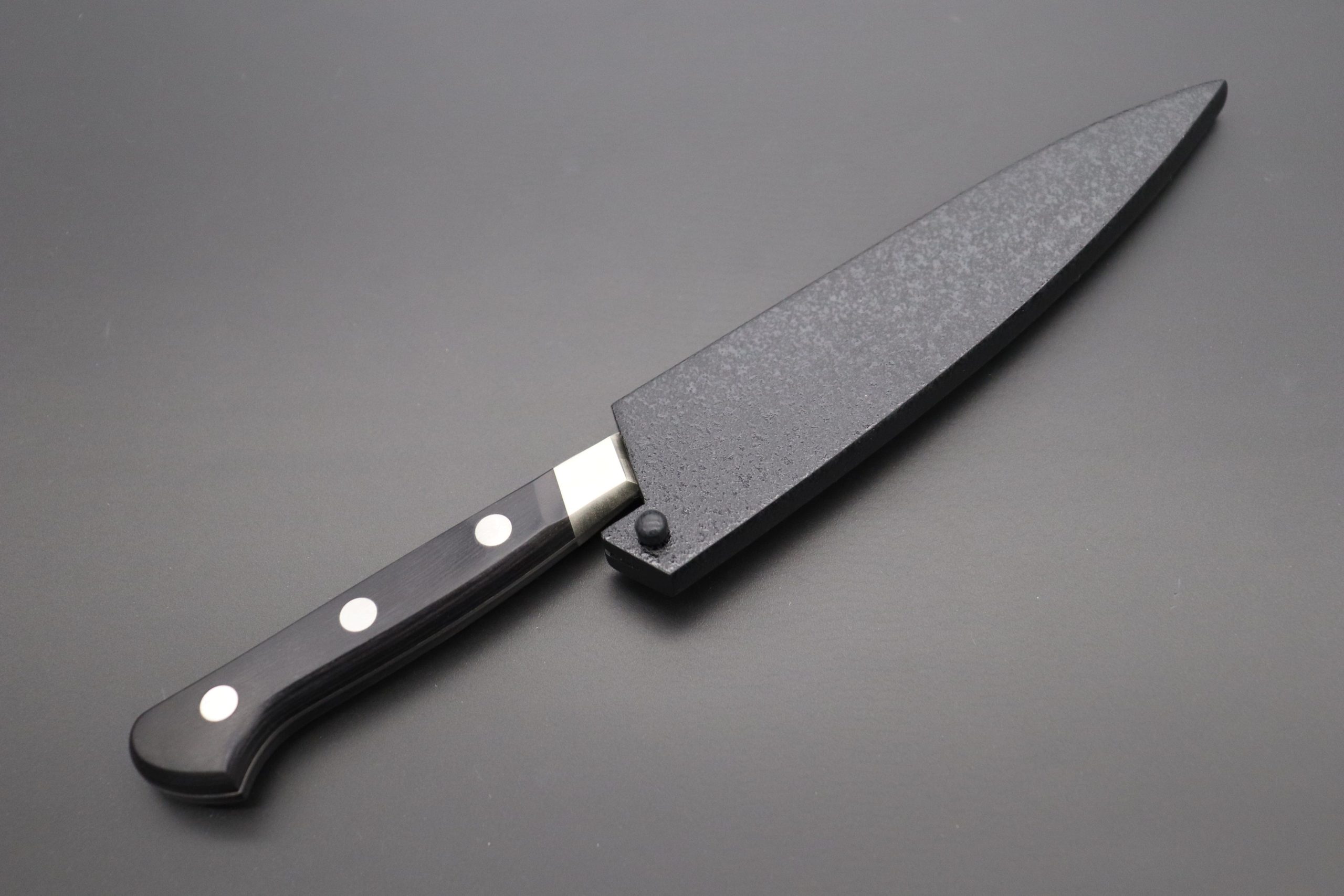 The Misono UX10 Series knives are one of the highest-quality professional stainless steel kitchen knives on the market and they feature a stylish, well balanced, slanted Nickel Silver bolster. This particular handcrafted Magnolia Wooden Saya has been specially customized to seamlessly fit the and . It offers the best-possible fit for the UX10 Petty 120mm and it is therefore the Saya we recommend for the knife.