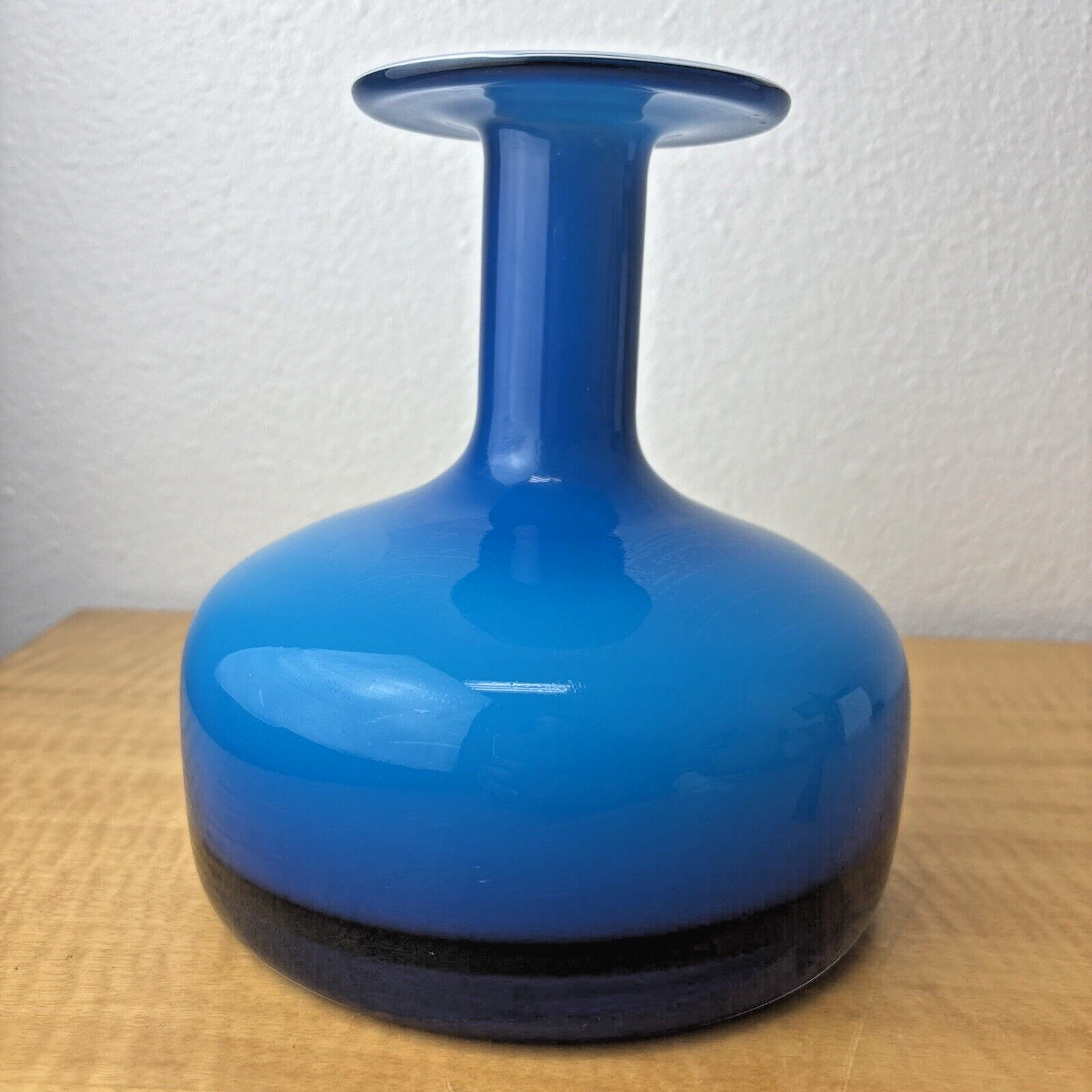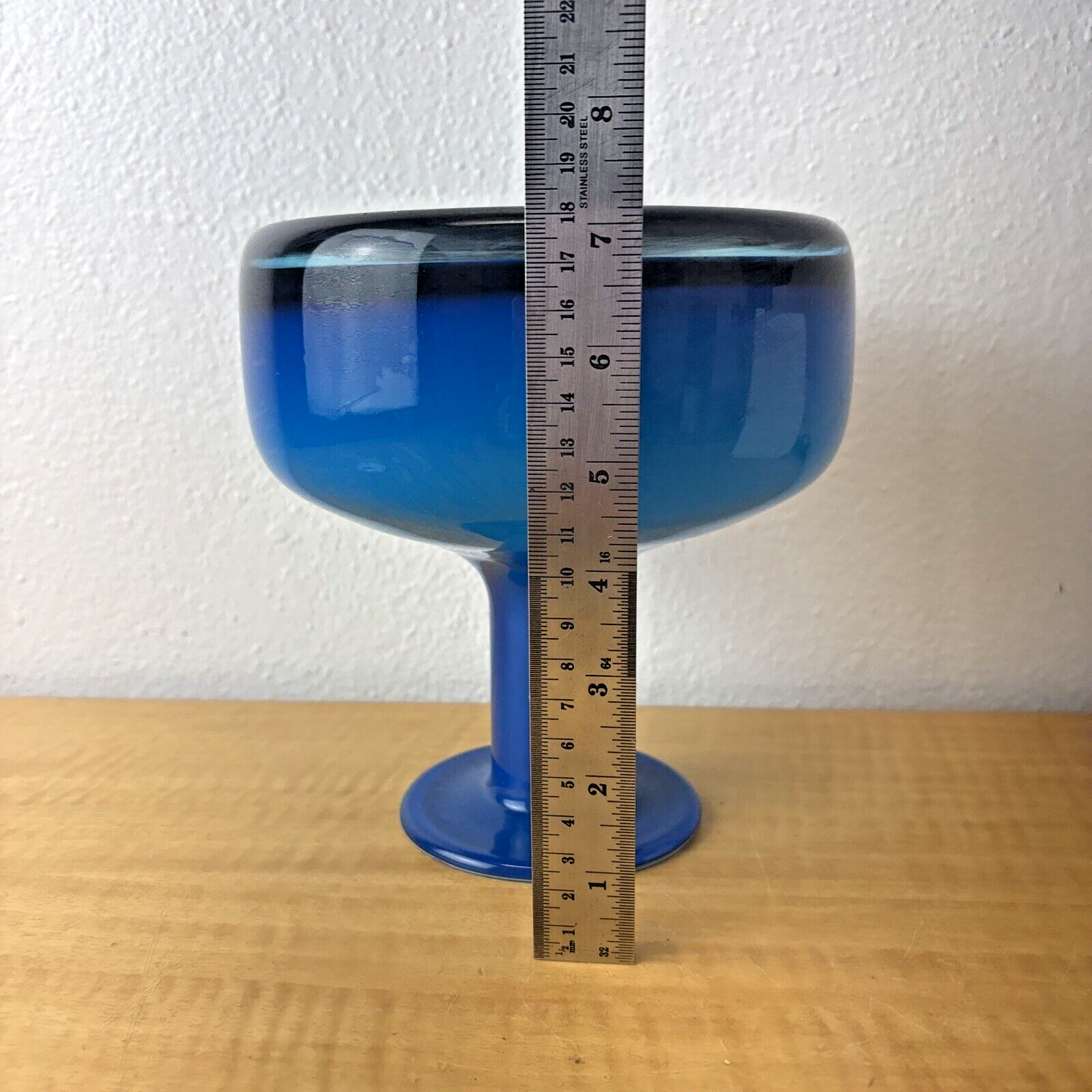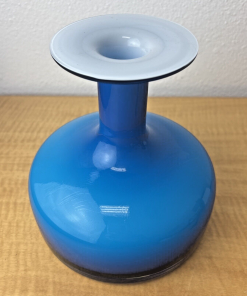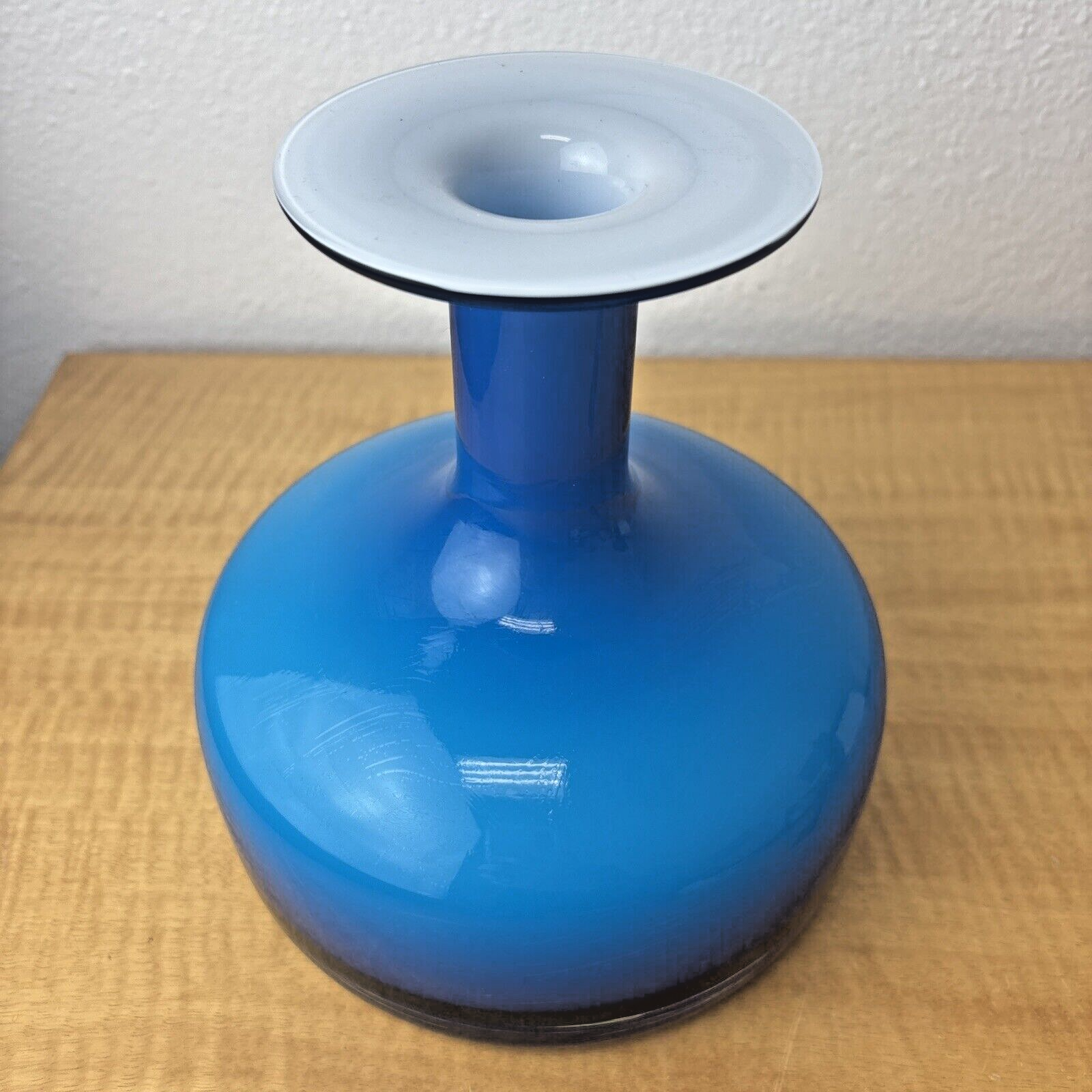 Blue Cased Art Glass Flange Vase