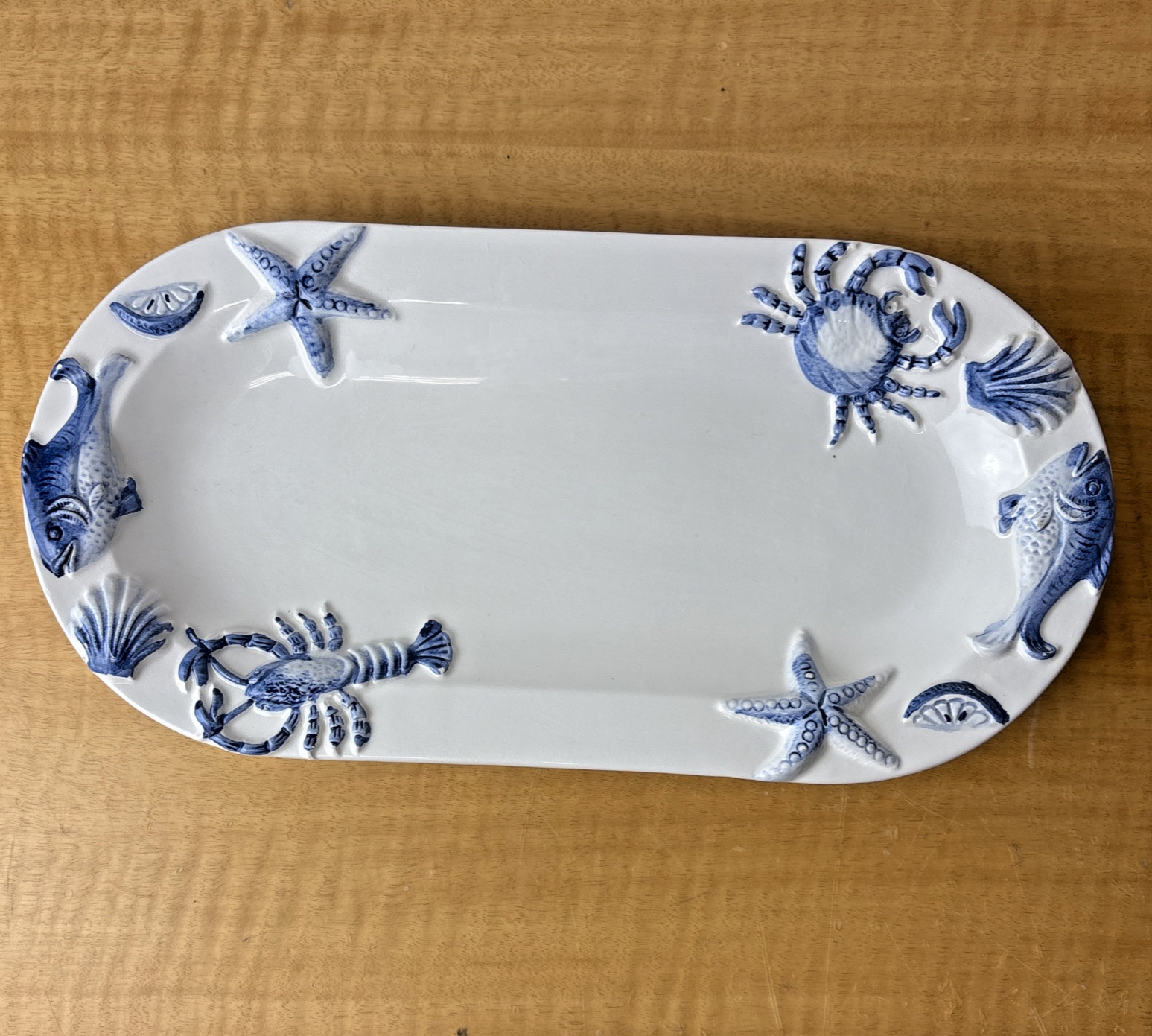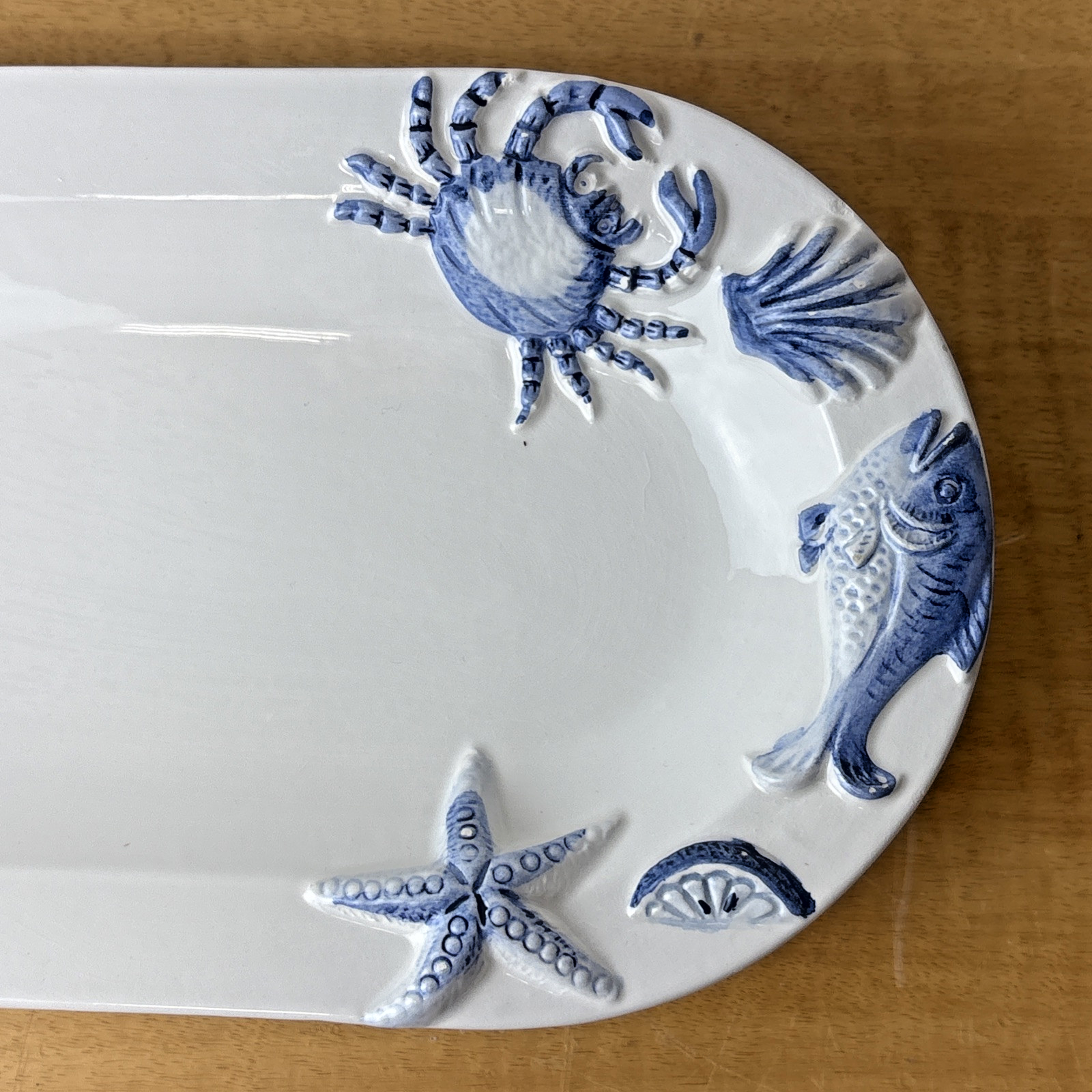 Blue & White Fish / Sea Creature Platter The Sea Gull Capri Ceramics