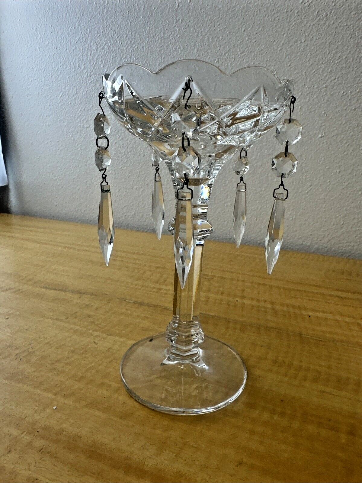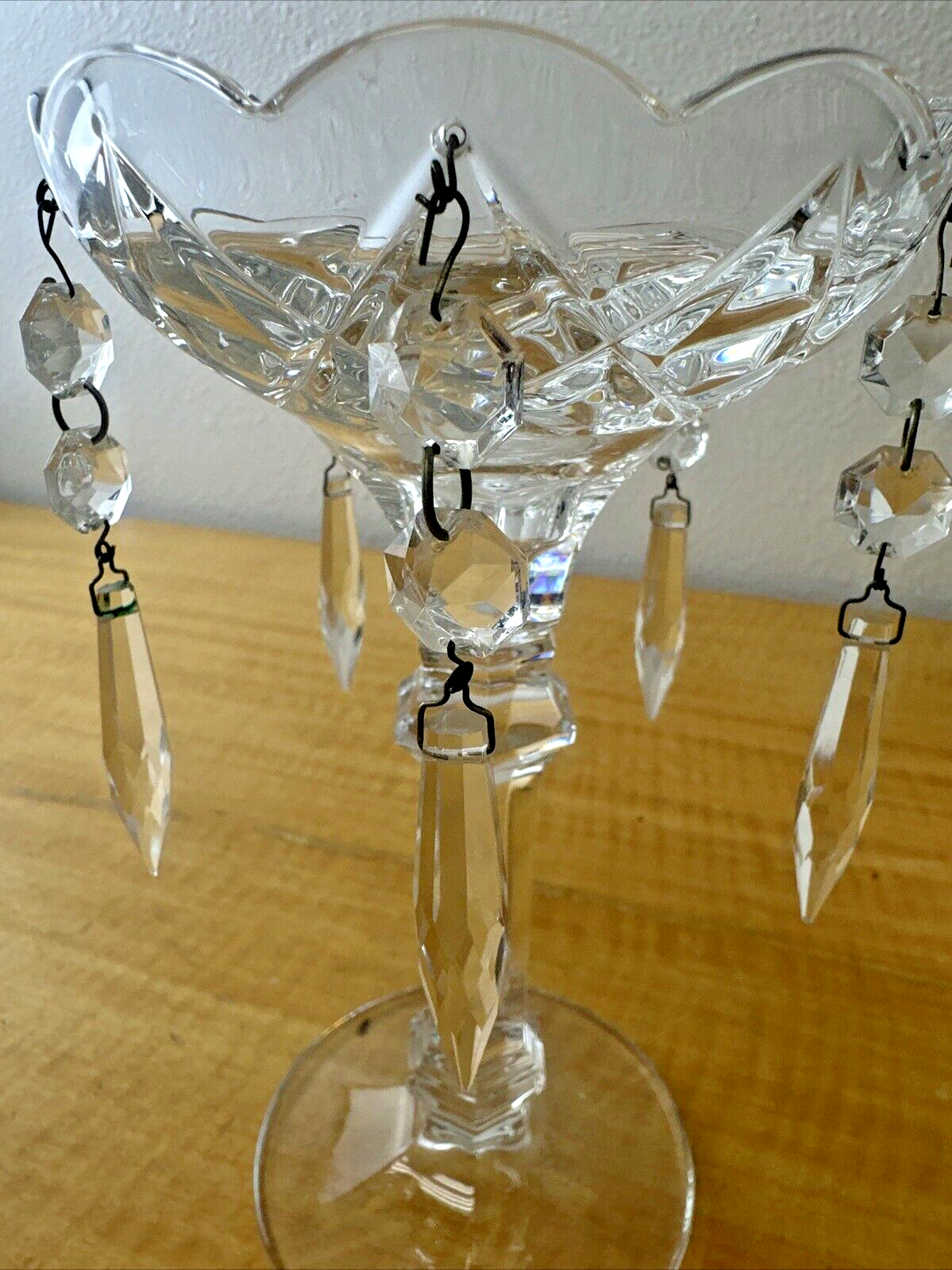 Bohemia Czech Republic Art Deco Clear Cut Mantle Candle Holder Prisms