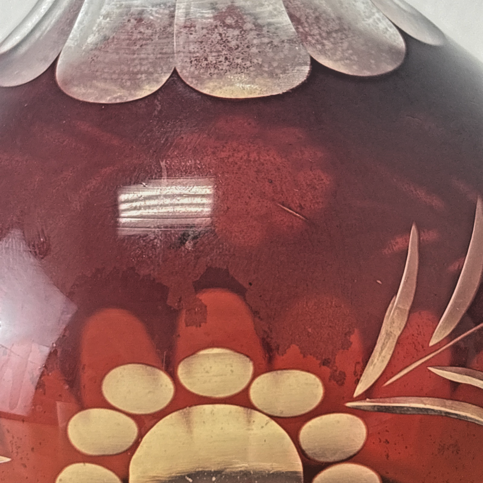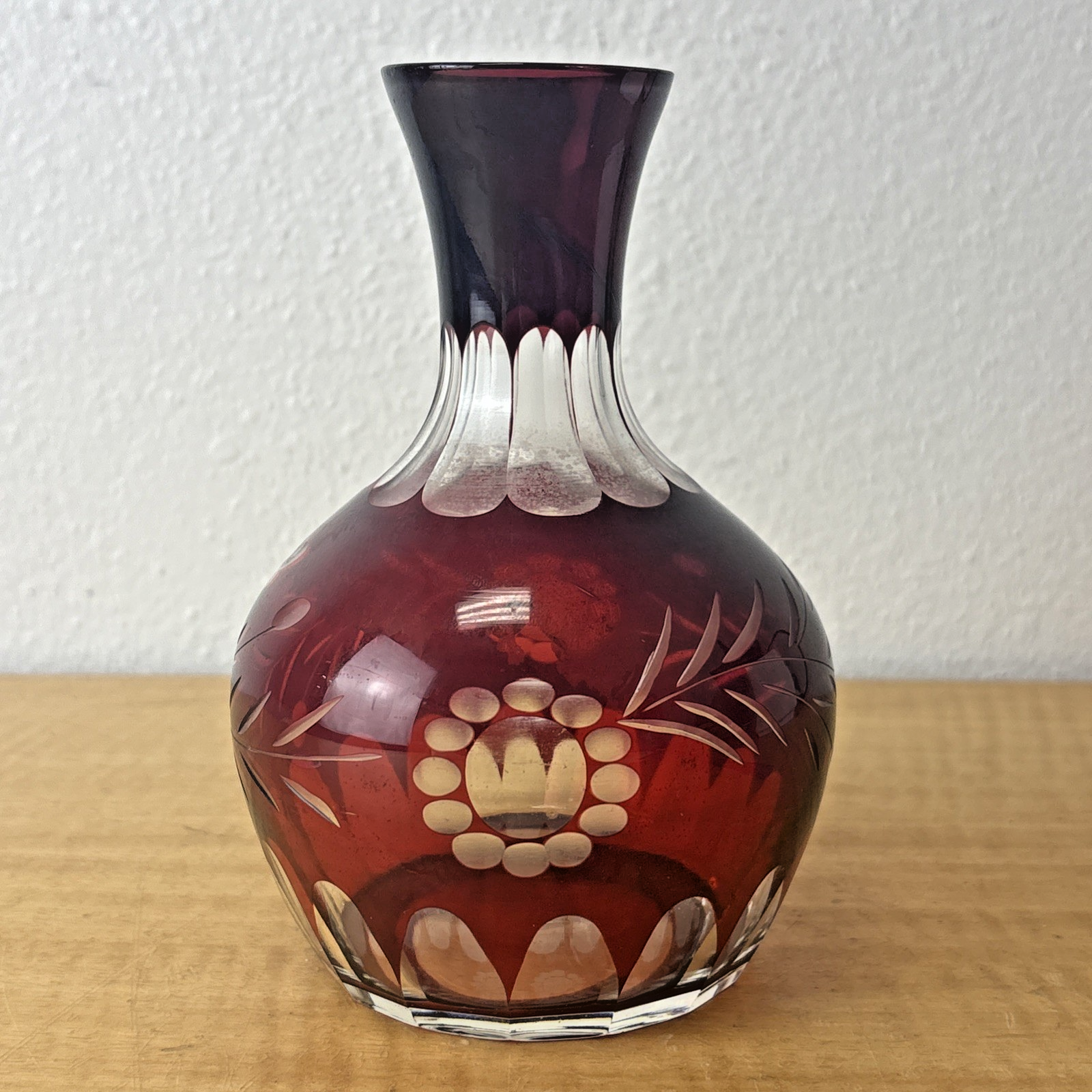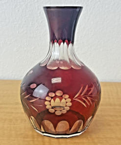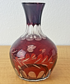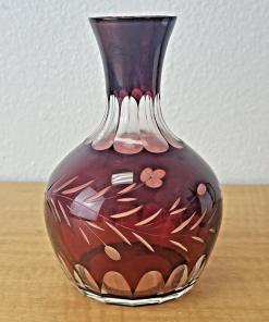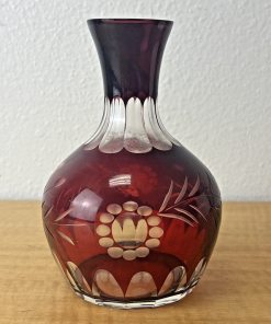 Bohemian Czech Ruby Red Cut To Clear Decanter With Floral Design Vintage