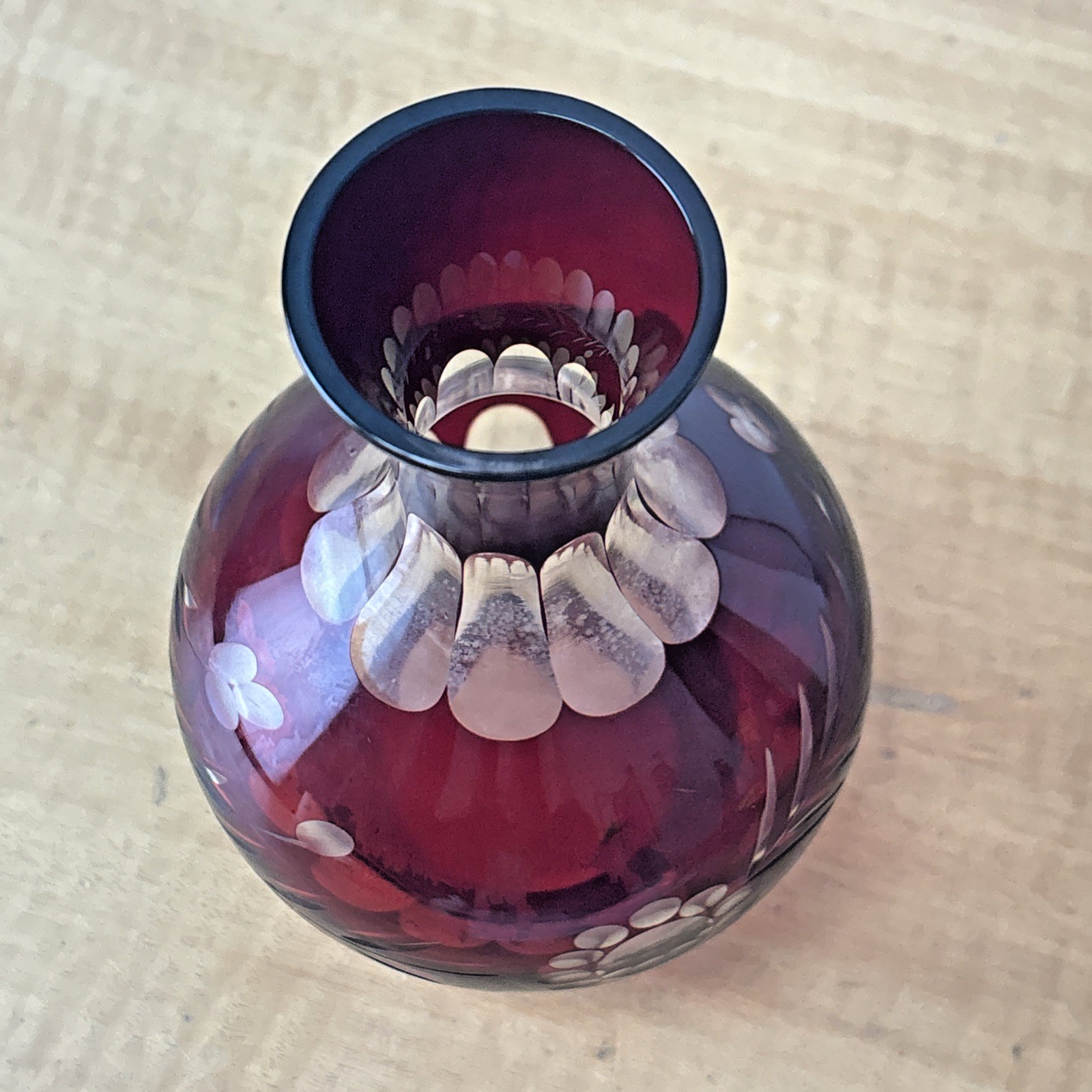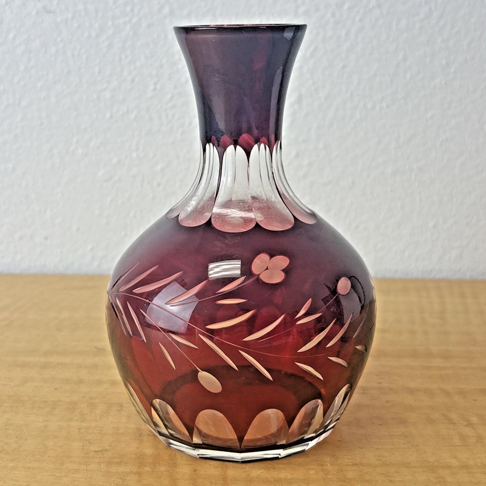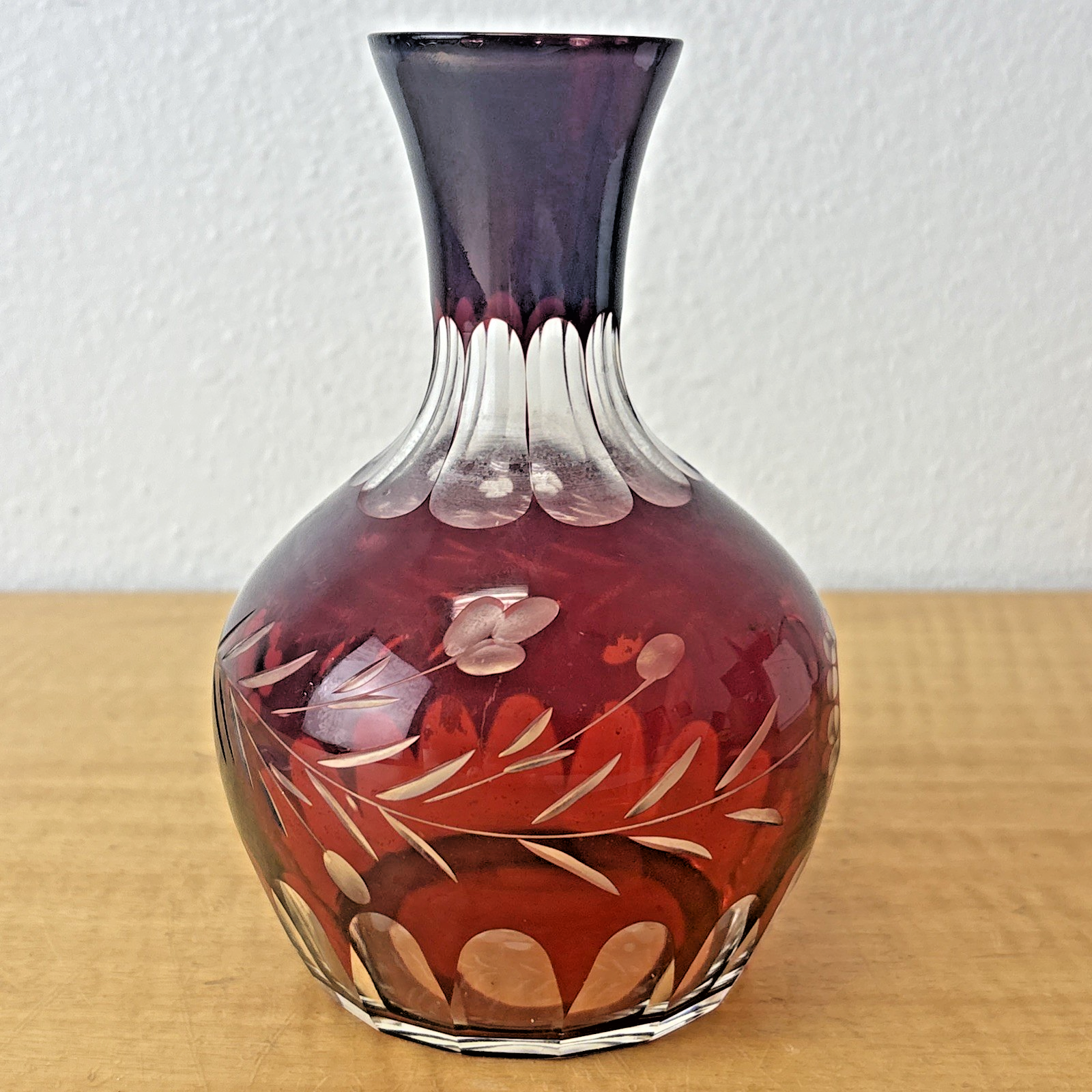 Bohemian Czech Ruby Red Cut To Clear Decanter With Floral Design Vintage