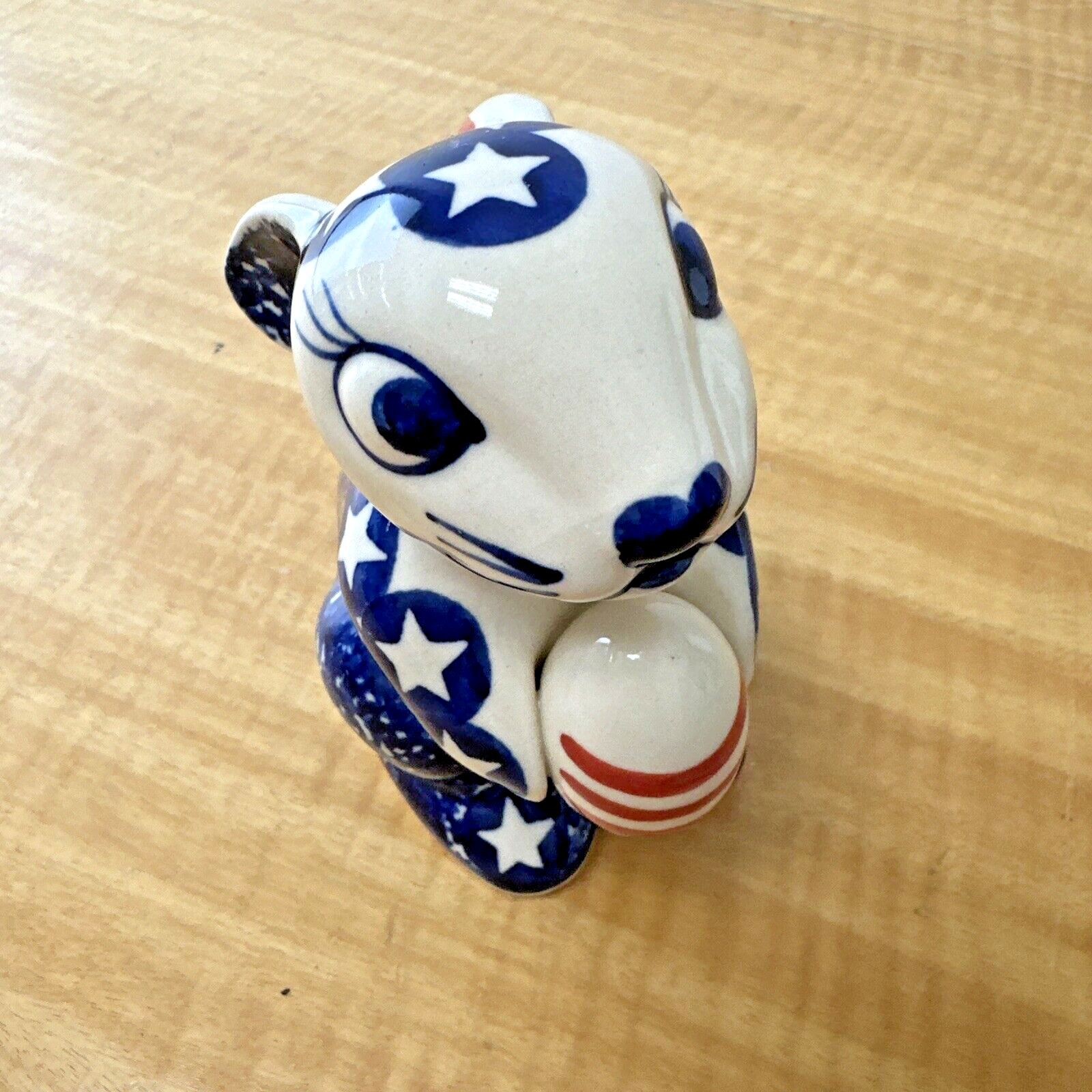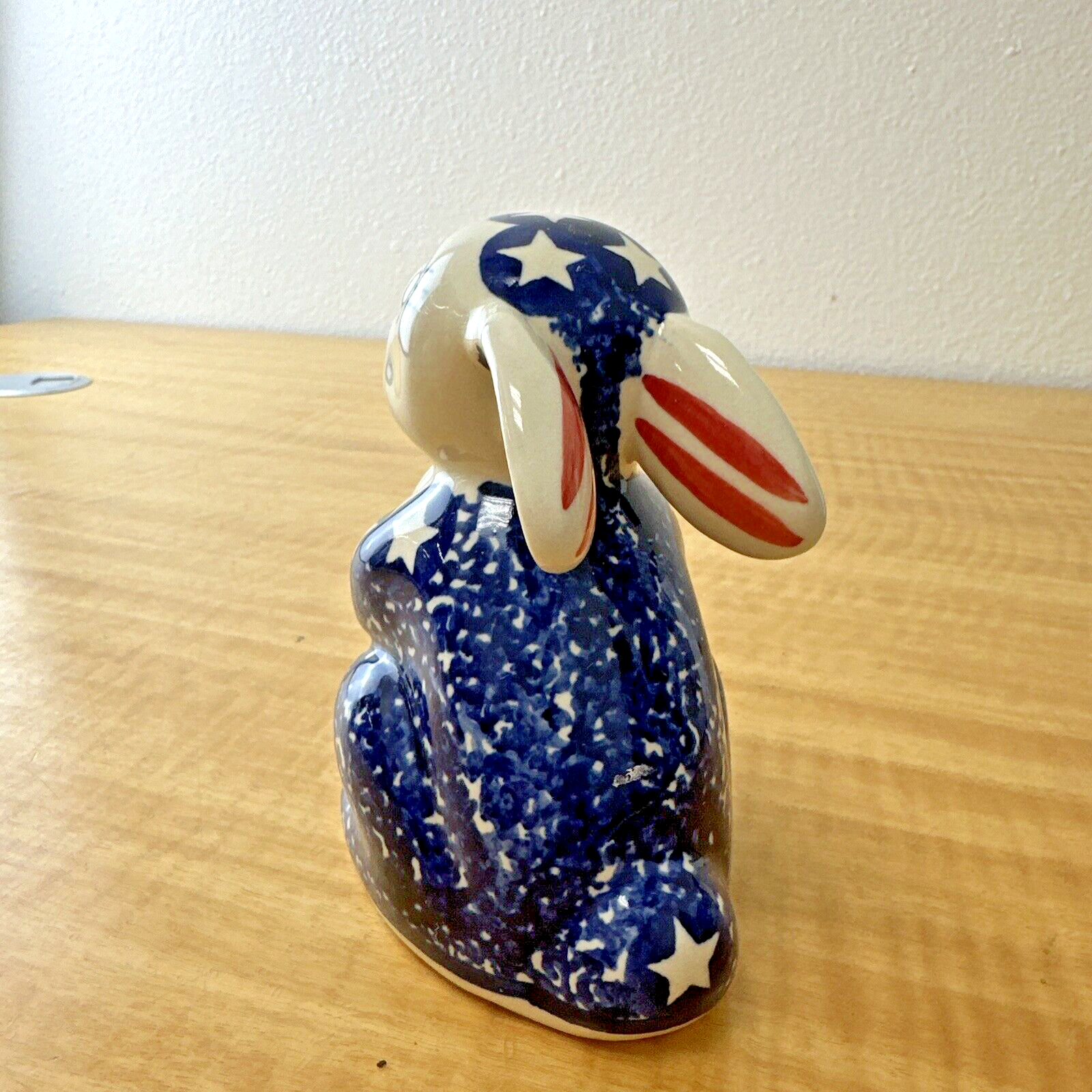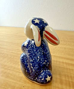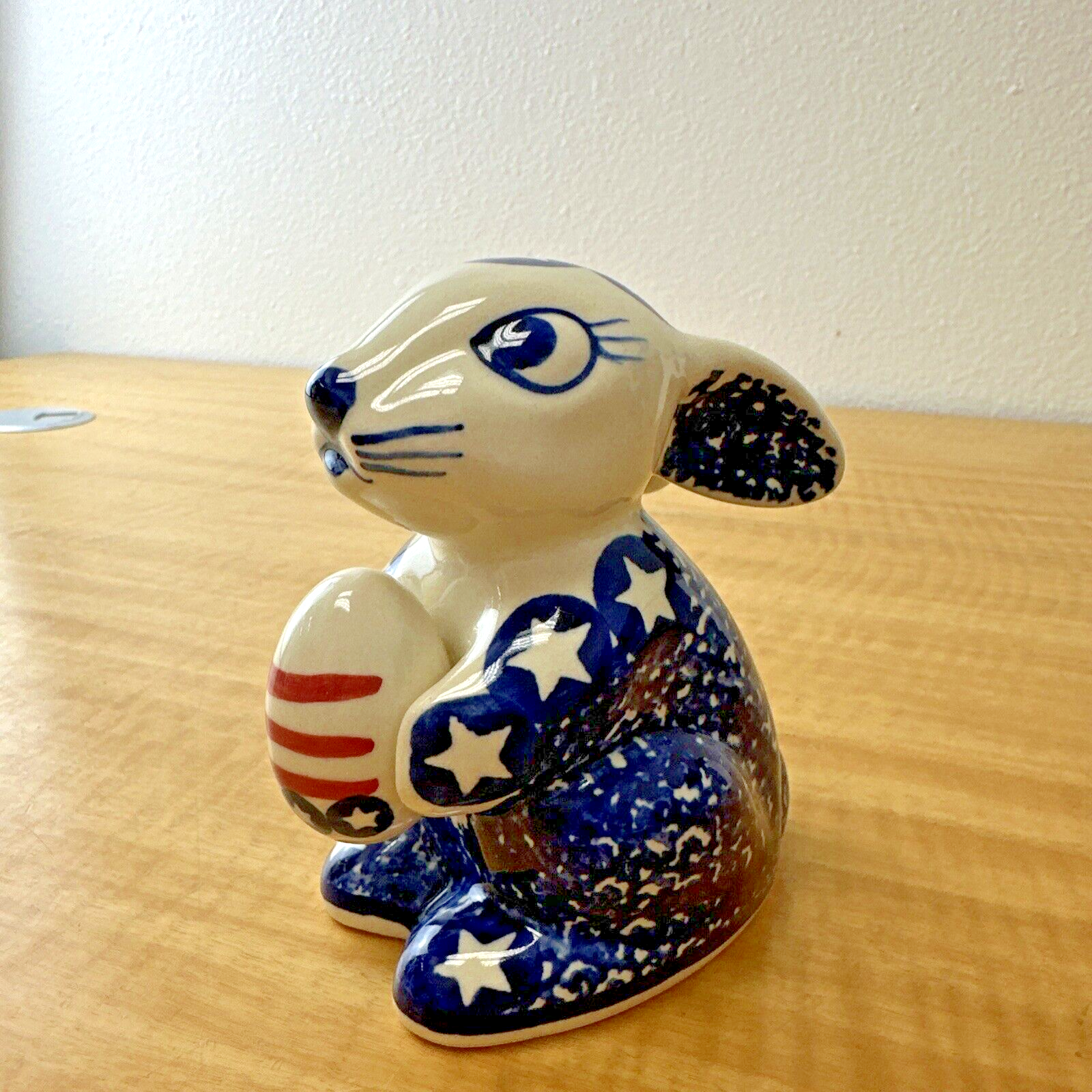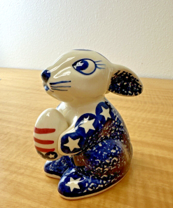 Boleslawiec Polish Blue Bunny Rabbit W/Easter Egg Star & Stripe Pattern. WIZA