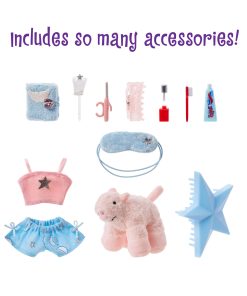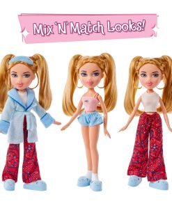Whether it’s a girl’s night out or a girl’s night in, the Bratz do it in style! In this line, Bratz Slumber Party dolls prove that you can be comfy and look cool at the same time. Each doll includes 2 sets of pajamas/loungewear to mix and match for so many cozy options! Cloe (aka Angel) wears long paisley print bottoms with a white tank, and her second outfit features a pink ribbon detail top and angel icon print shorts. Cloe’s golden blonde hair is in pigtails with 2 loose tendrils, and she has a soft makeup look. Express your passion for slumber party fashion with Cloe and the rest of the Bratz Slumber Party dolls!