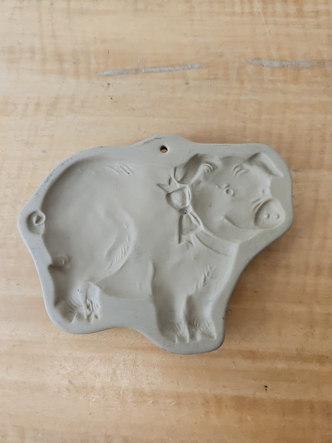 Brown Bag Cookie Art Mold PIG 1986 Stoneware 6″ cute