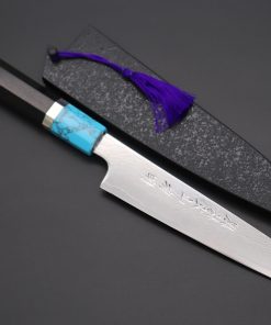 Sukenari’s knowledge of traditional forging processes and their extensive experience with modern, high performance, steels proved to be invaluable while perfecting these new HAP-40 knives. Master Hanaki, Sukenari’s innovative and energetic knife maker and Master forge-smith, has successfully managed to extract the best cutting performance and edge retention from these HAP-40 knives (HRc. 68). They are perfect for customers who love testing exotic hi-tech steels, or those who appreciate knives with outstanding cutting performance and edge retention.