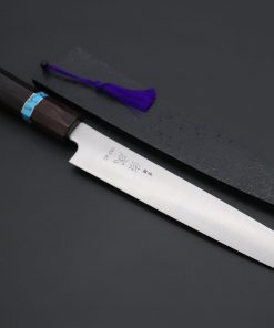 Sukenari’s knowledge of traditional forging processes and their extensive experience with modern, high performance, steels proved to be invaluable while perfecting these new HAP-40 knives. Master Hanaki, Sukenari’s innovative and energetic knife maker and Master forge-smith, has successfully managed to extract the best cutting performance and edge retention from these HAP-40 knives (HRc. 68). They are perfect for customers who love testing exotic hi-tech steels, or those who appreciate knives with outstanding cutting performance and edge retention.