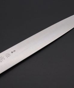 The lightweight, the long, narrow, graceful blade of the Wa Sujihiki is particularly useful for trimming away sinew and fat from meat, finely slicing meat or boneless fish, or for filleting and skinning fish. The long blade allows the meat or fish to be cut in one single drawing motion, from heel to tip.