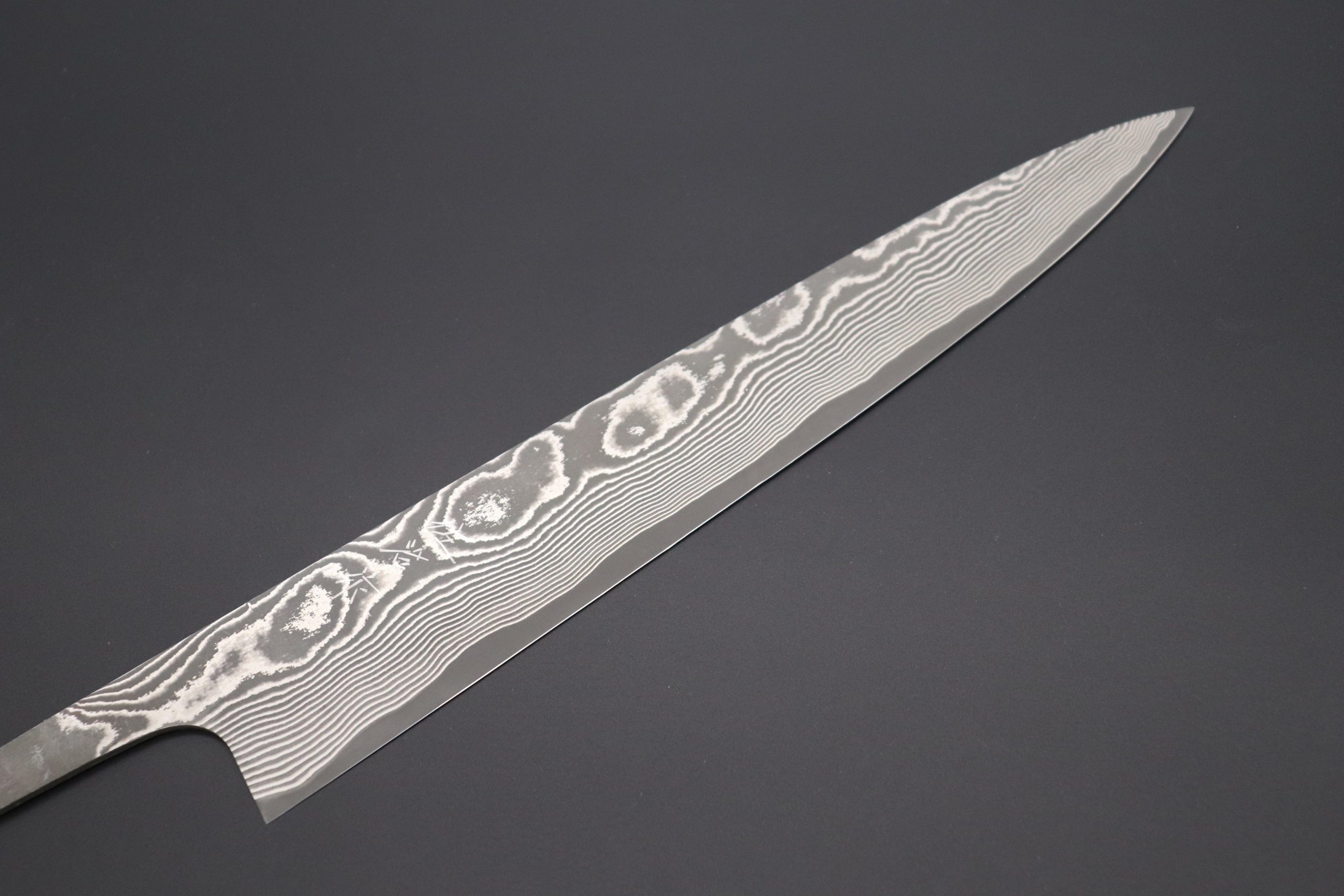 | “Blade Only !” Wa Sujihiki 240mm (9.4″) Cutting edge length: 250mm Blade Thickness: 2.4mm Blade Width: 42mm Total Weight: 114g |