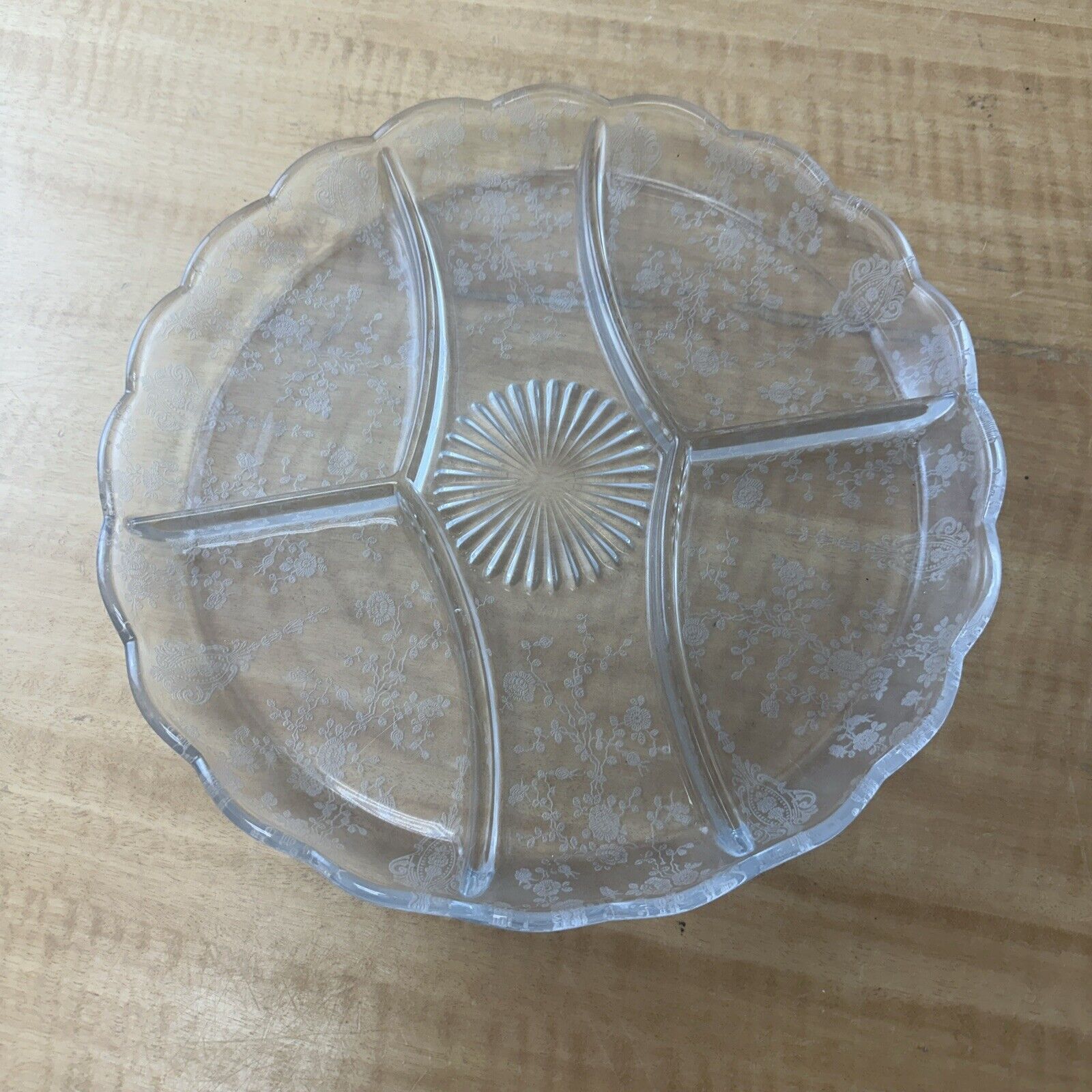CAMBRIDGE ROSEPOINT 5 PART Divided RELISH DISH ROSE POINT
