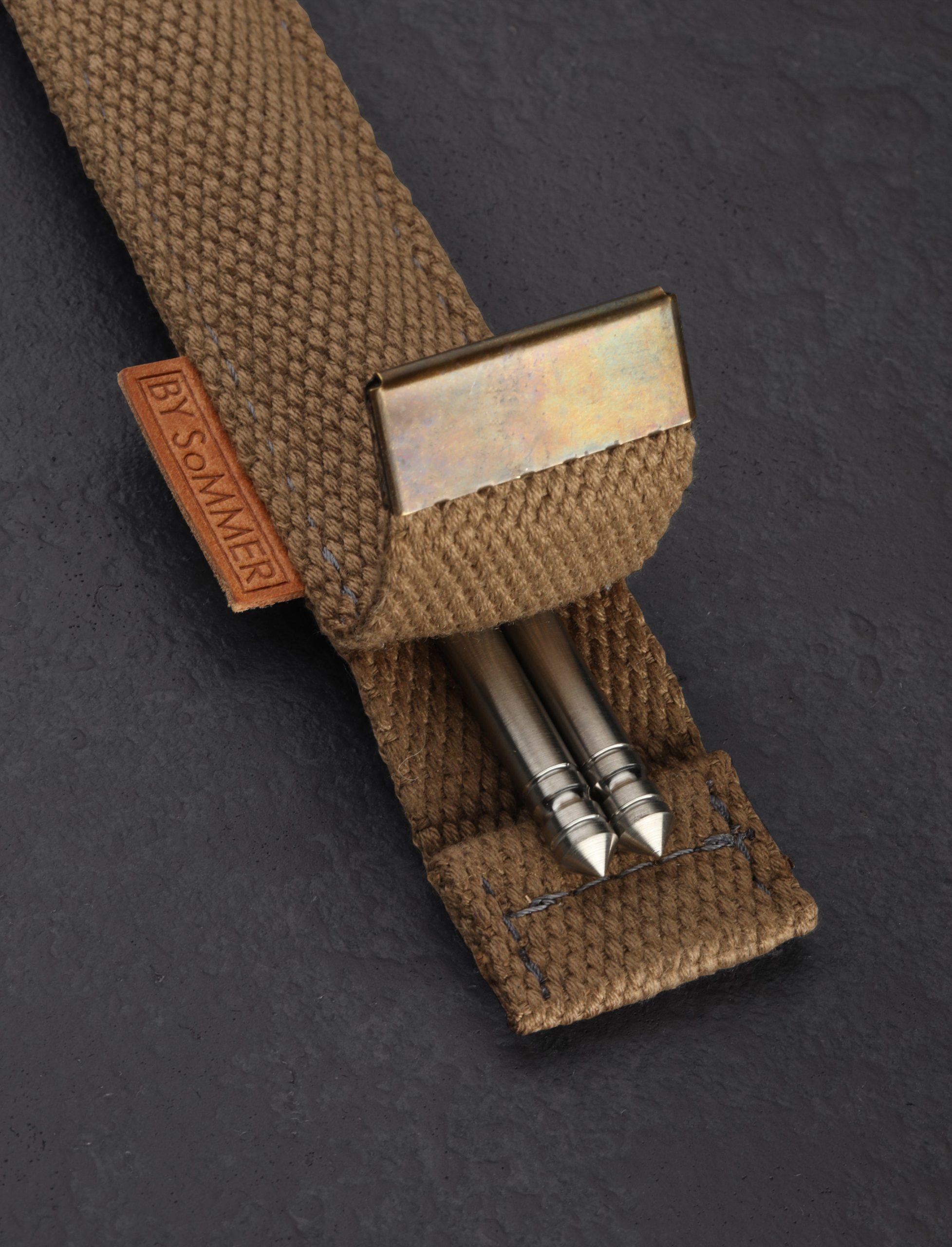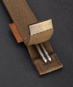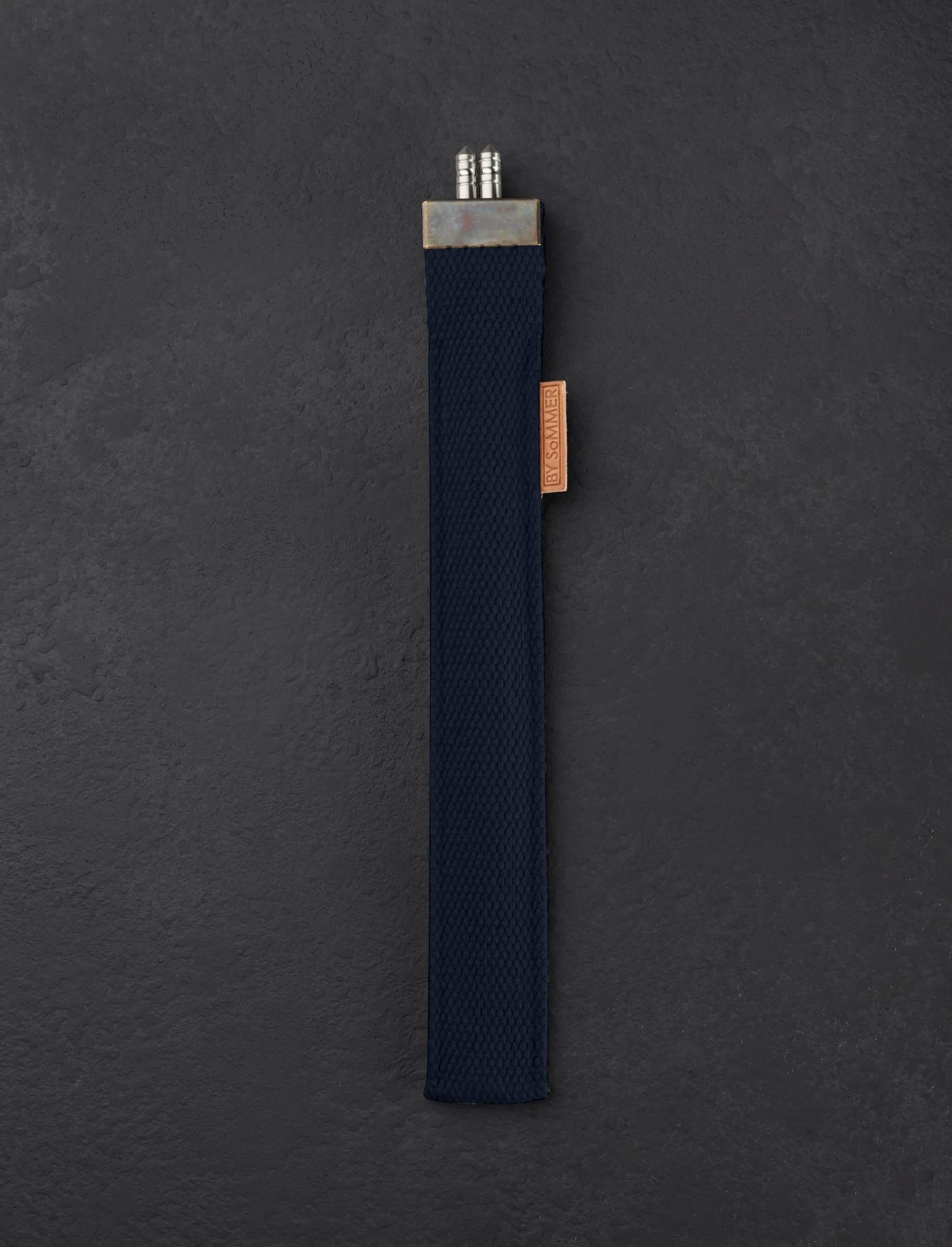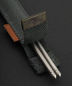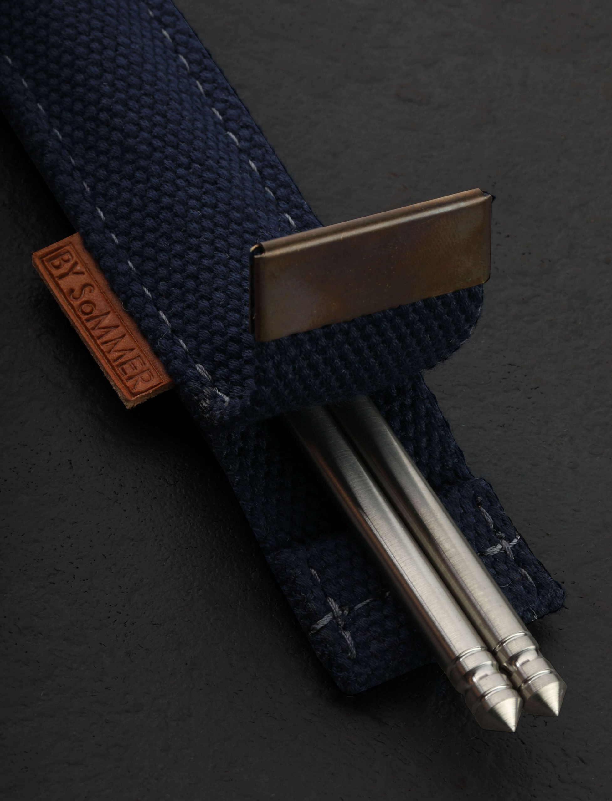 Designed and made by hand in Denmark by Birgitte Sommer especially for our TiStix Titanium Chopsticks, these canvas chopsticks cases are made from reclaimed military straps and topped with a metal cap complete with two eyelets. A simple and elegant leather tab indicating the cases are handcrafted “BY SoMMER” adorns the side of each. Our TiStix chopsticks are 9.375″ long and made from 0.25″ solid titanium and these cases will accept other chopsticks of the same dimensions. *Chopsticks not included.