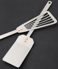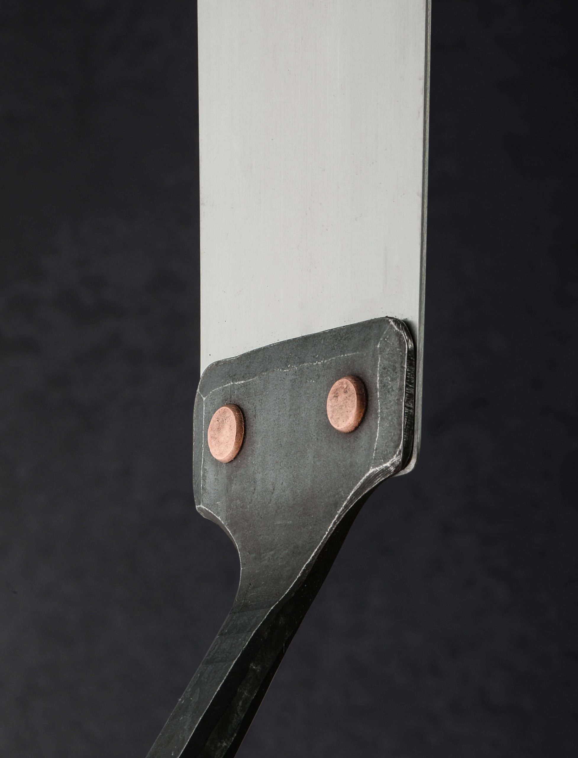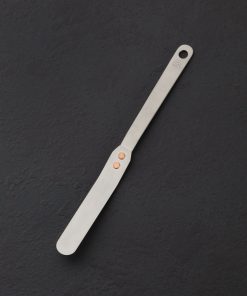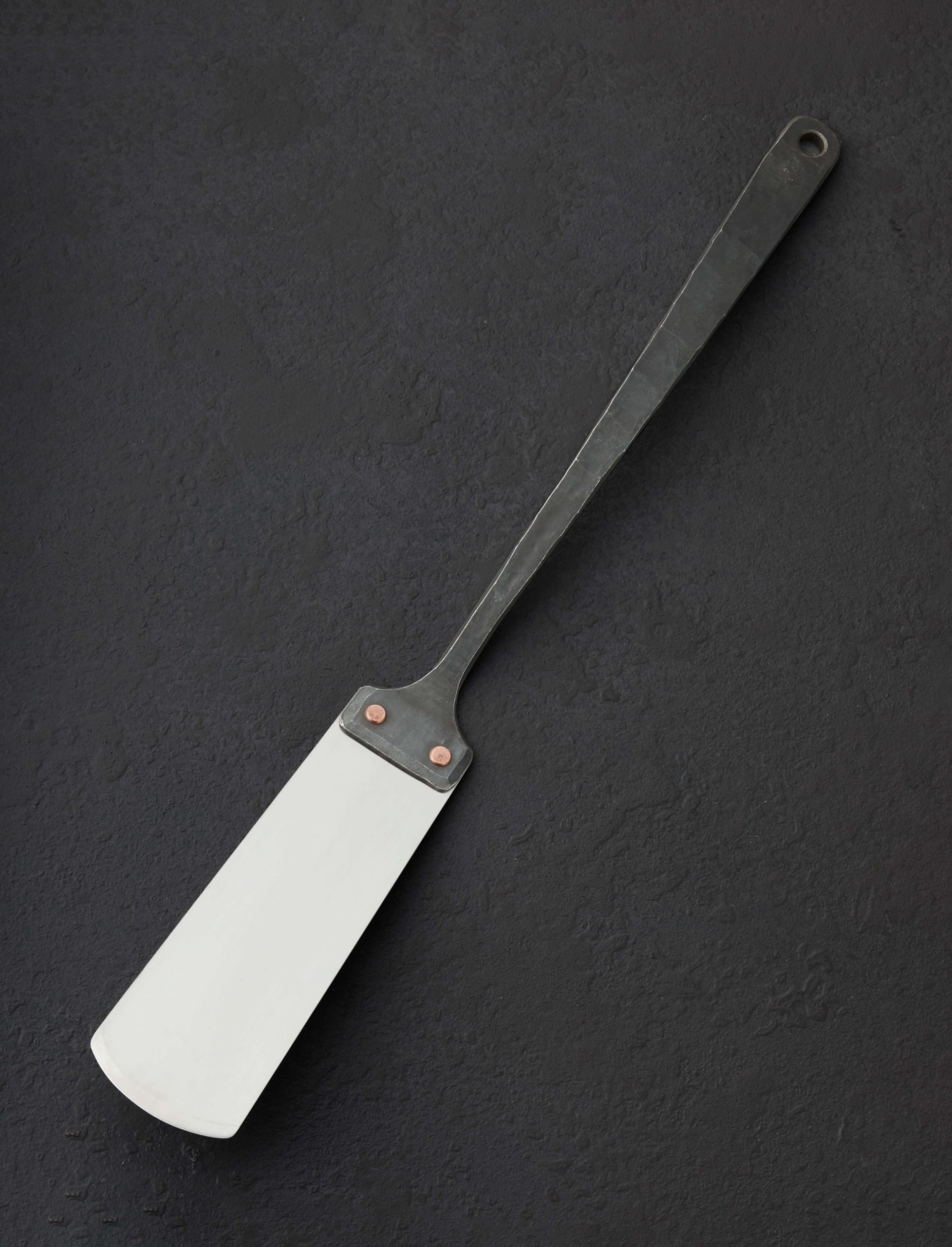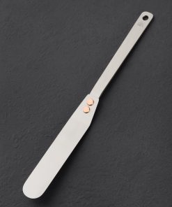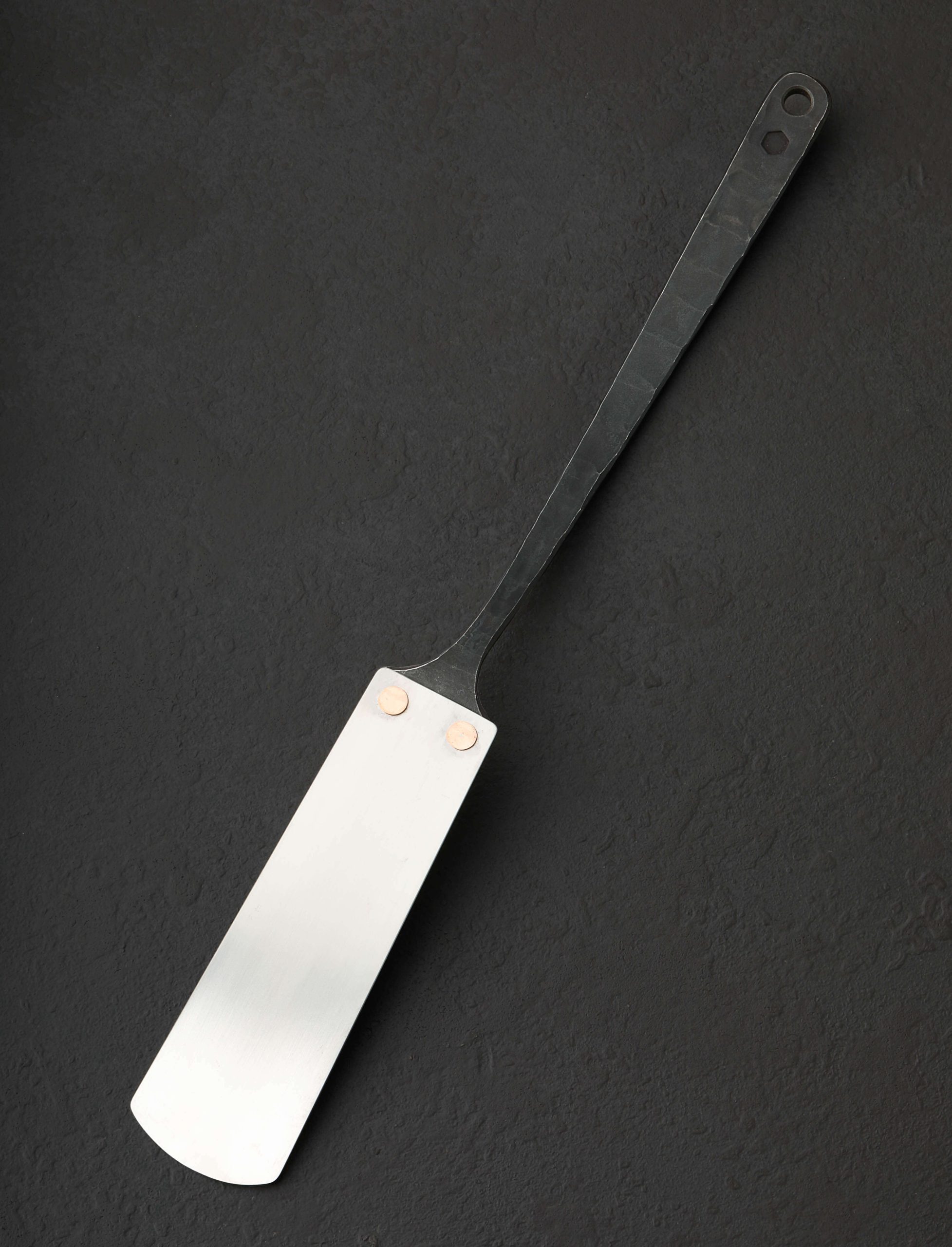 Every bit as handsome and handy as it looks, Alex Pole’s new Chef’s Serving Spatula will see no shortage of use in the kitchen and dining room. A classic, forged stainless steel handle is fastened with two solid copper rivets to a 6″ long, brushed stainless blade that tapers out at the front every so slightly, with wonderful beveling to a thin front lip. Balanced and natural in the hand, you’ll find yourself serving breakfast, lunch, and dinner with this elegant tool.