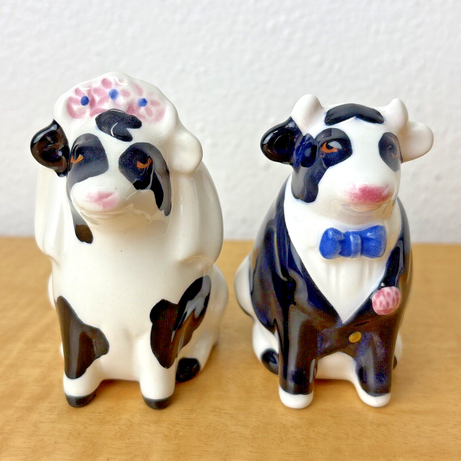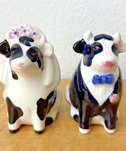 Clay Art Mr & Mrs Cow Bride & Groom Newlyweds Salt Pepper Shakers Set VGUC
