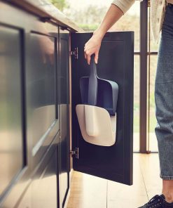 A wall-mounted holder keeps this dustpan and brush set covered for cleaner storage. The soft-bristled brush and rubber-edged pan also efficiently clip together when not in use.