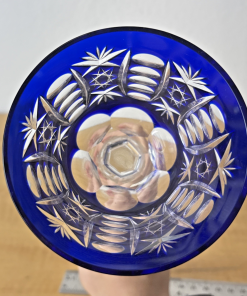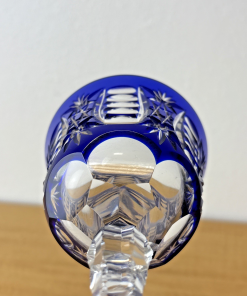 Cobalt Blue Cut to Clear Crystal Hock Wine Glass Goblet