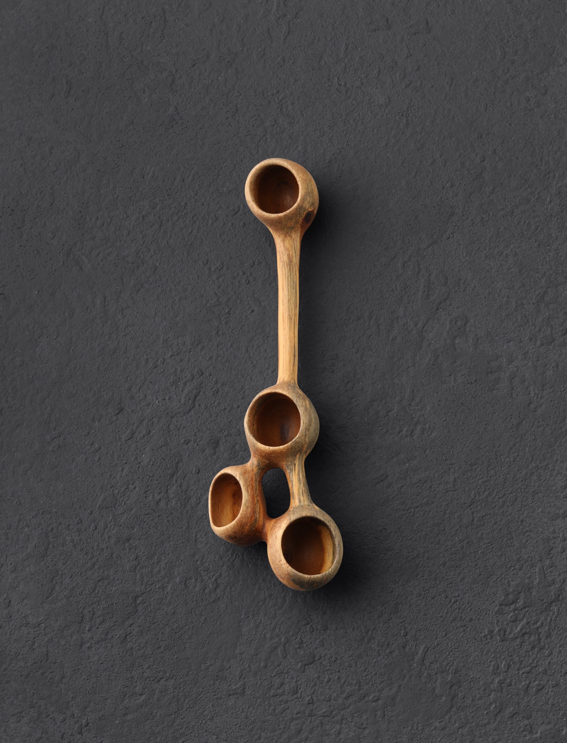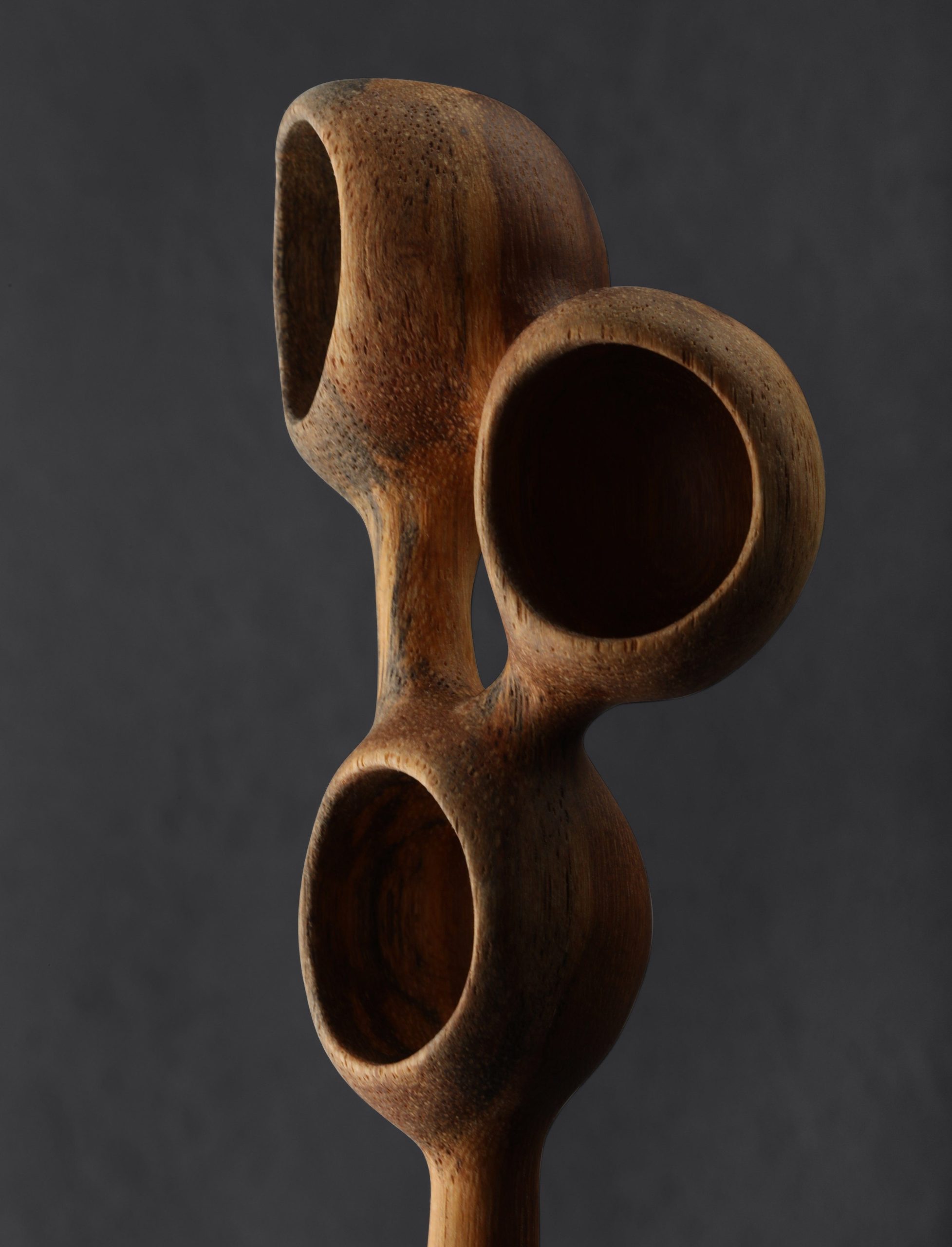 A spoon that challenges its owner to discover its best use, a creative endeavor as enjoyable as the creation of the object itself was for artist Terry Widner. Carved from a piece of cockspur vine with beautiful shades of orange, browns, yellows, and grays, four separate but interconnected bowls offer unique opportunities for both display and use in the home. How will you put this one-of-a-kind piece of wooden art to work?