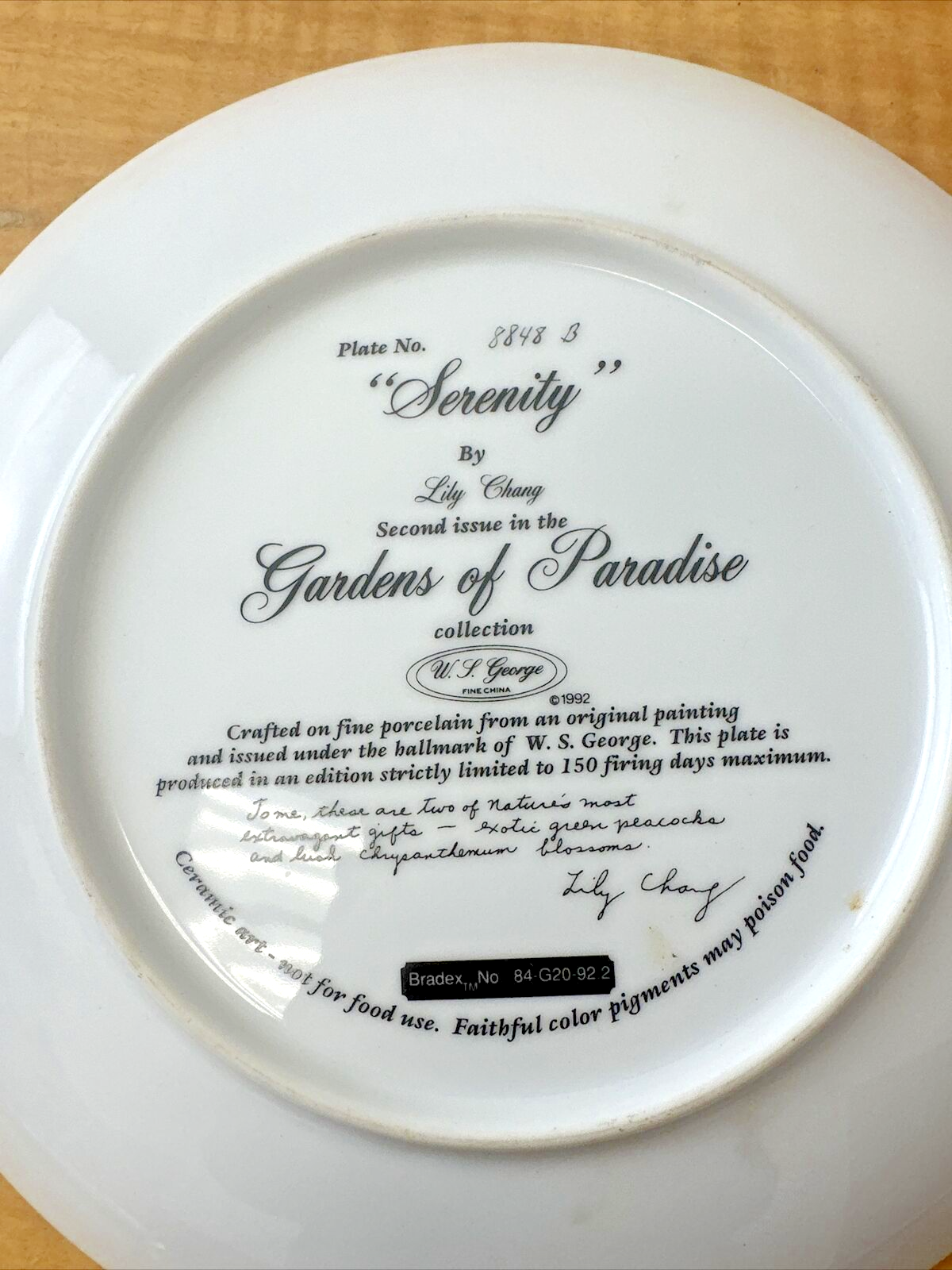 Collectors Plate “Serenity” by Lily Chang Gardens of Paradise Peacock 8.25″
