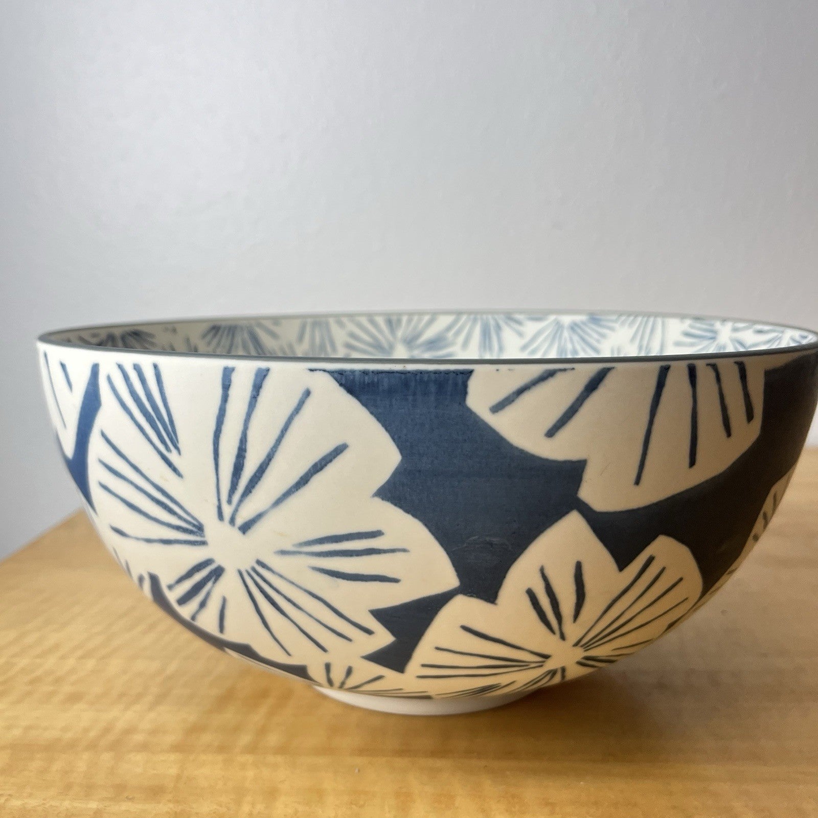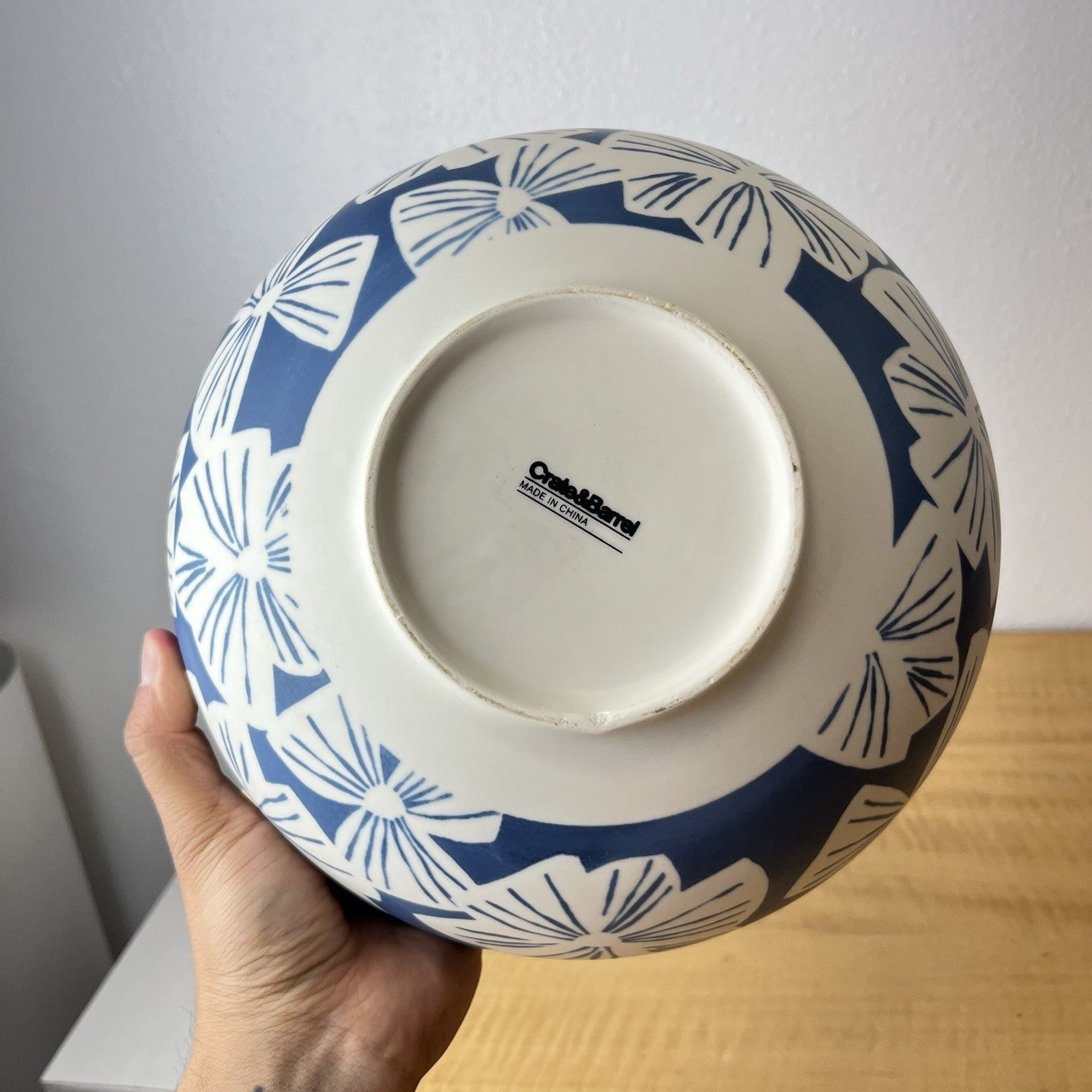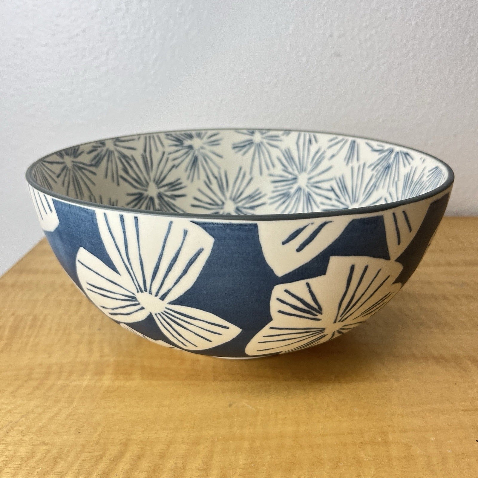 Crate & Barrel Mai Collection Blue Floral Ceramic Bowl Large 9.5″